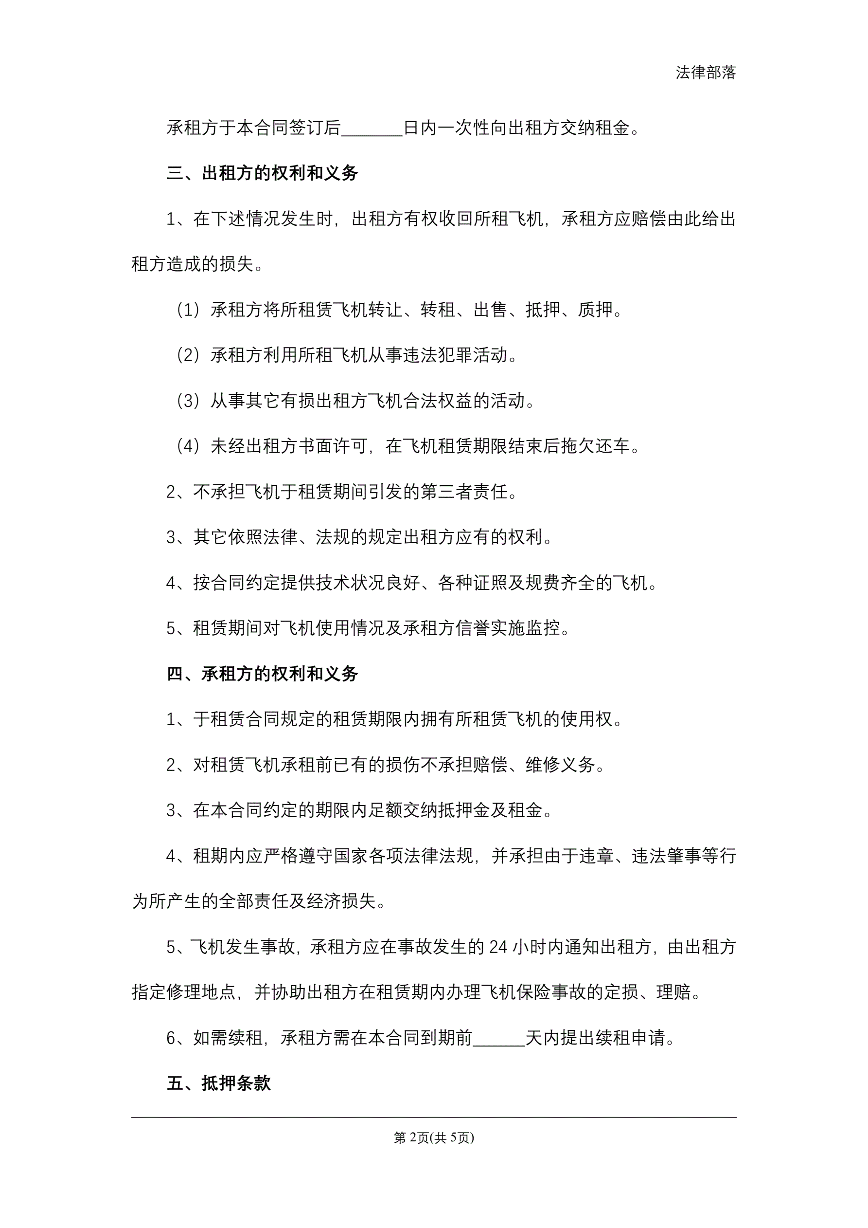 飞机租赁合同