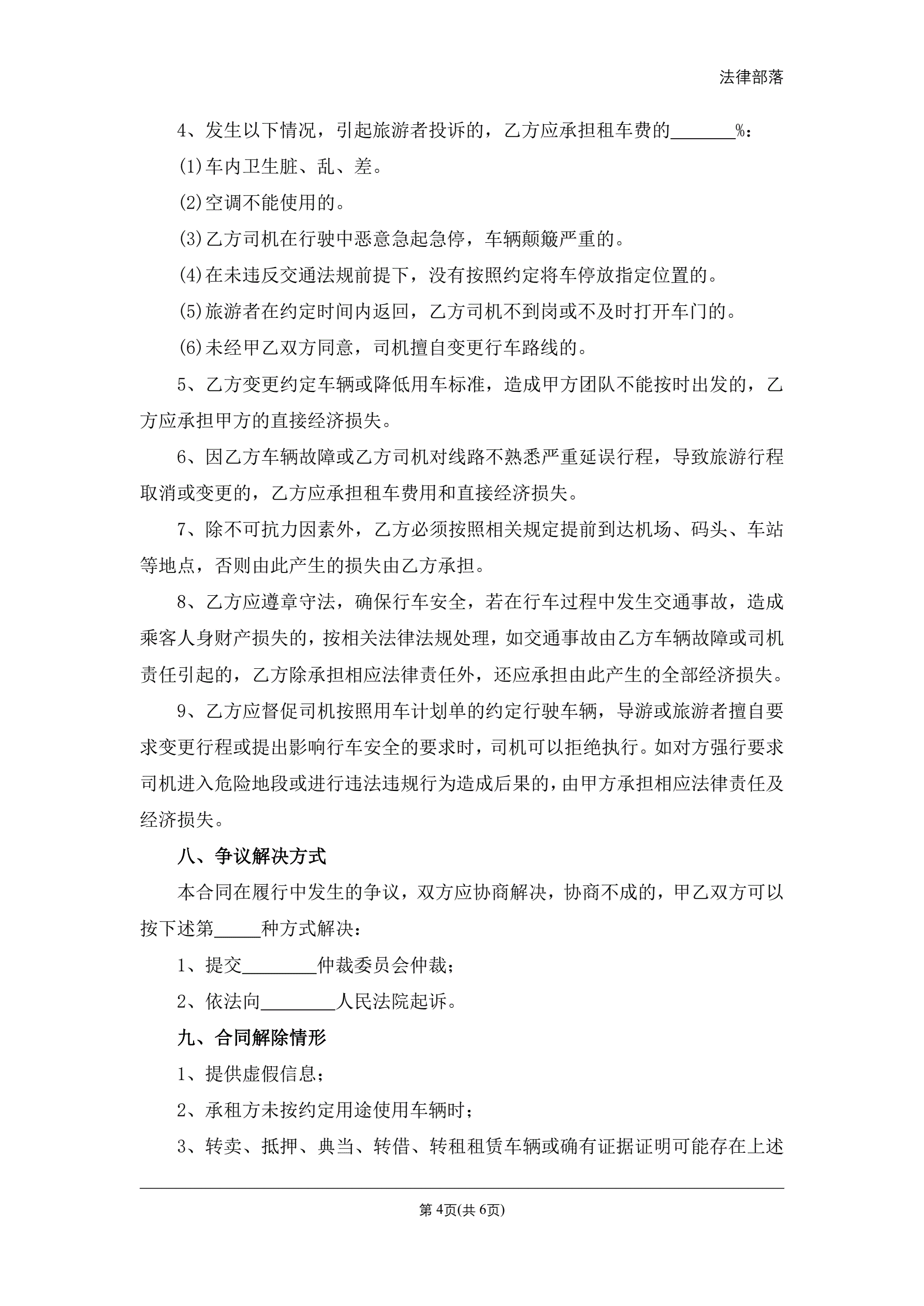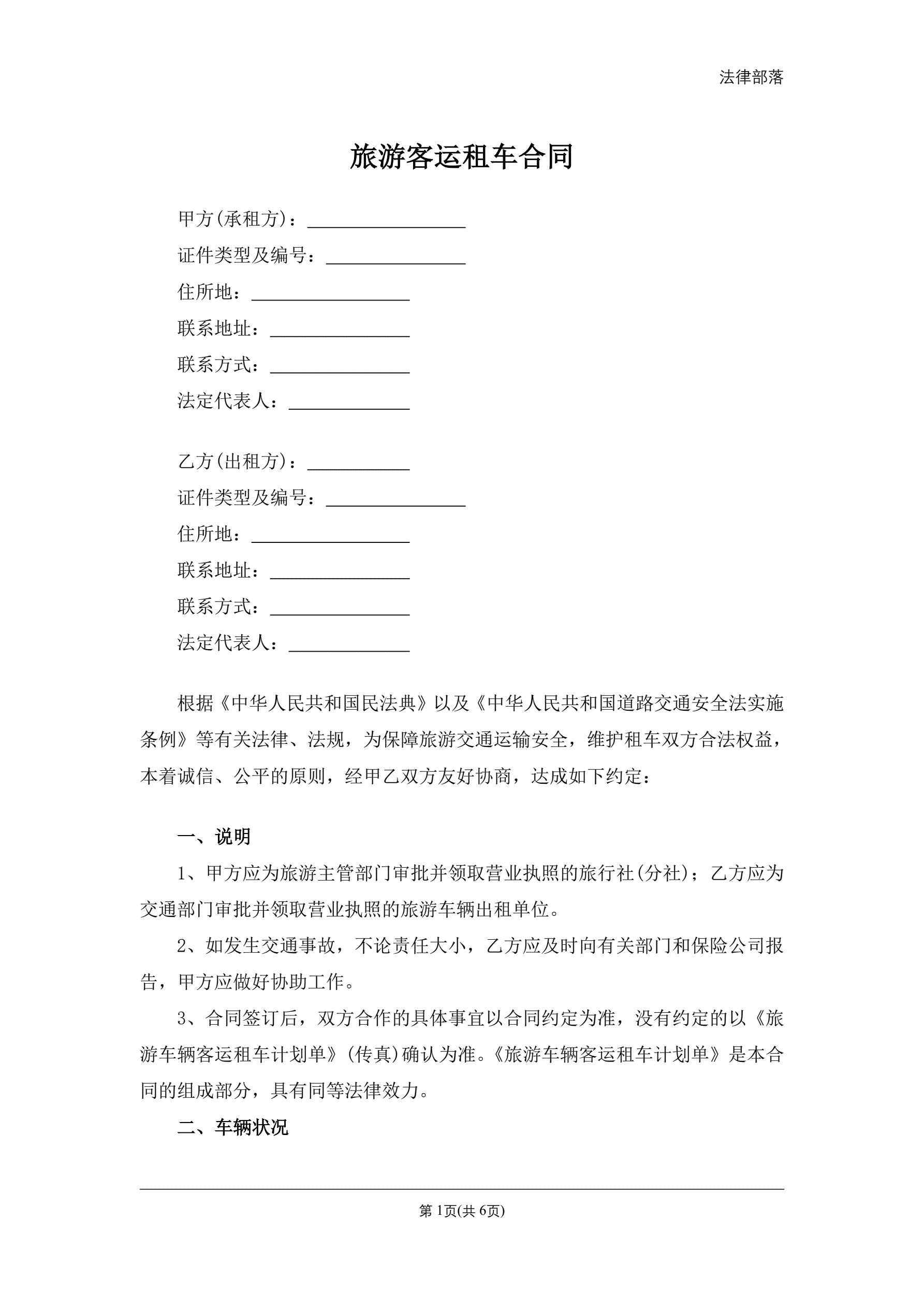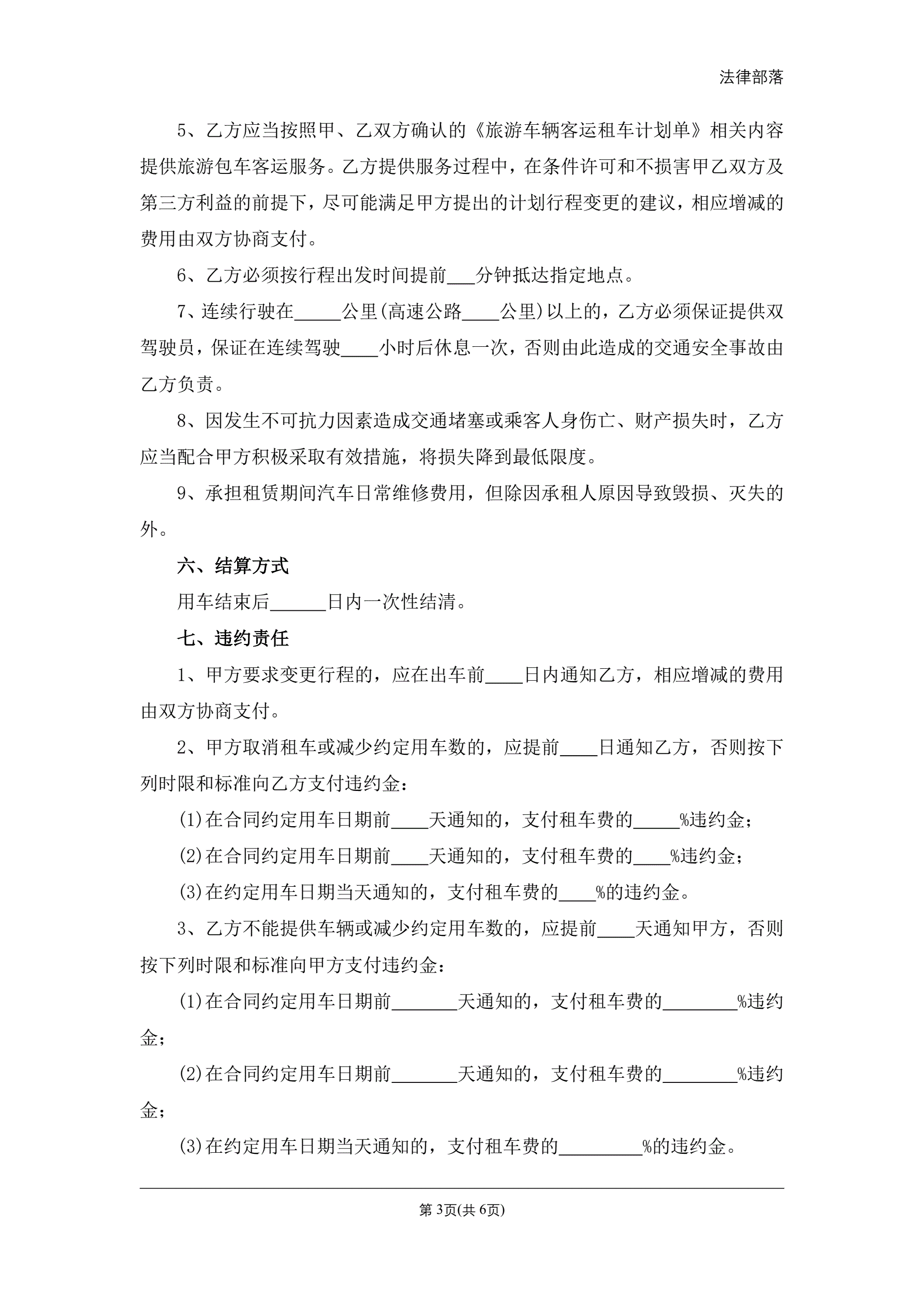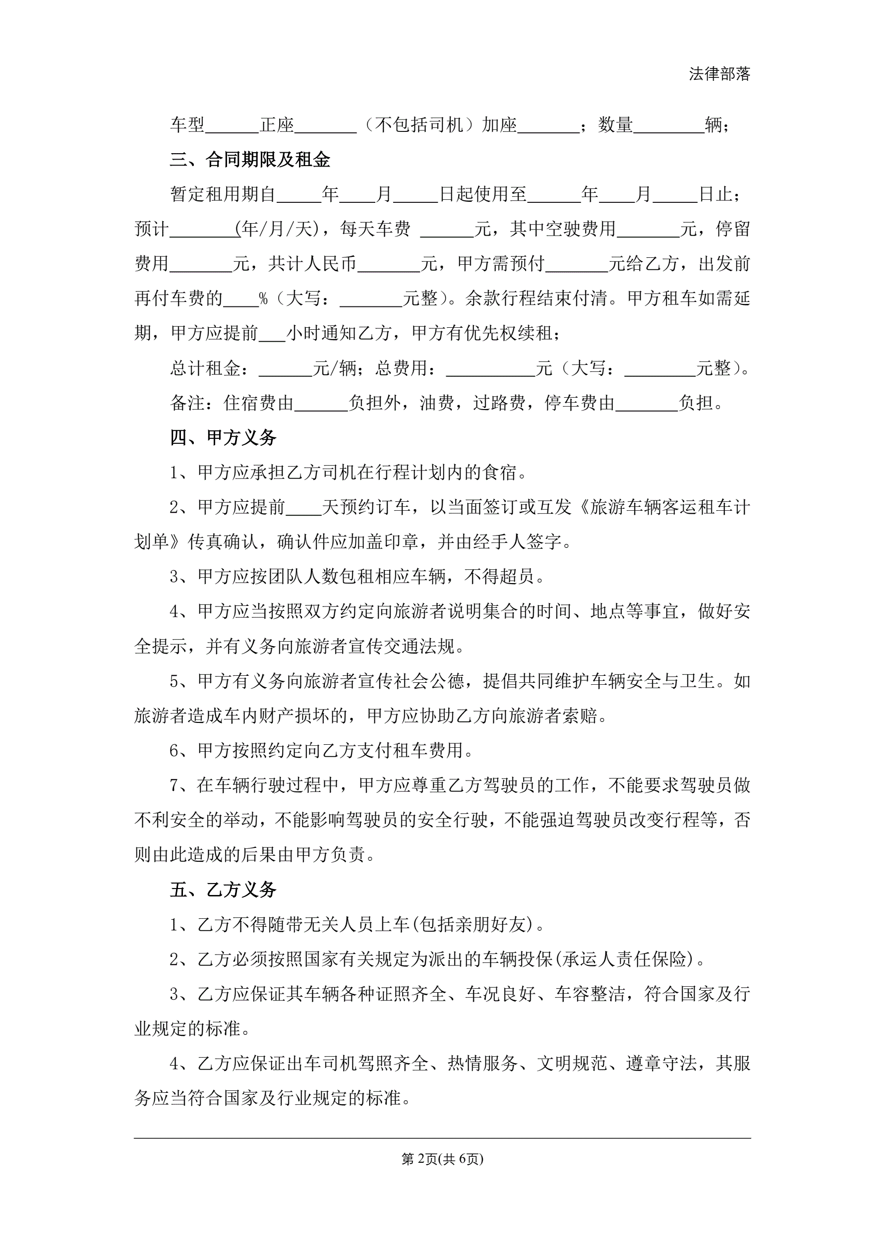 合同名称:旅游客运租车合同