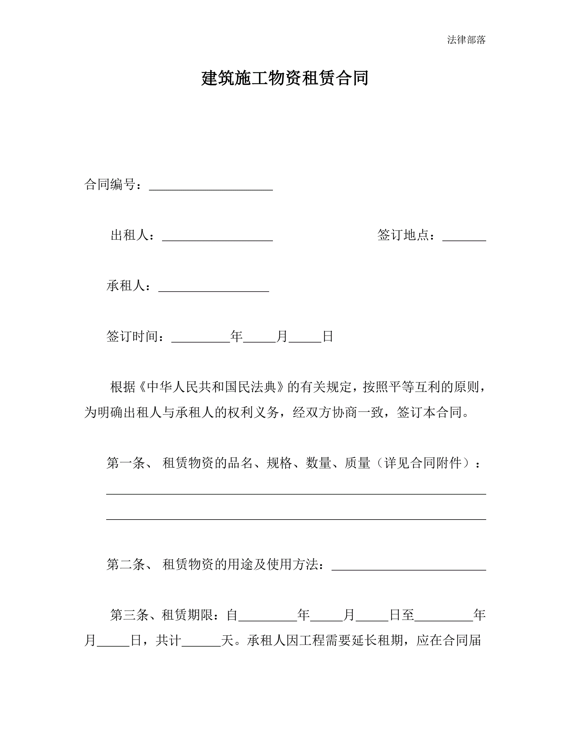 >建筑施工物资租赁合同(详细版)