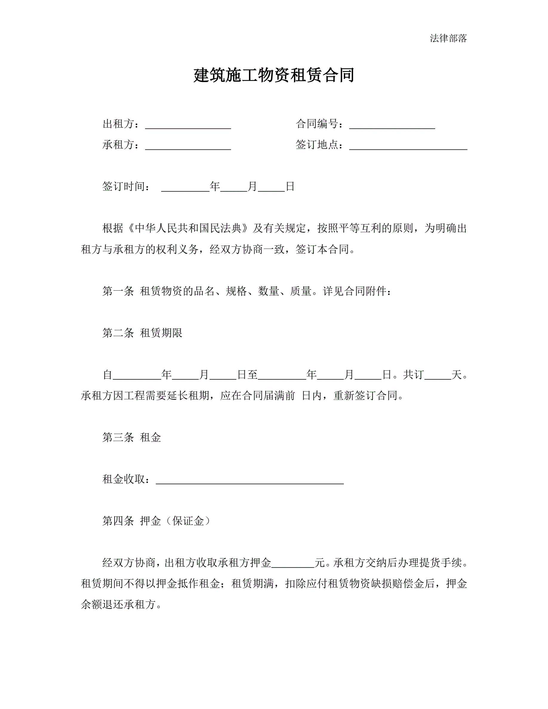 >建筑施工物资租赁合同(简单版)