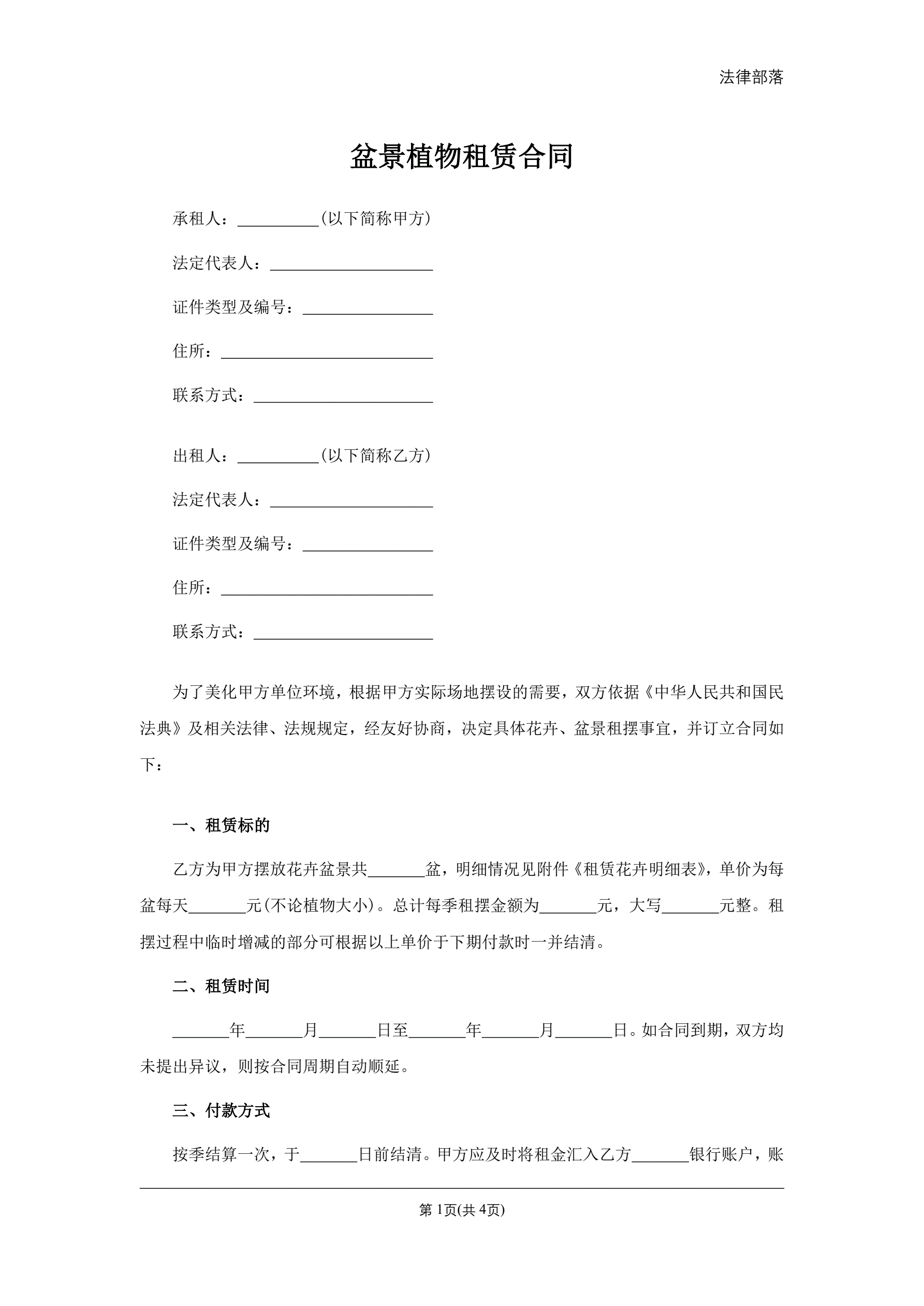 合同名称:盆景植物租赁合同