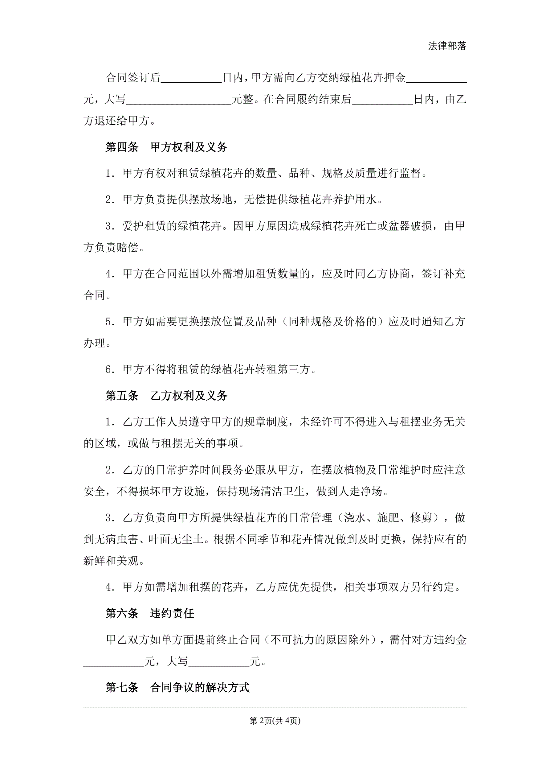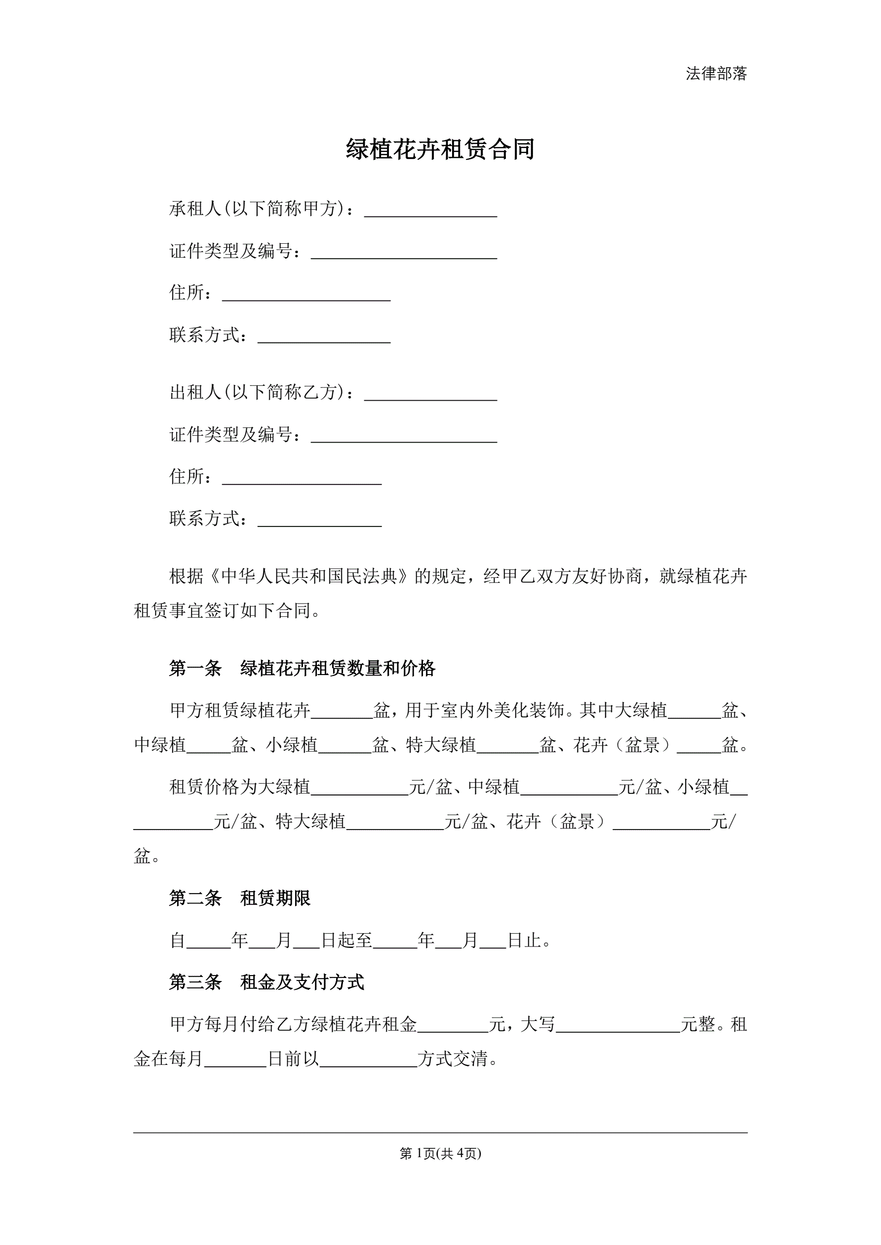 绿植花卉租赁合同