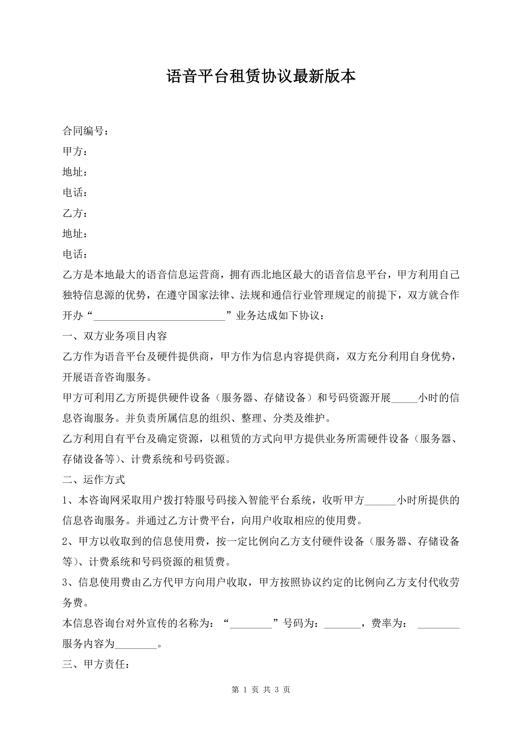 >语音平台租赁协议最新版本