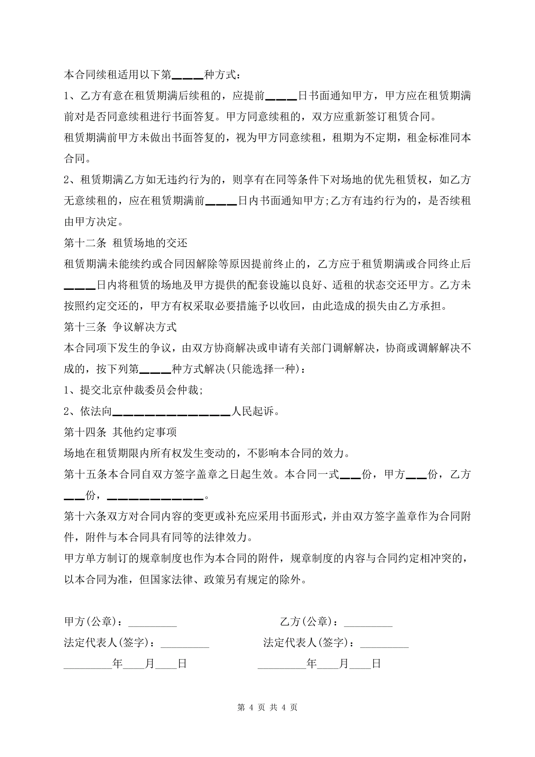 >简单的户外场地租赁合同范本