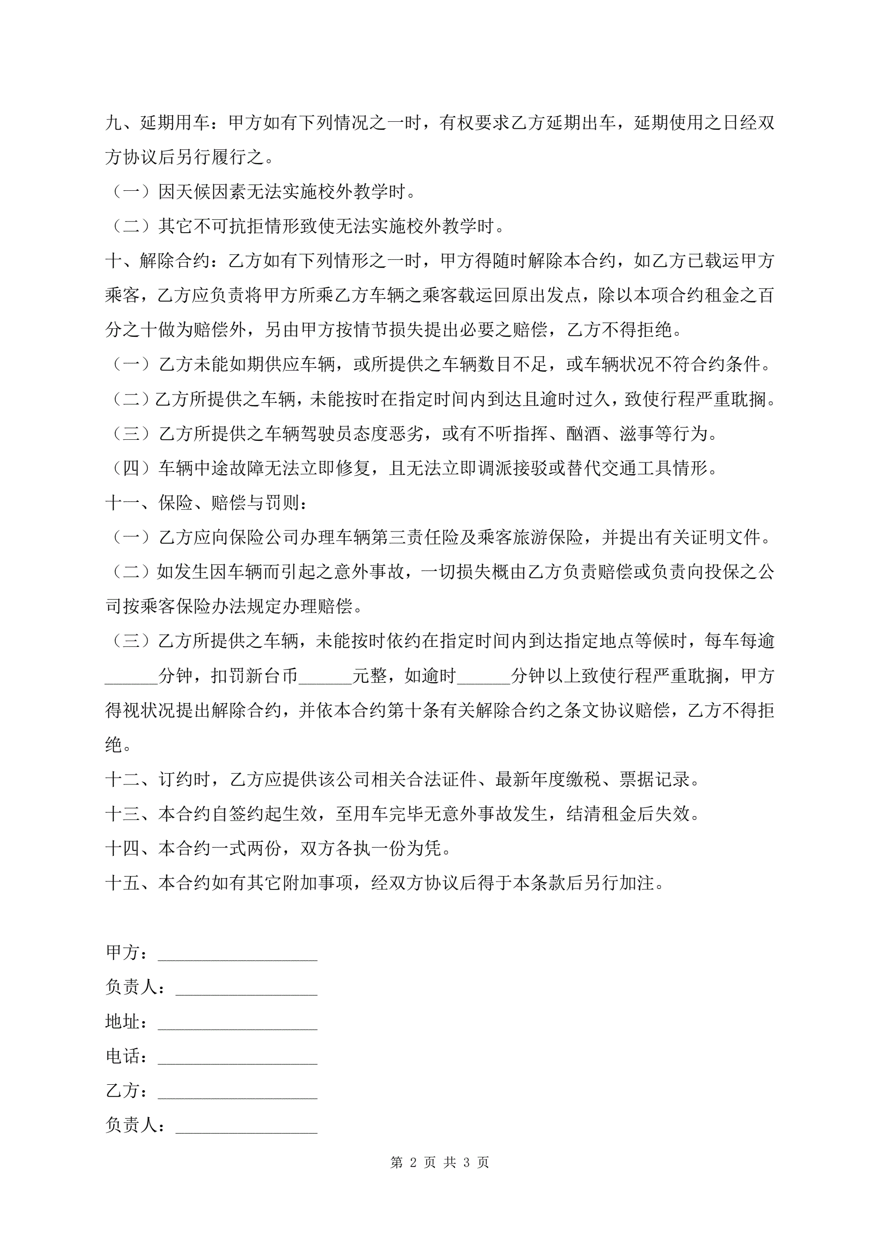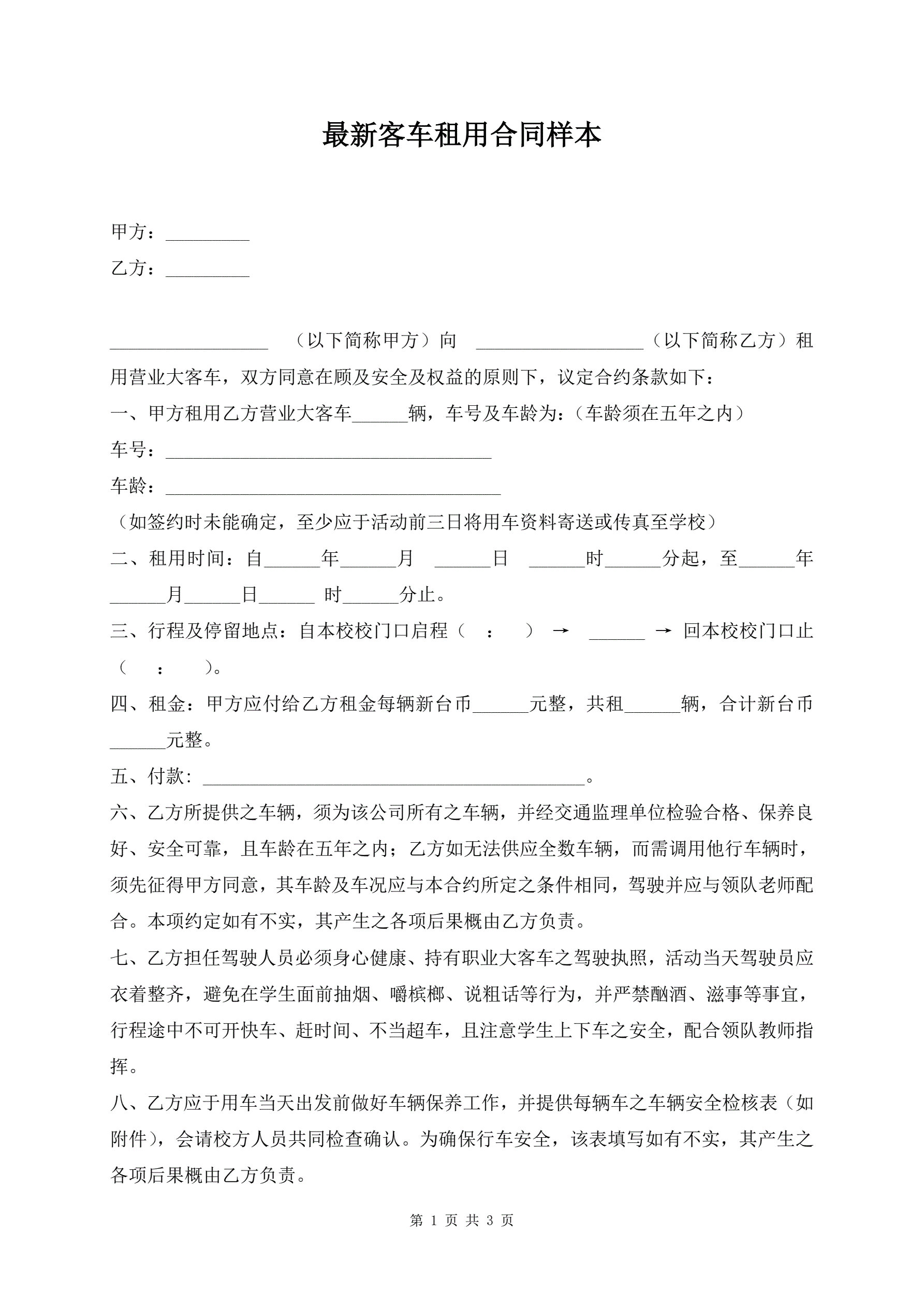 最新客车租用合同样本