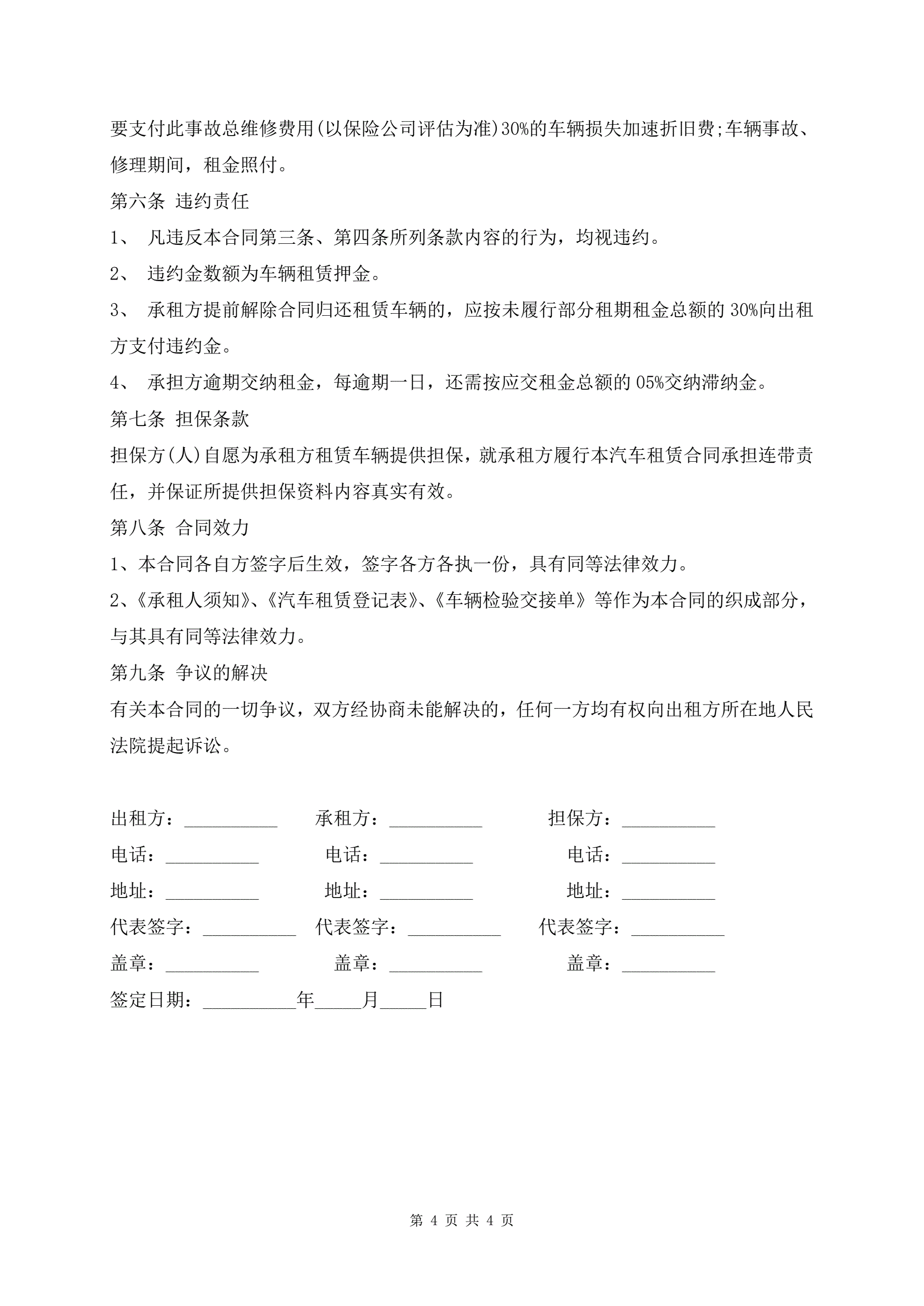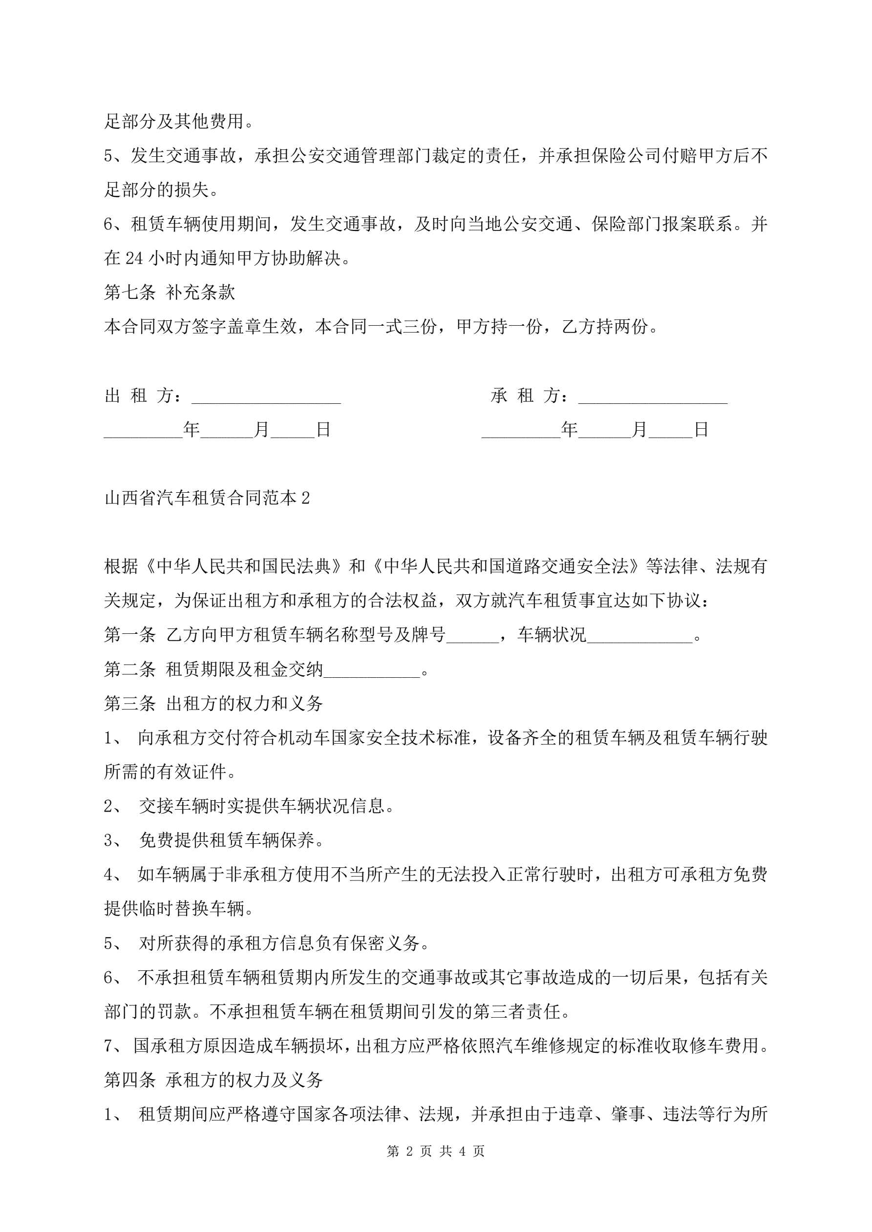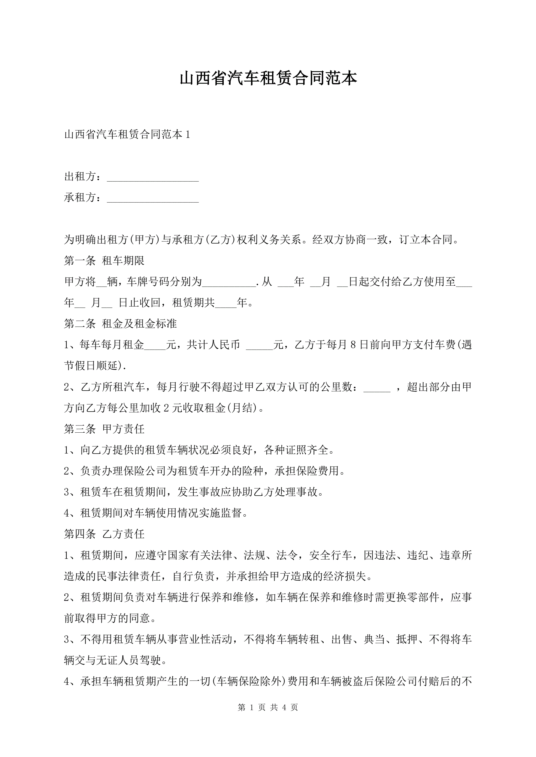 >山西省汽车租赁合同范本