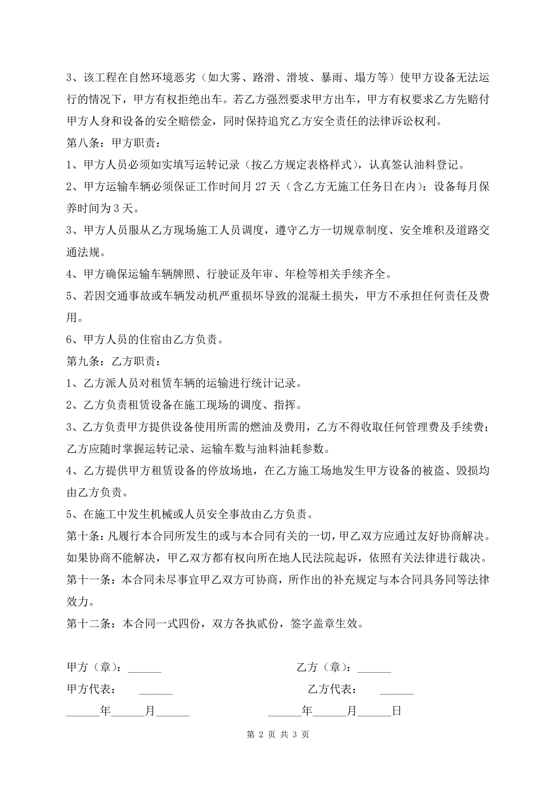 混凝土搅拌运输车租赁合同范本