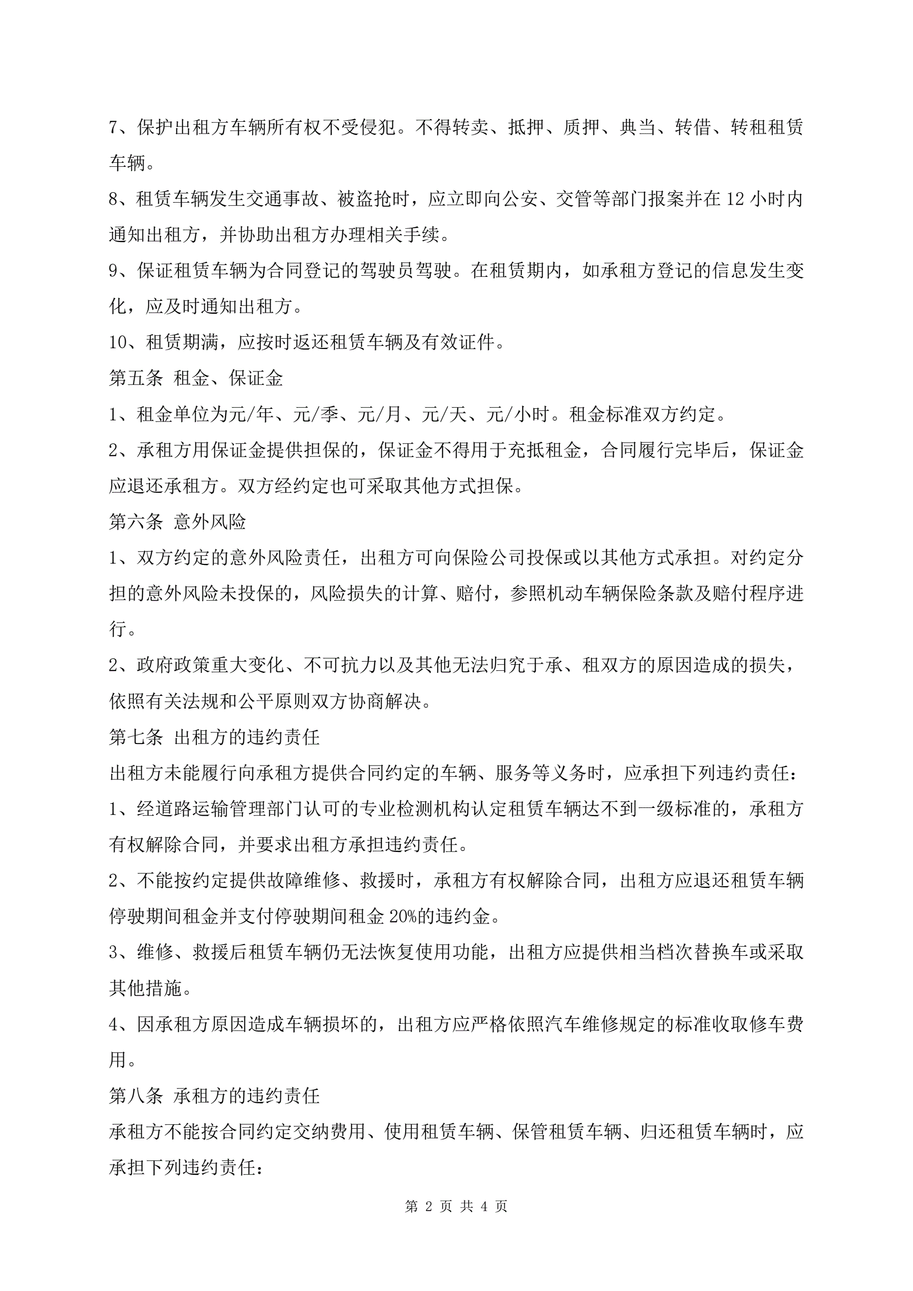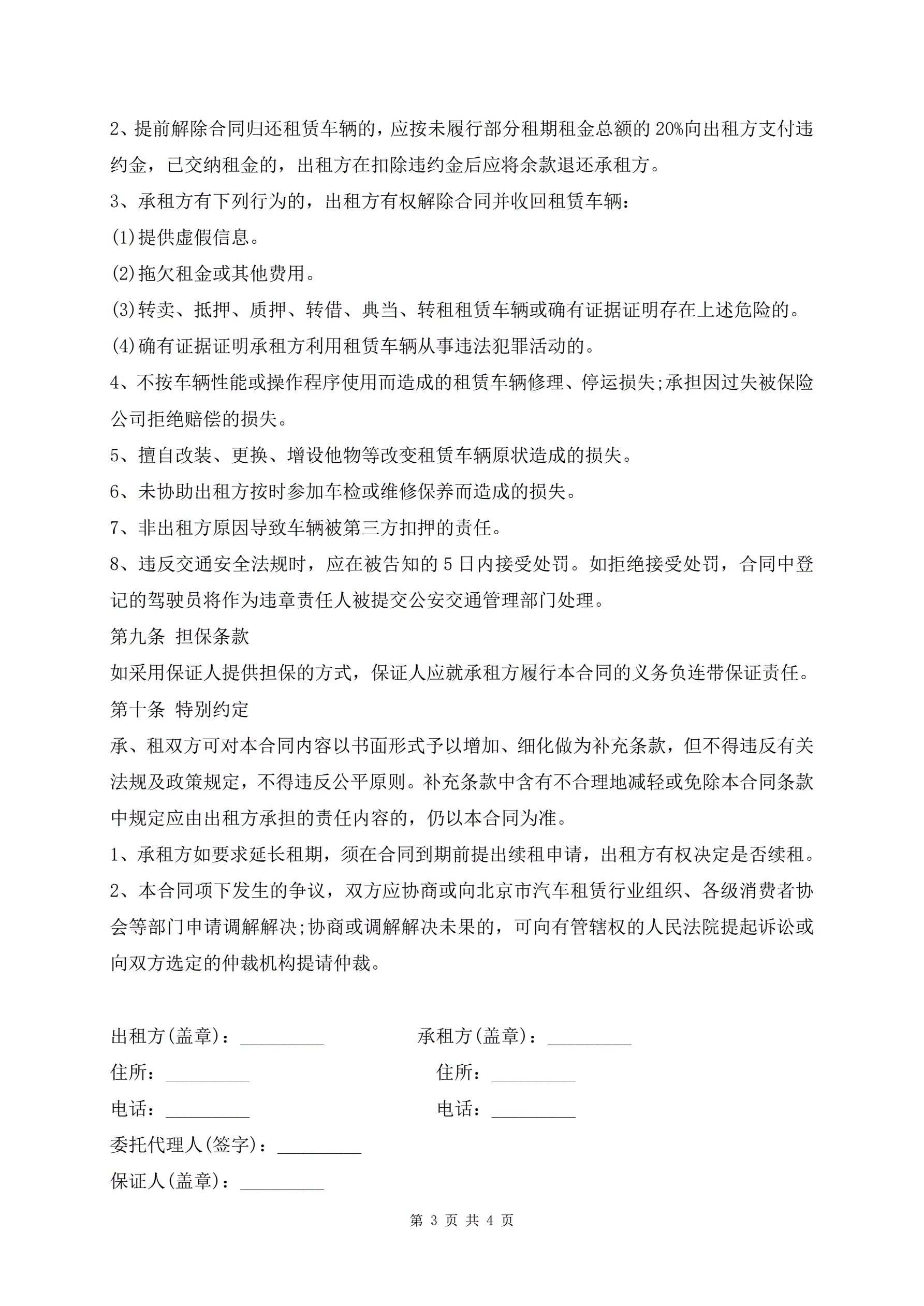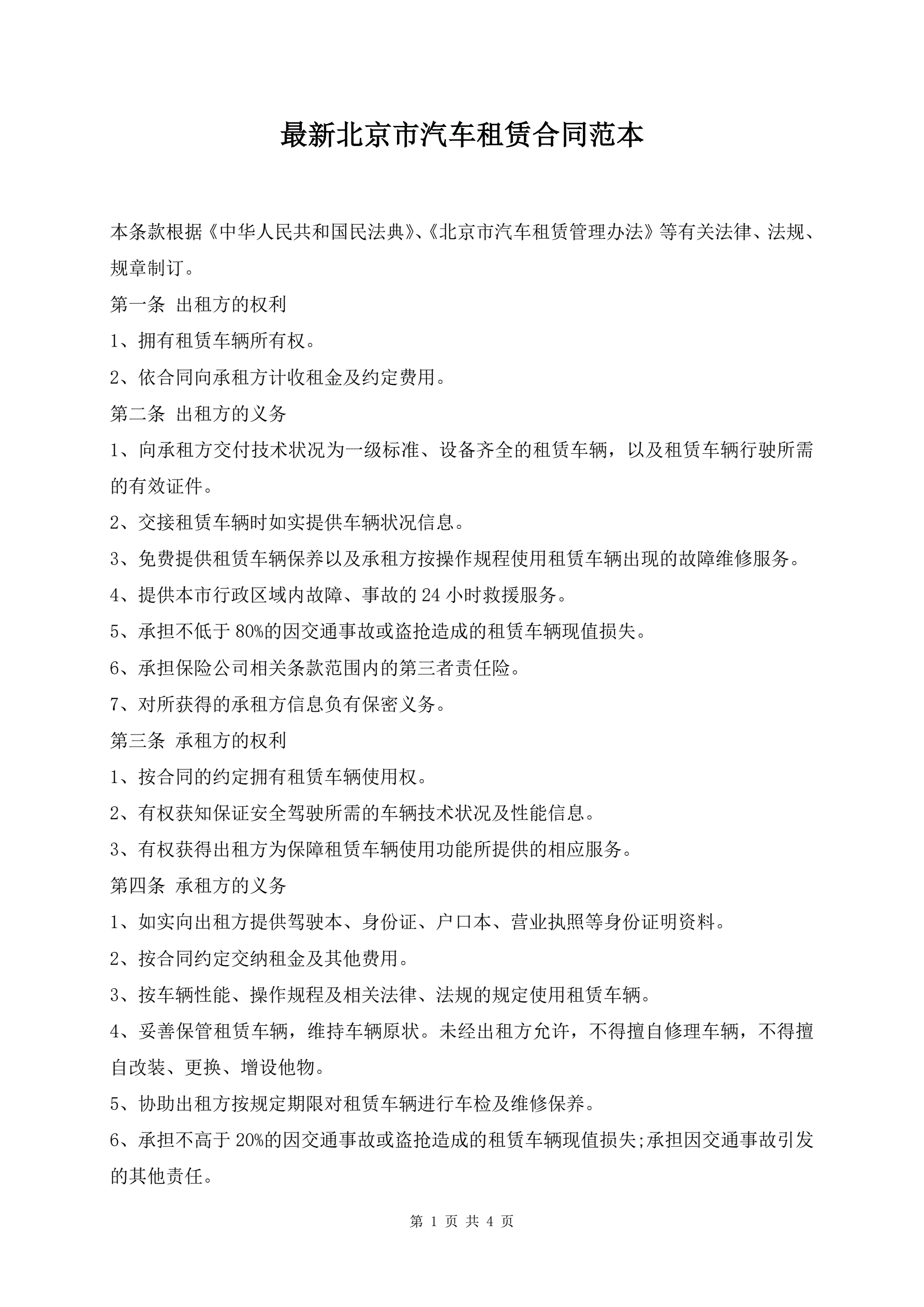 最新北京市汽车租赁合同范本