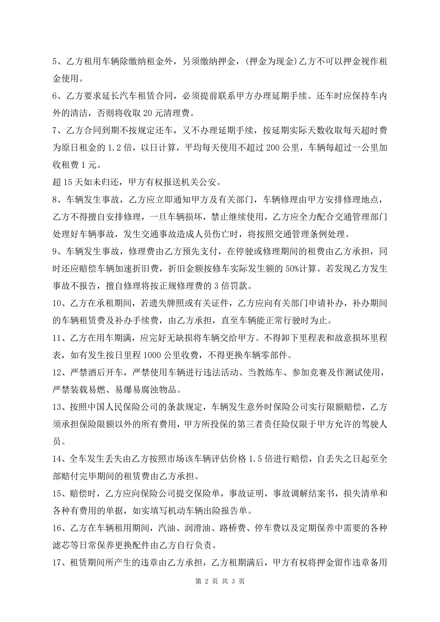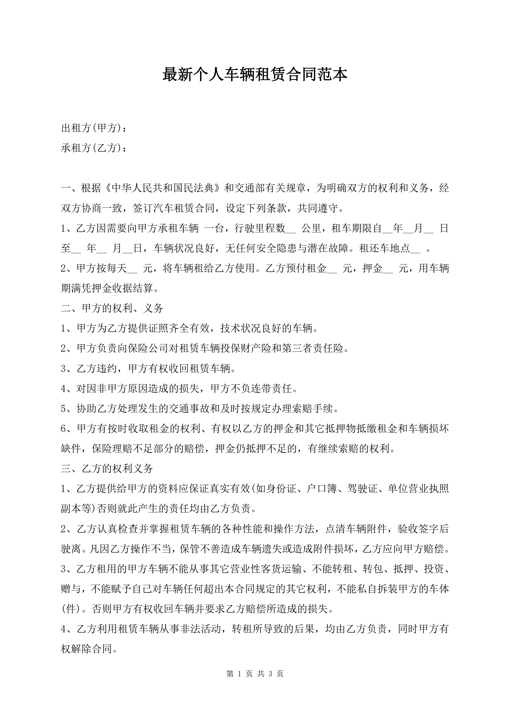 最新个人车辆租赁合同范本