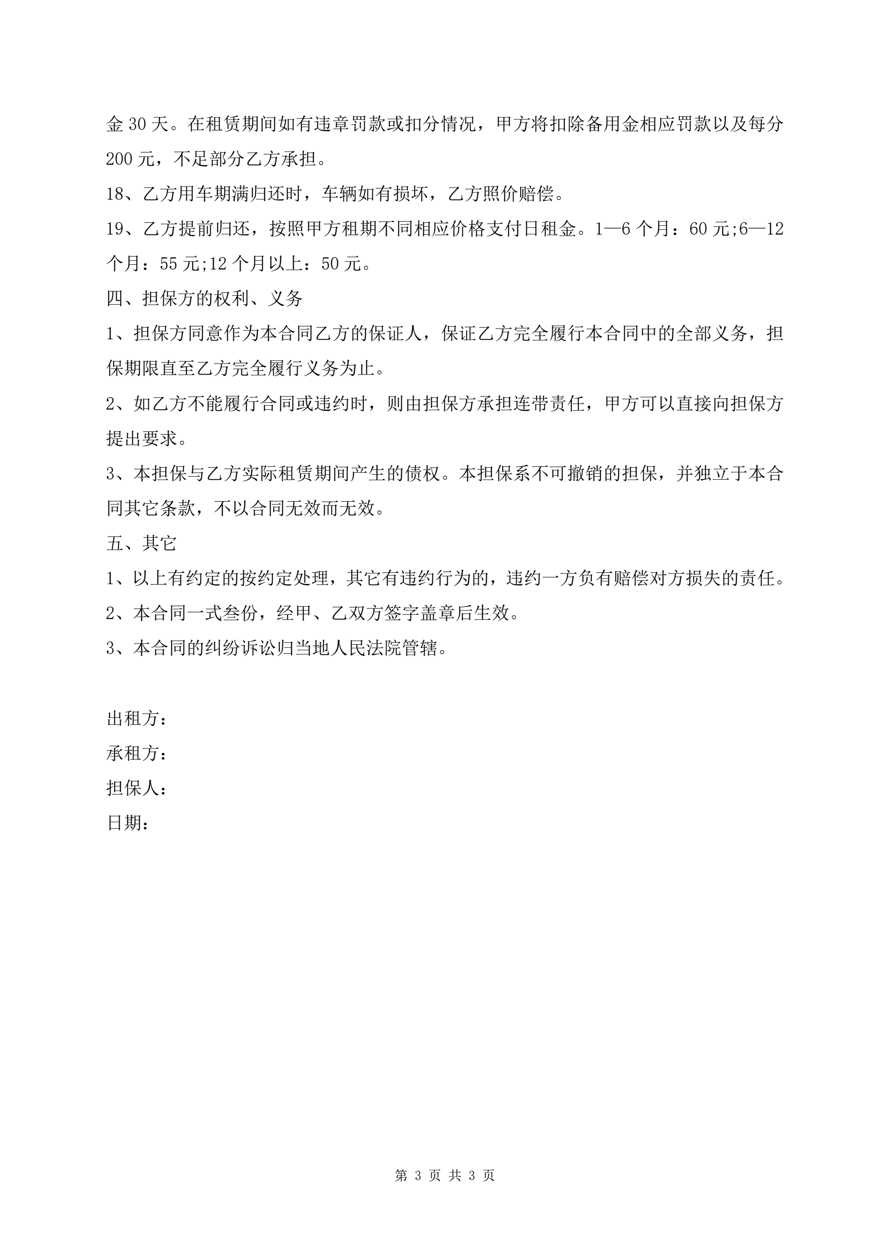>最新个人车辆租赁合同范本