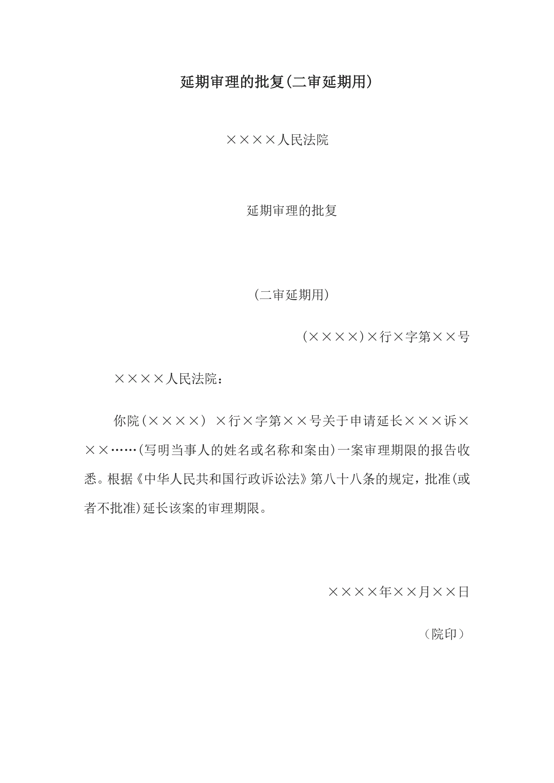 >延期审理的批复(二审延期用)