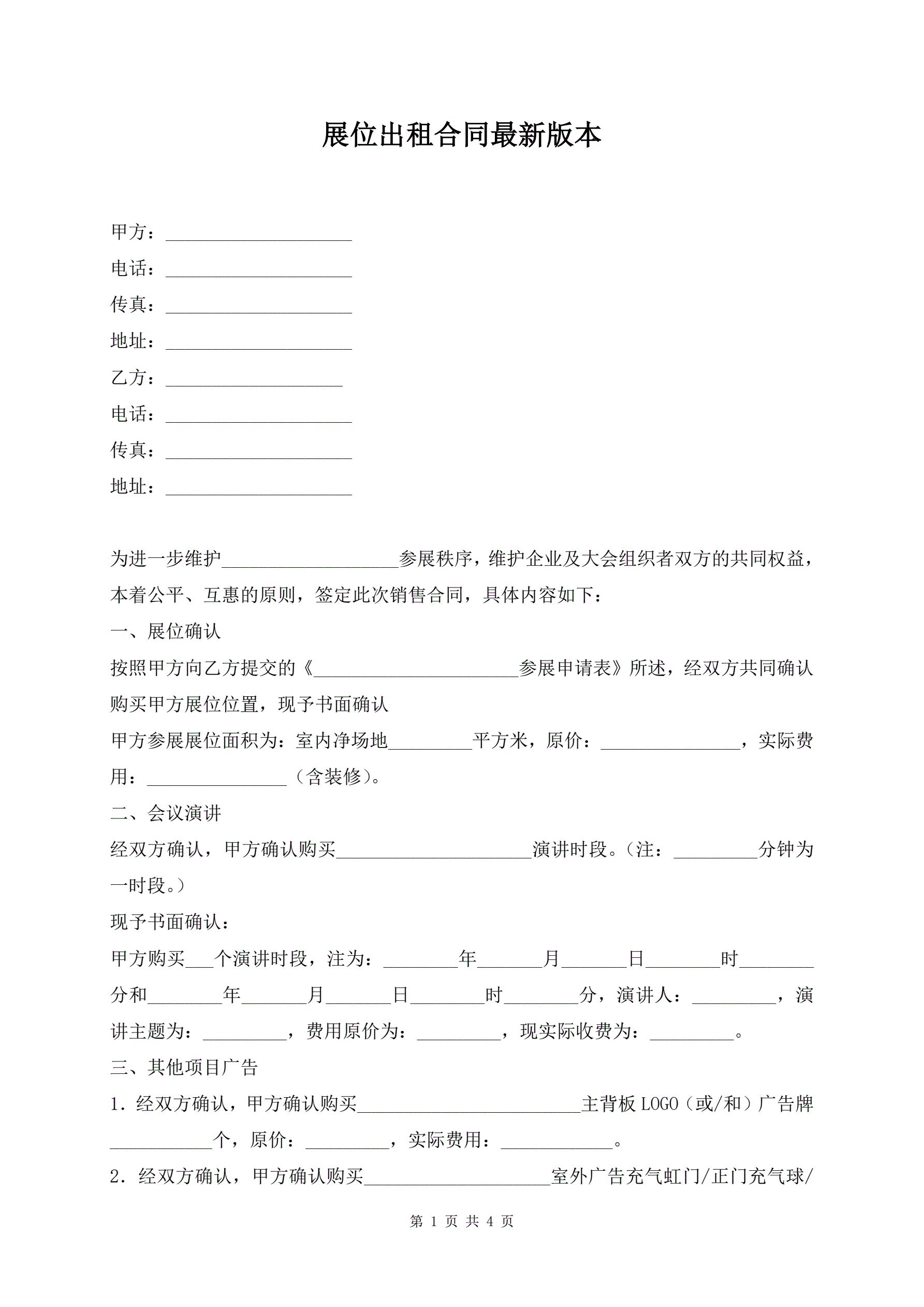 展位出租合同最新版本