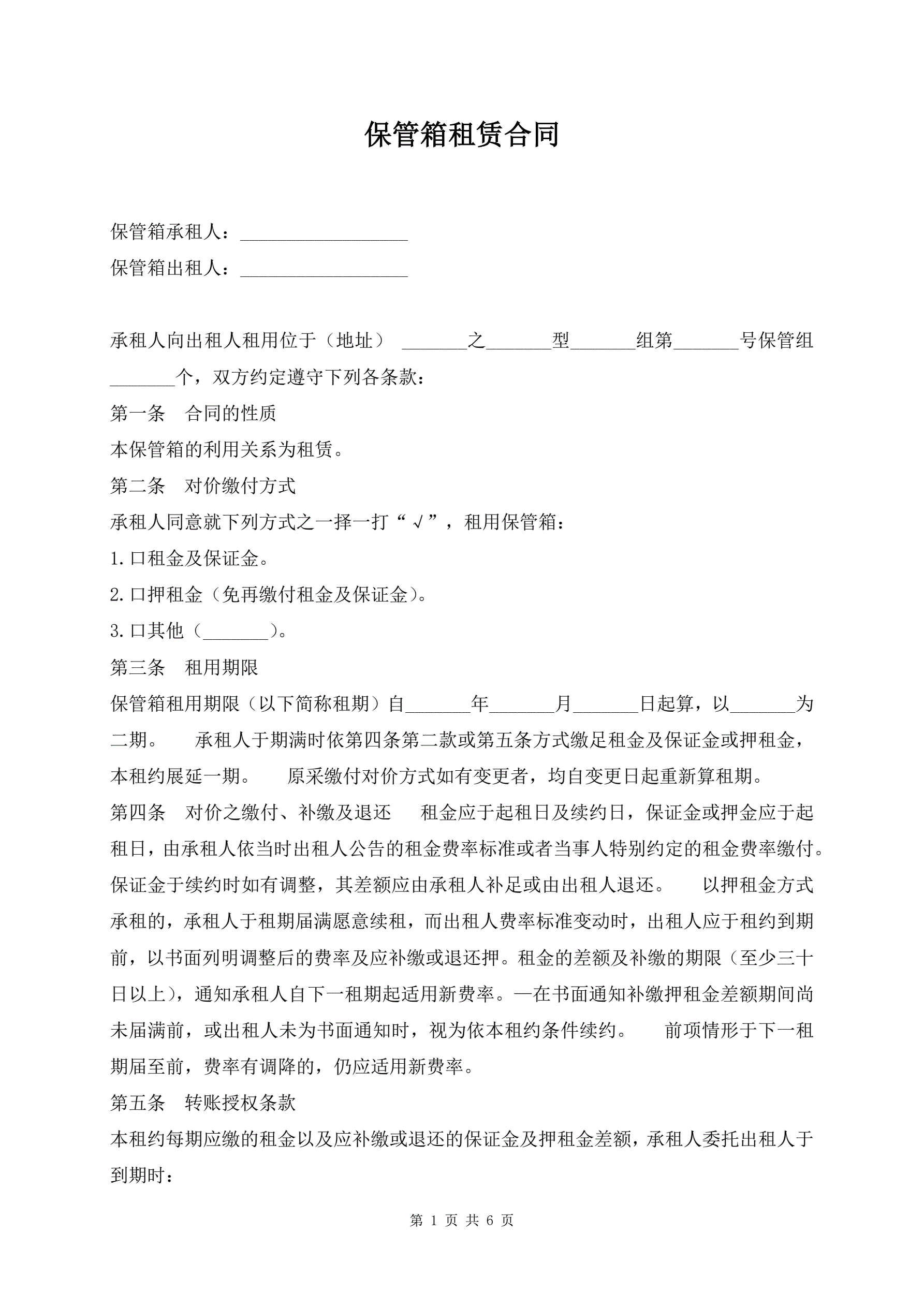 合同名称:保管箱租赁合同