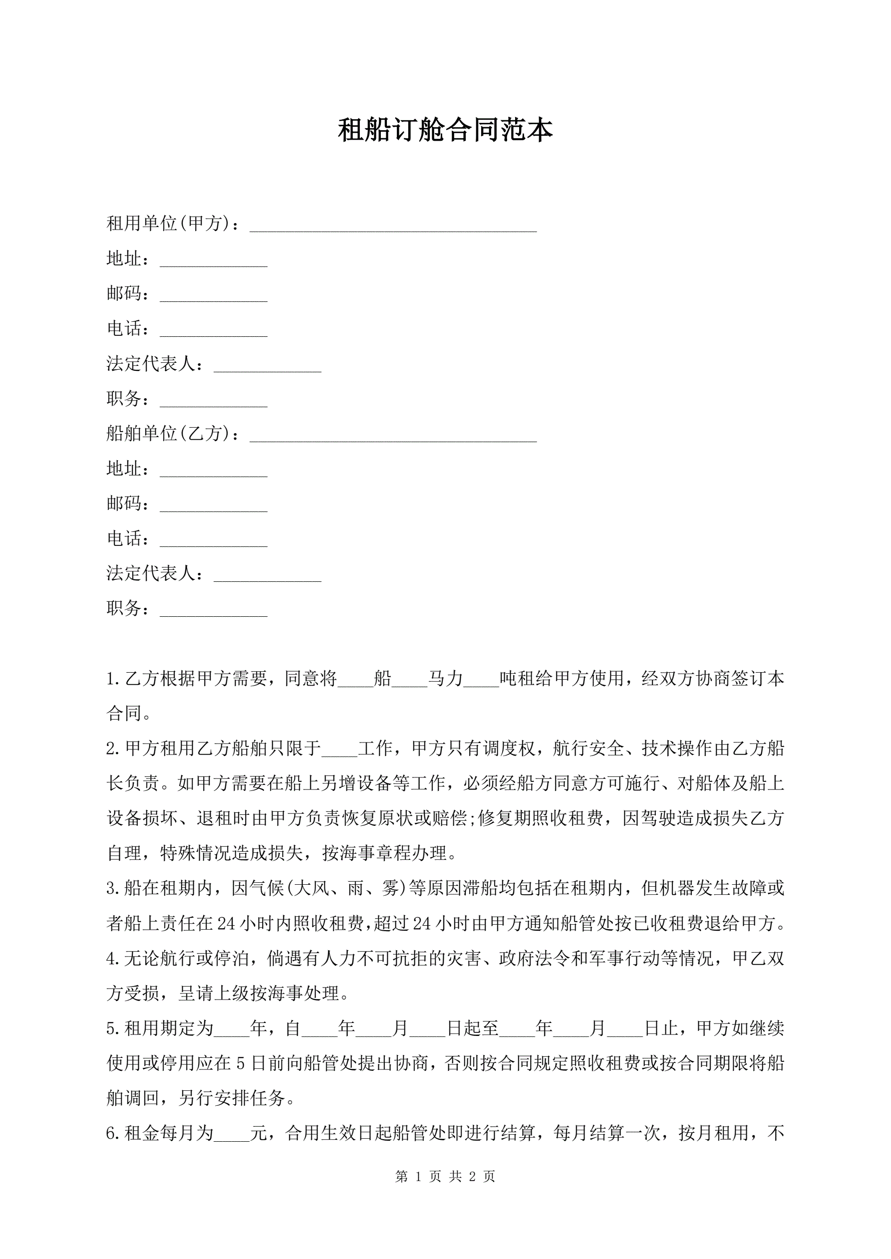 >租船订舱合同范本