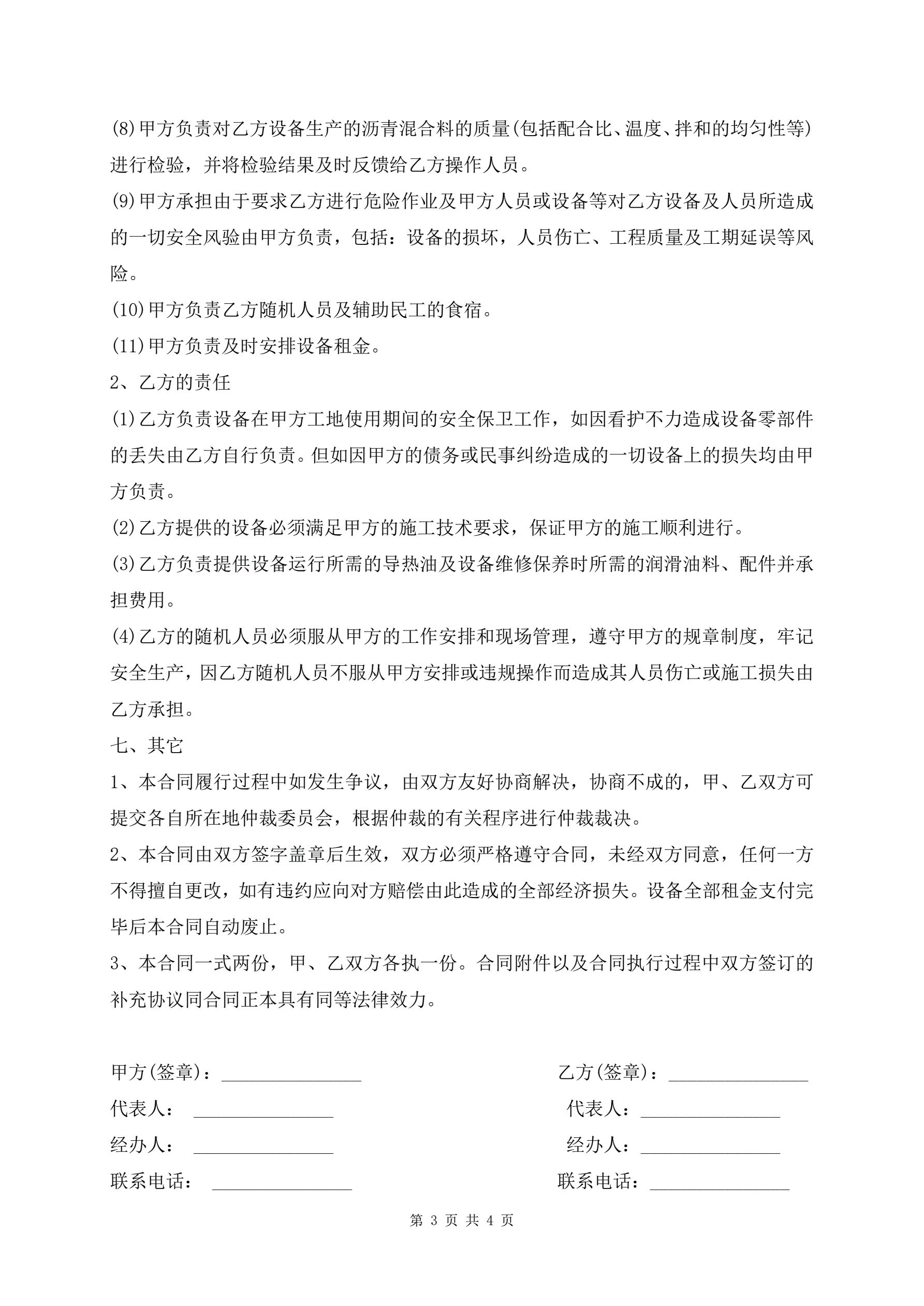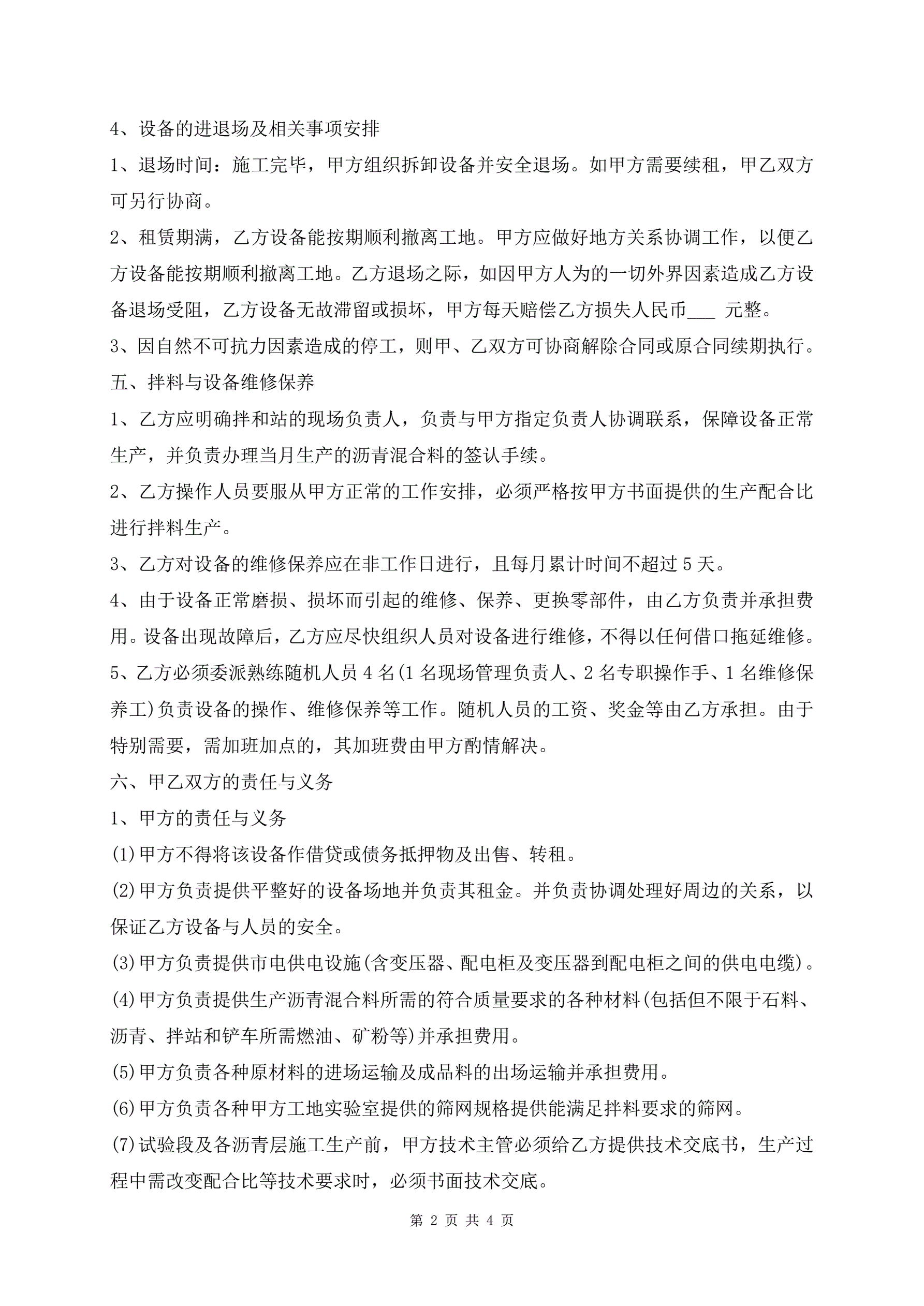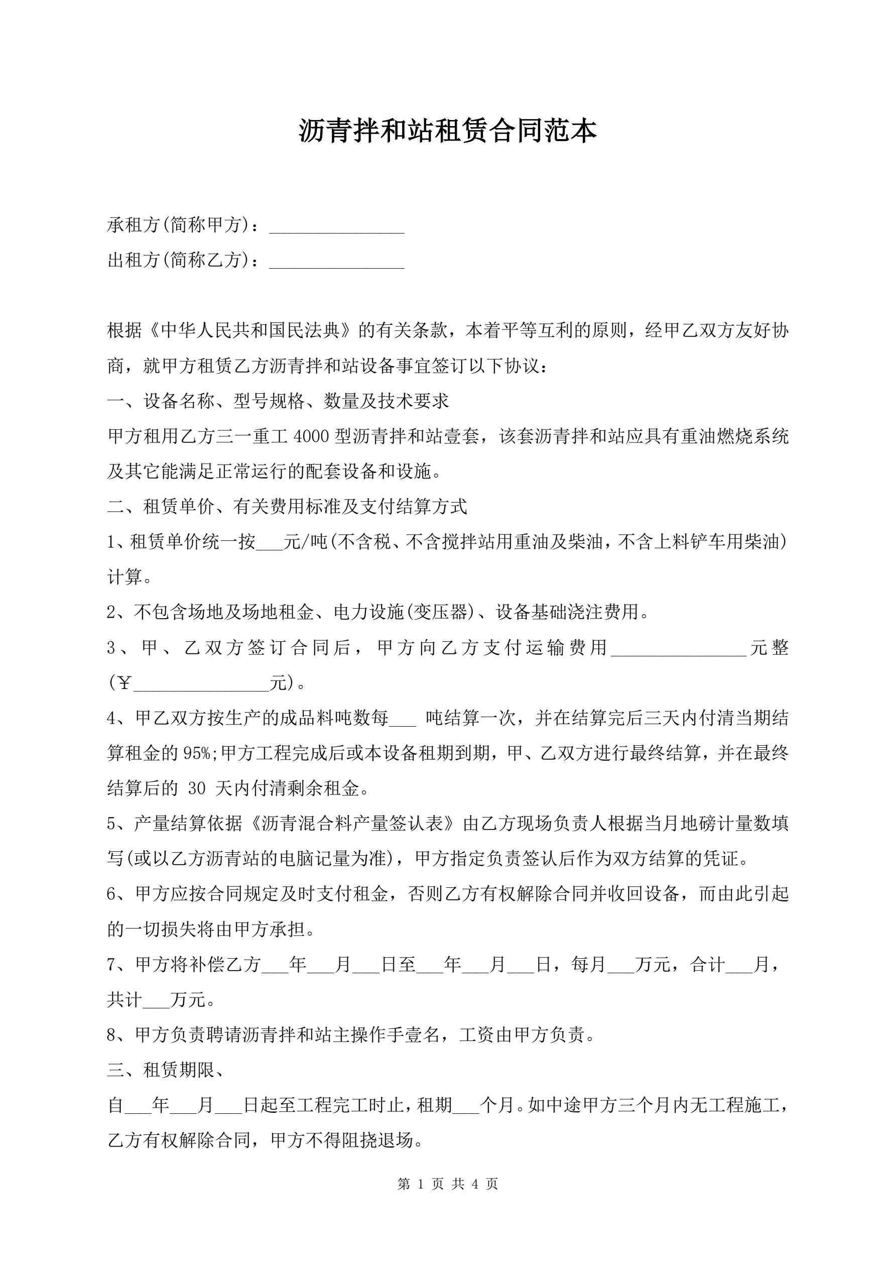 沥青拌和站租赁合同范本