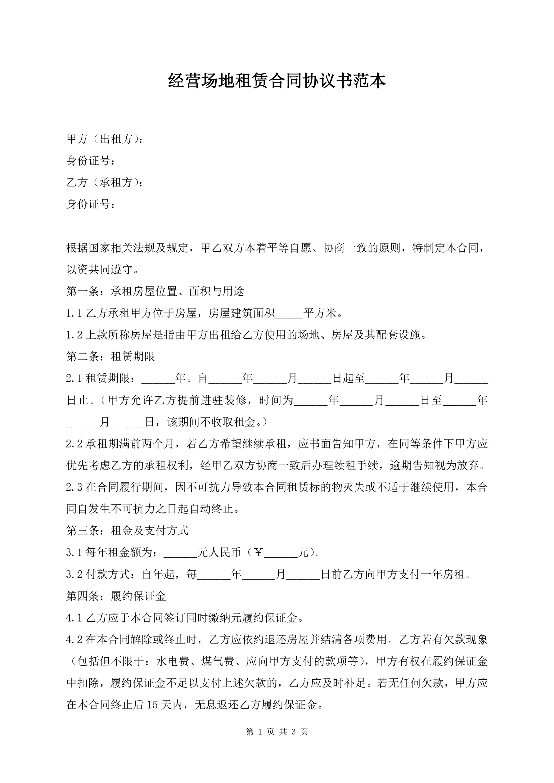 经营场地租赁合同协议书范本