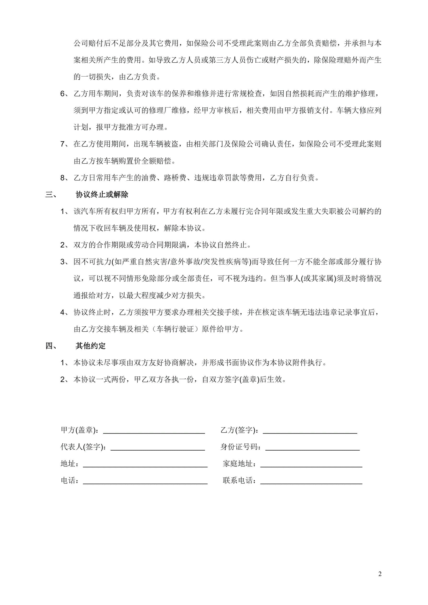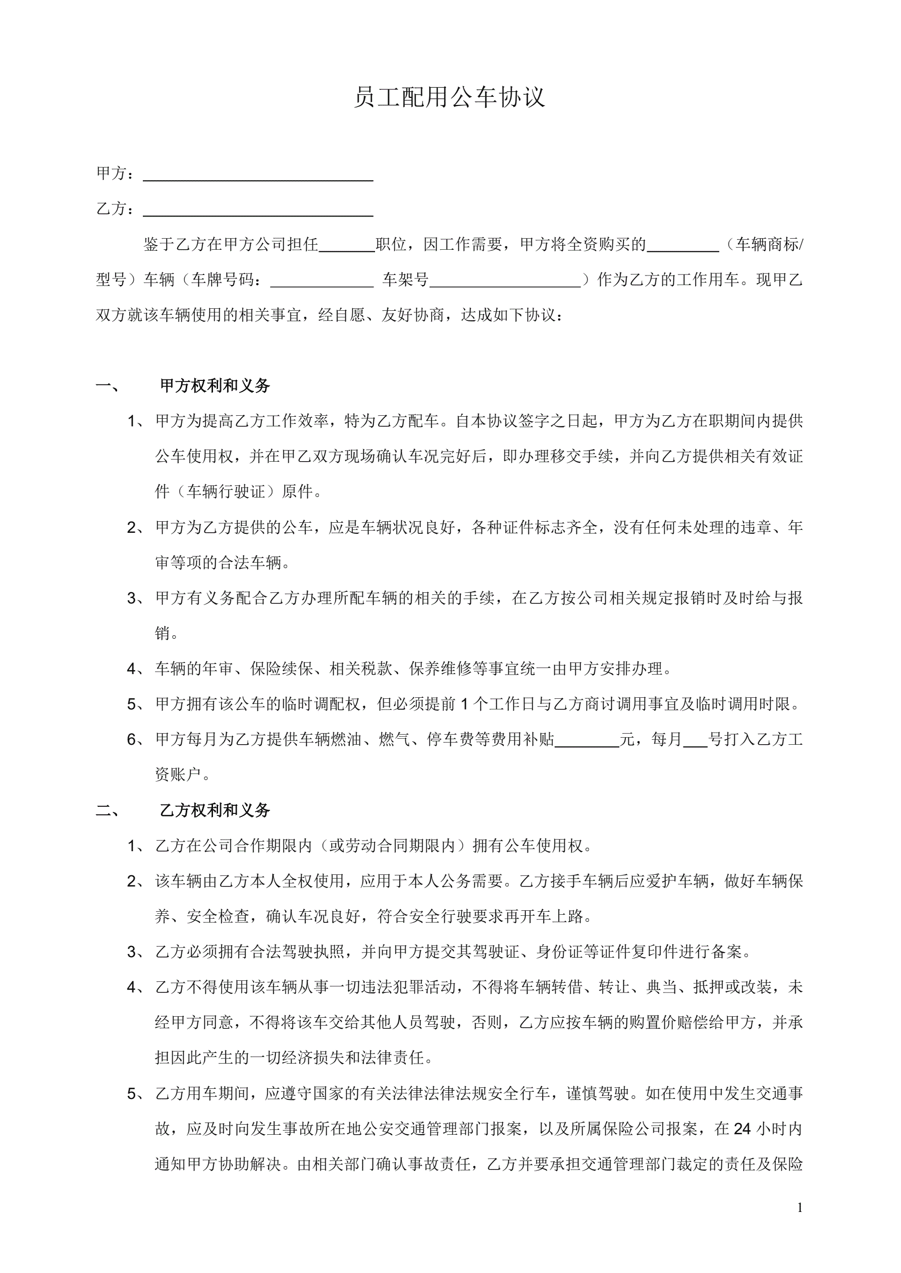 员工配用公车协议