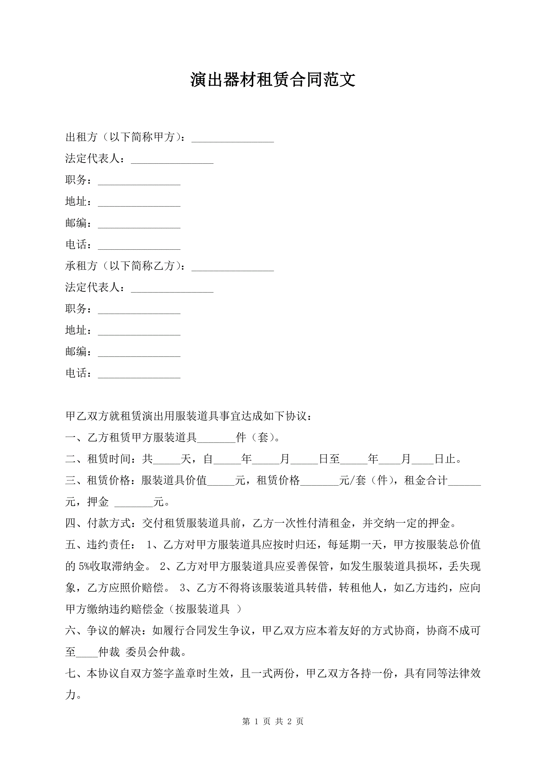 >演出器材租赁合同范文
