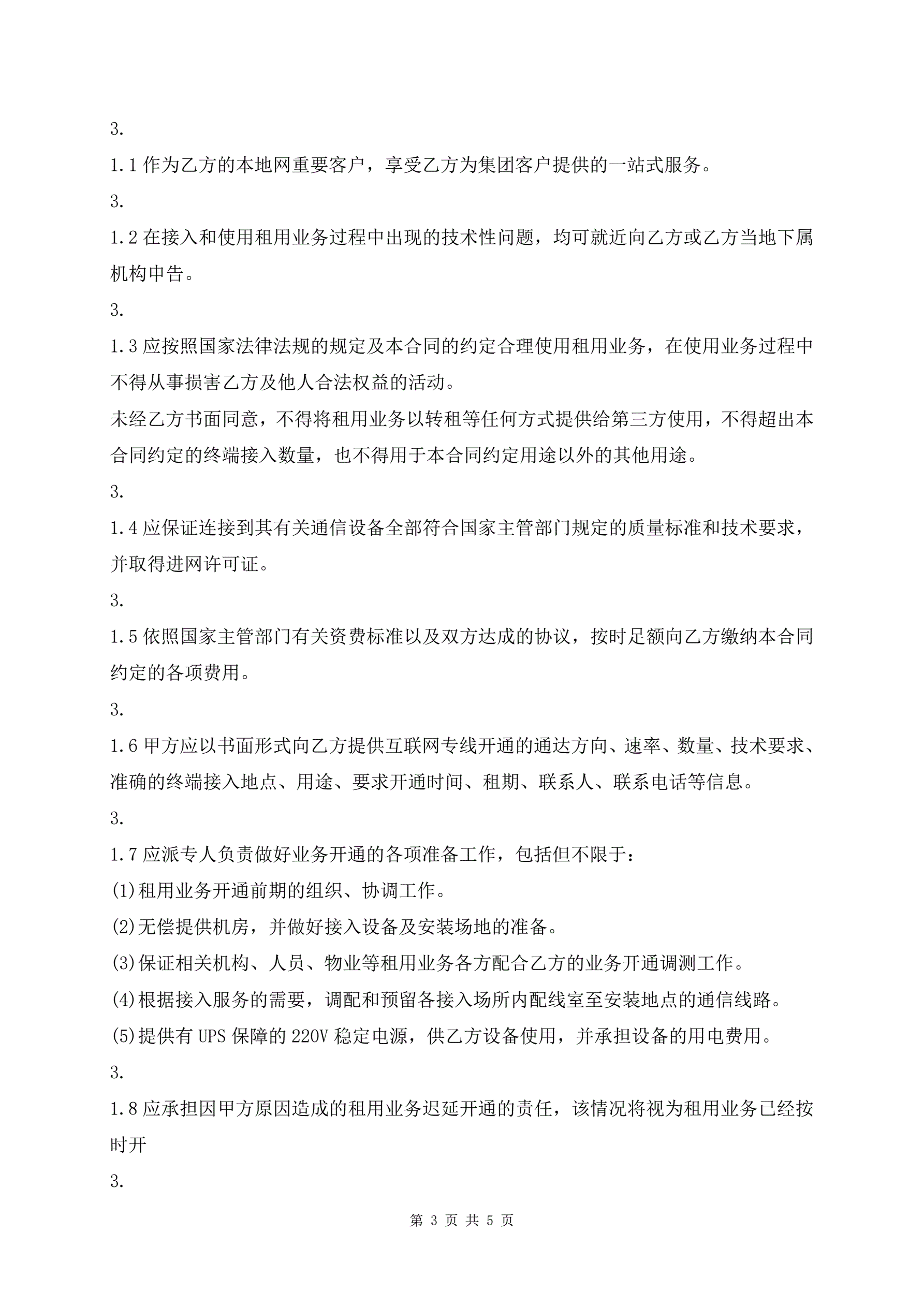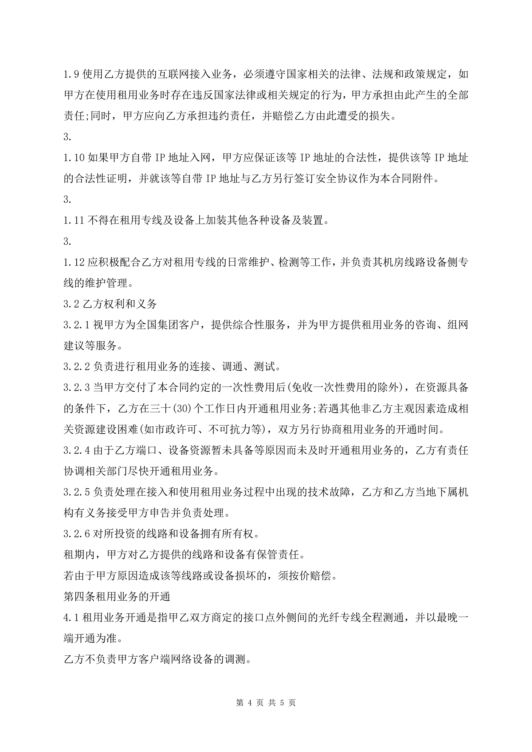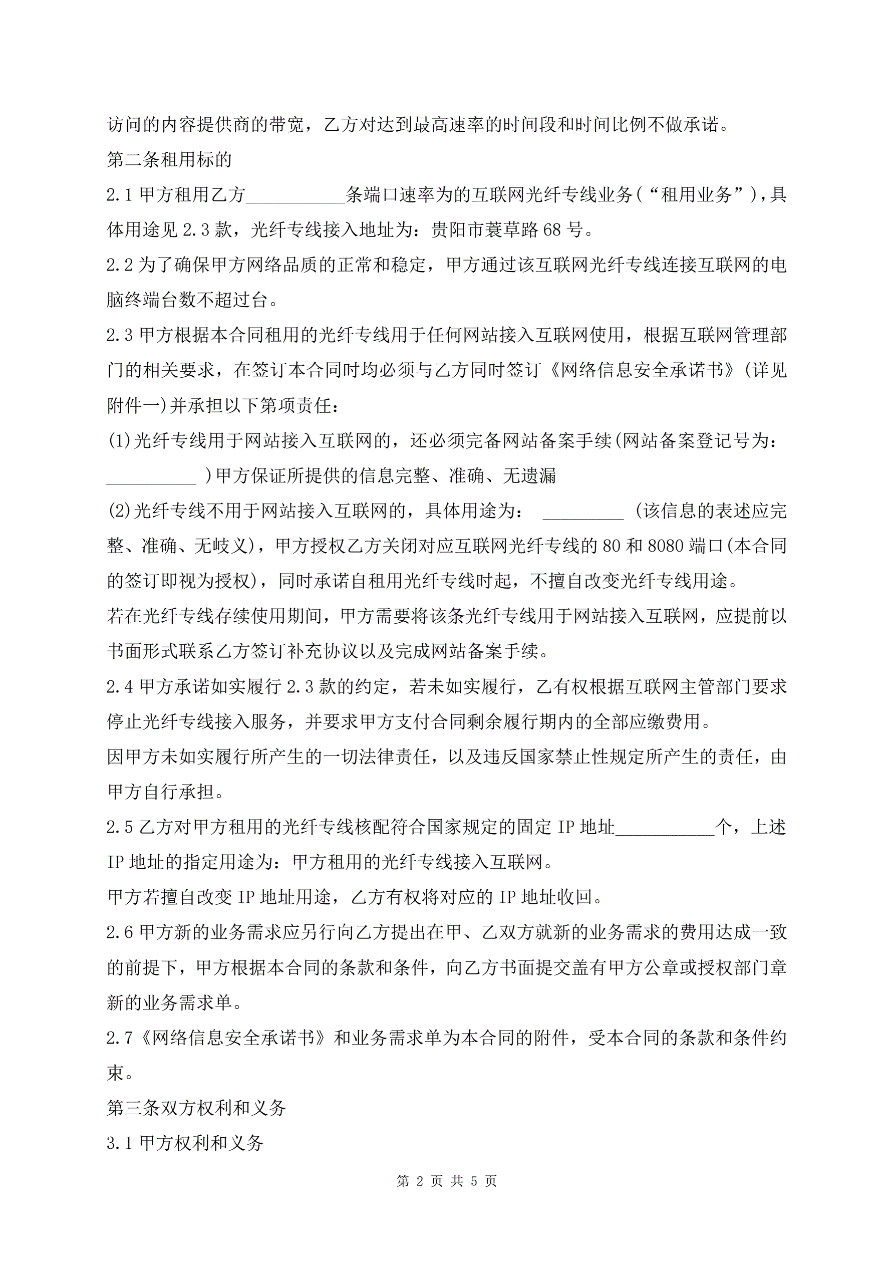 互联网光纤专线租用合同