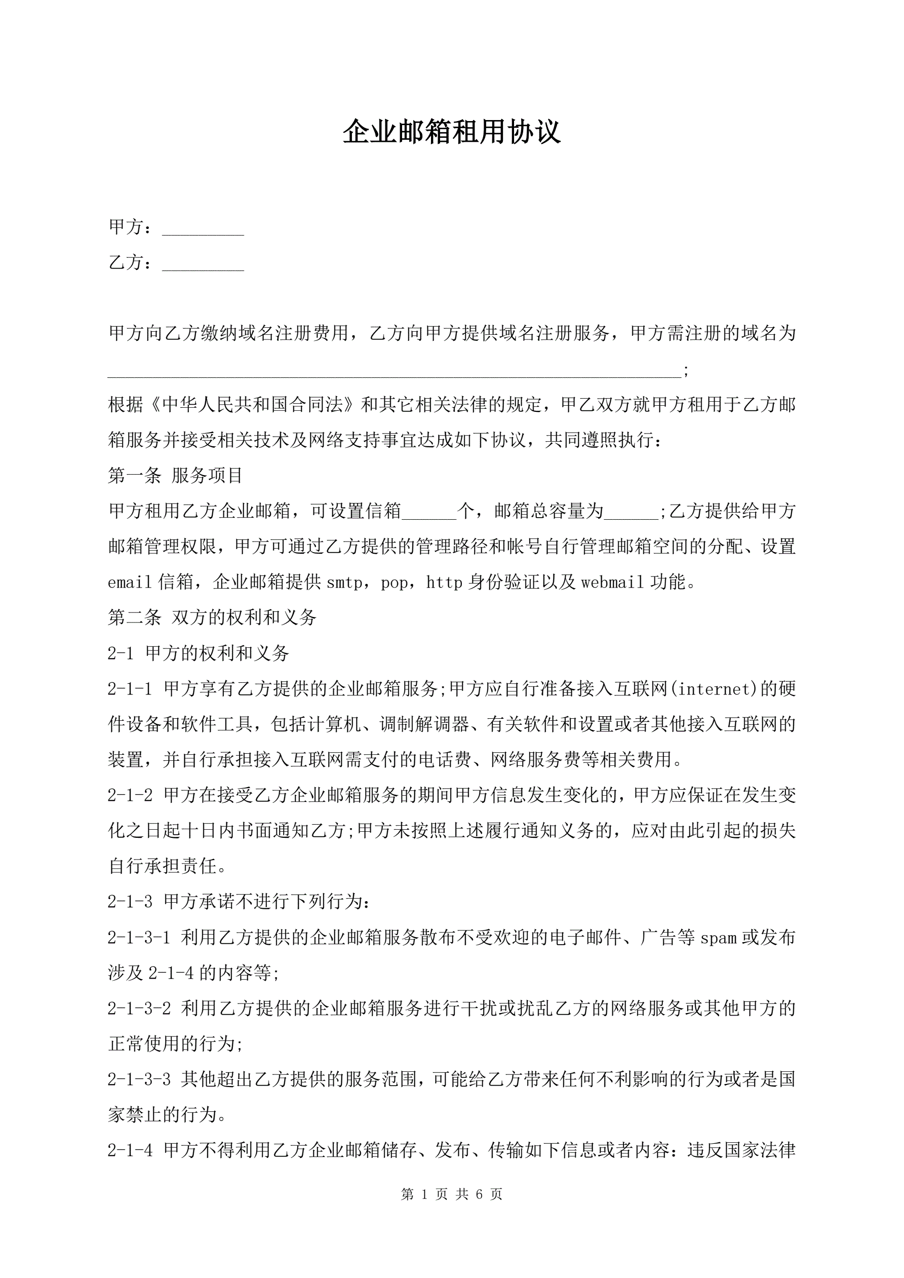 企业邮箱租用协议