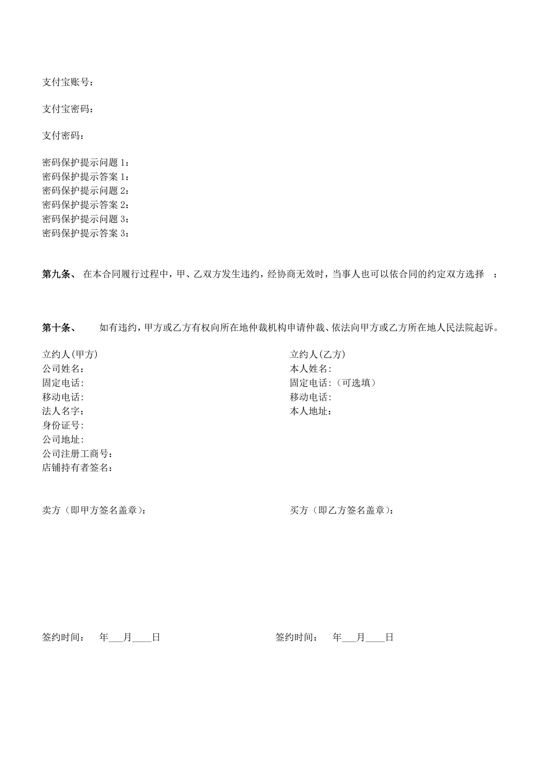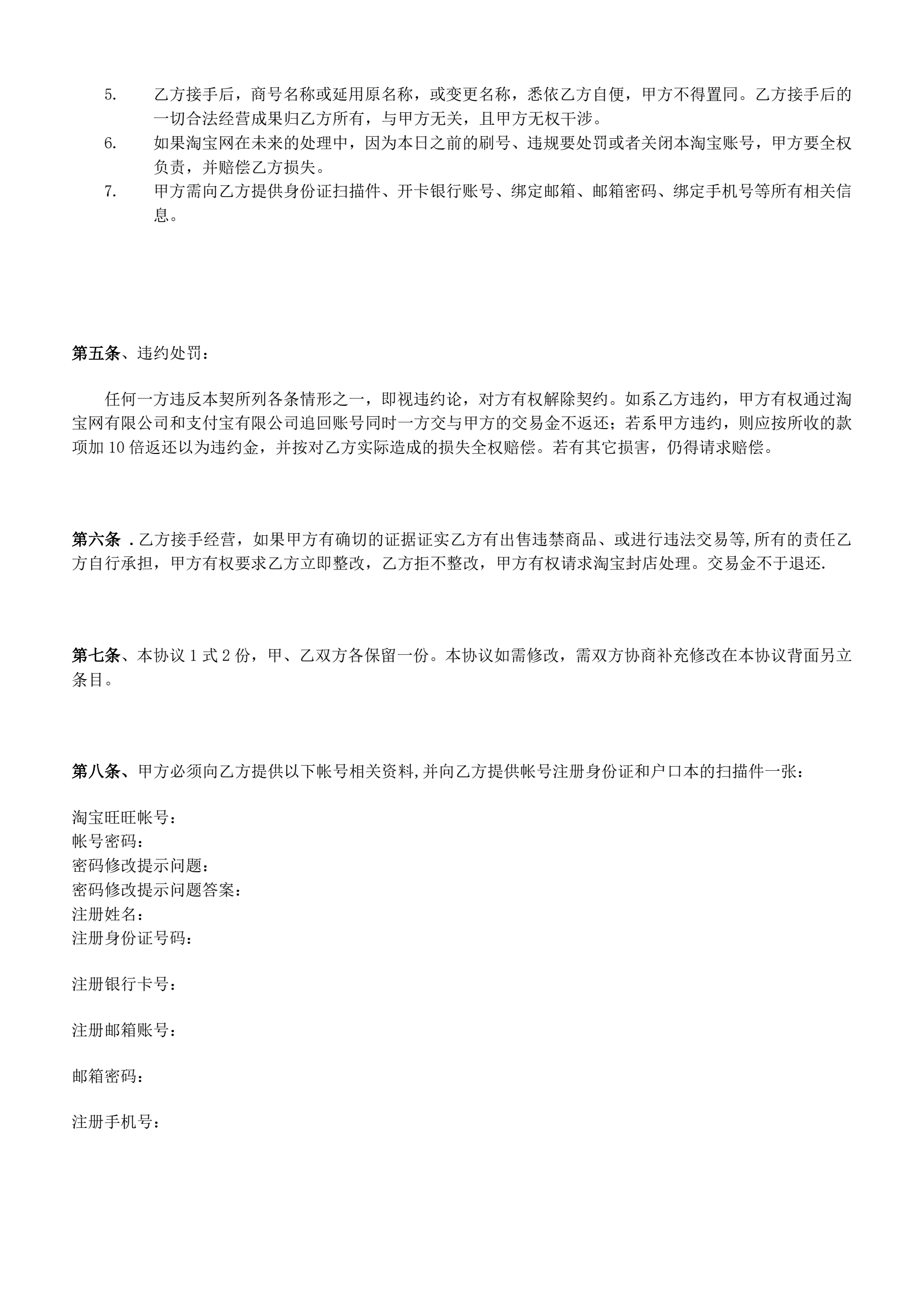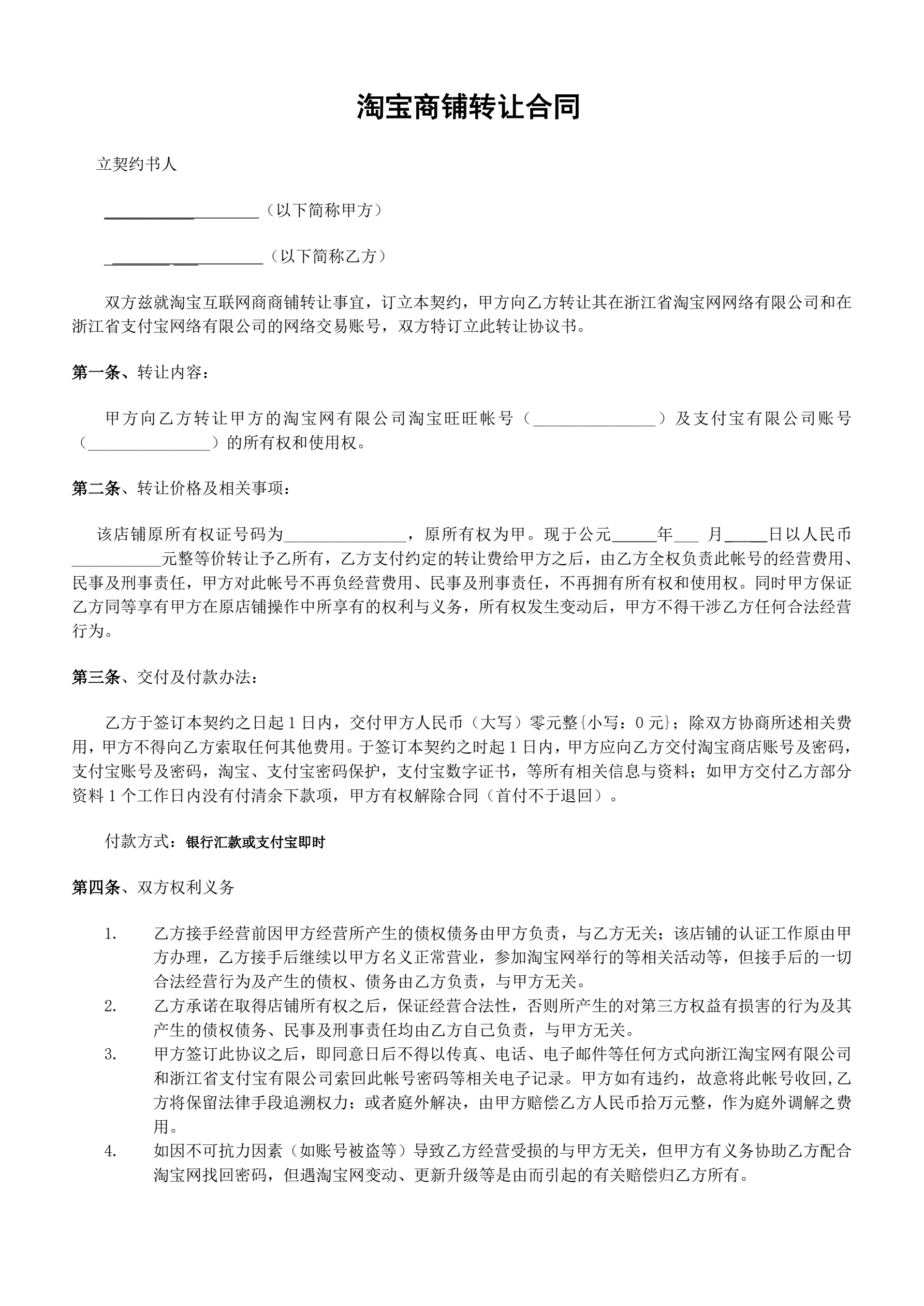 淘宝商铺转让合同