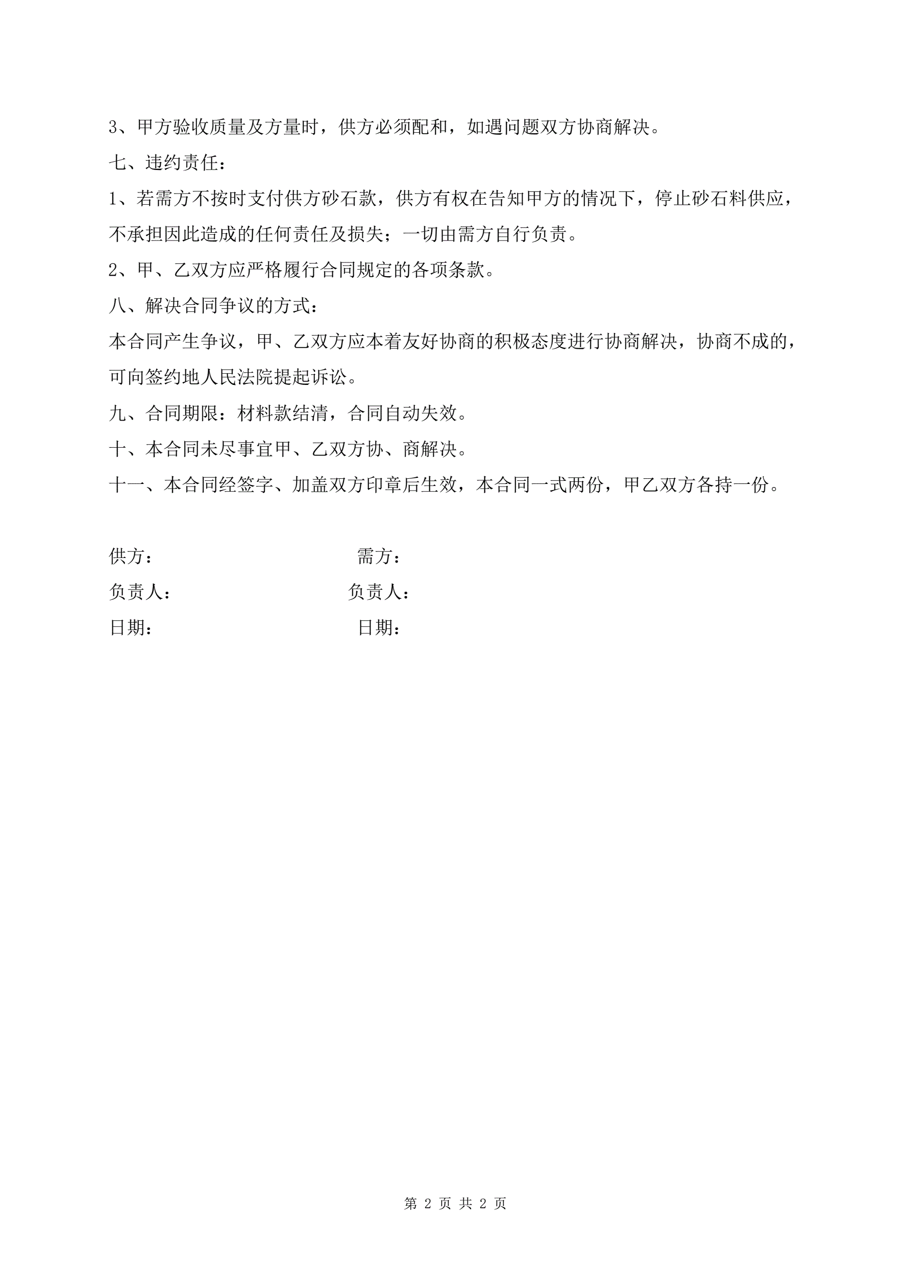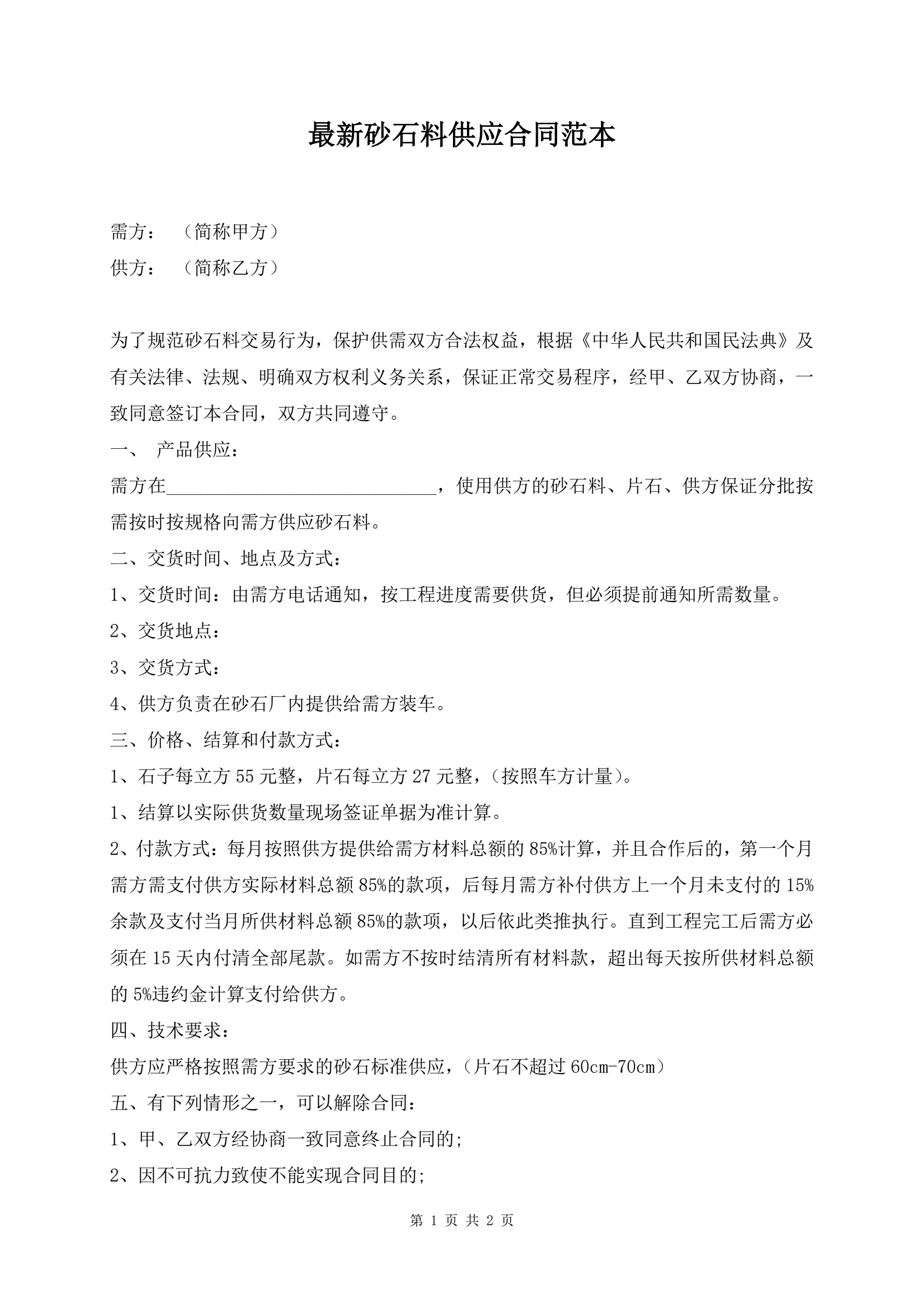最新砂石料供应合同范本
