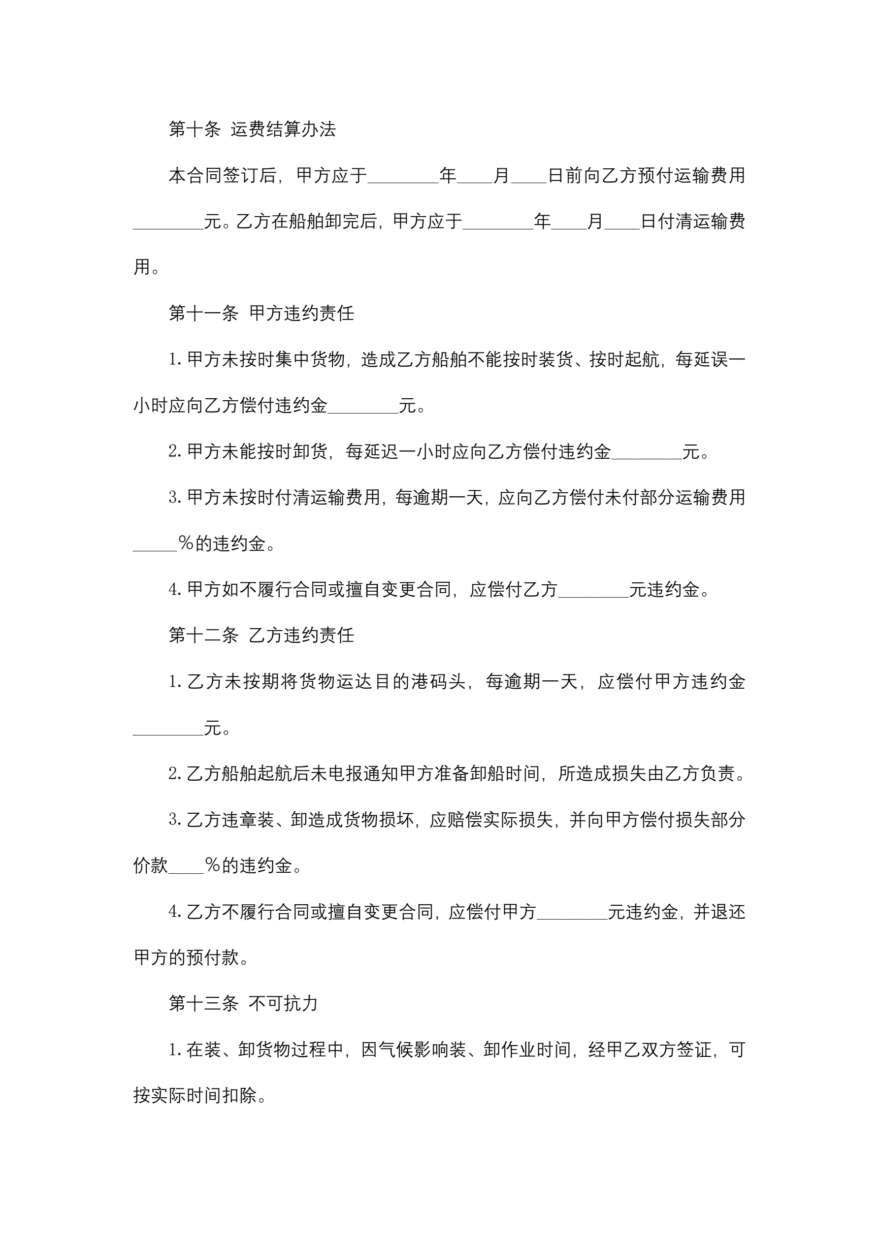 合同名称:包船运输合同