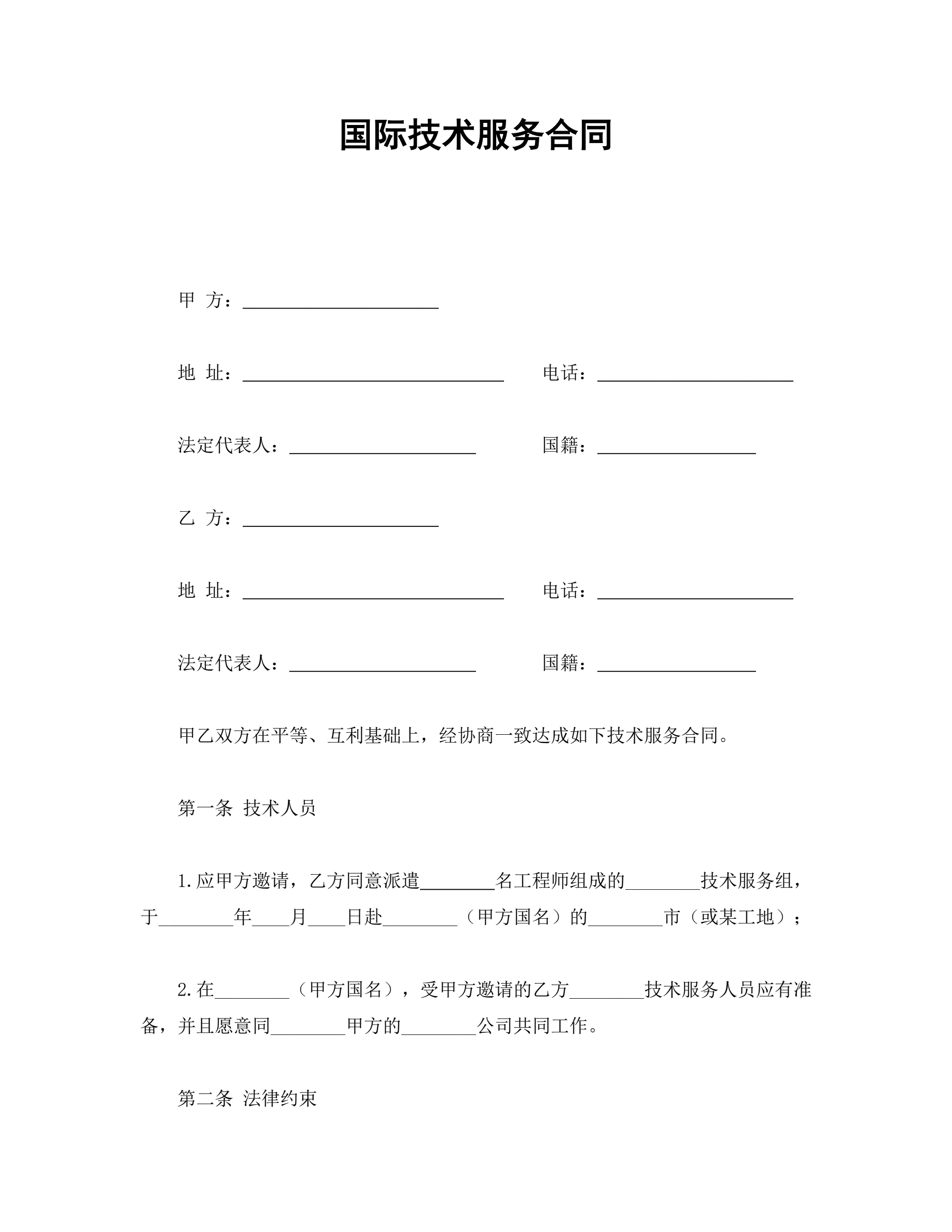 合同名称:国际技术服务合同(2)