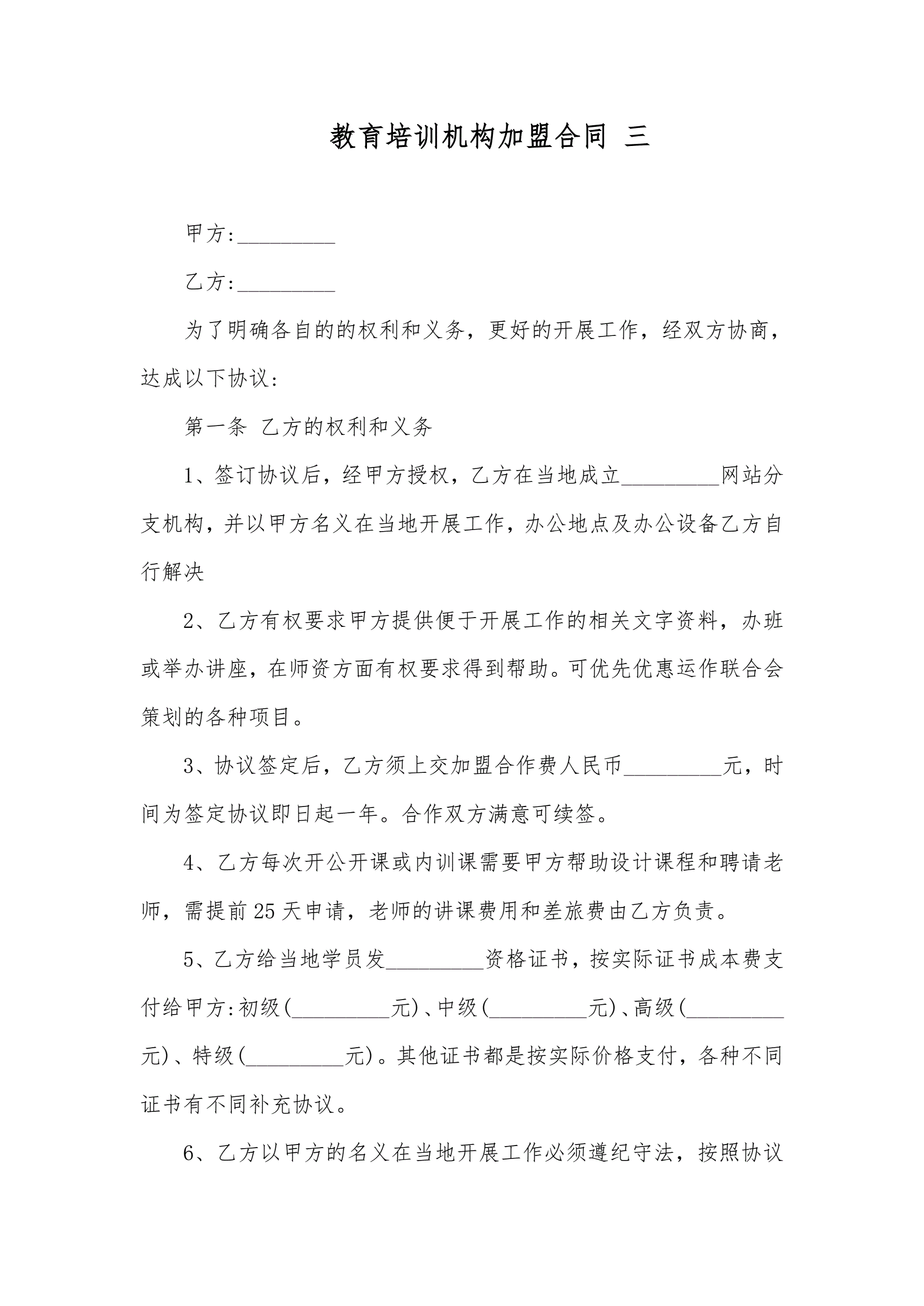 >教育培训机构加盟合同3篇