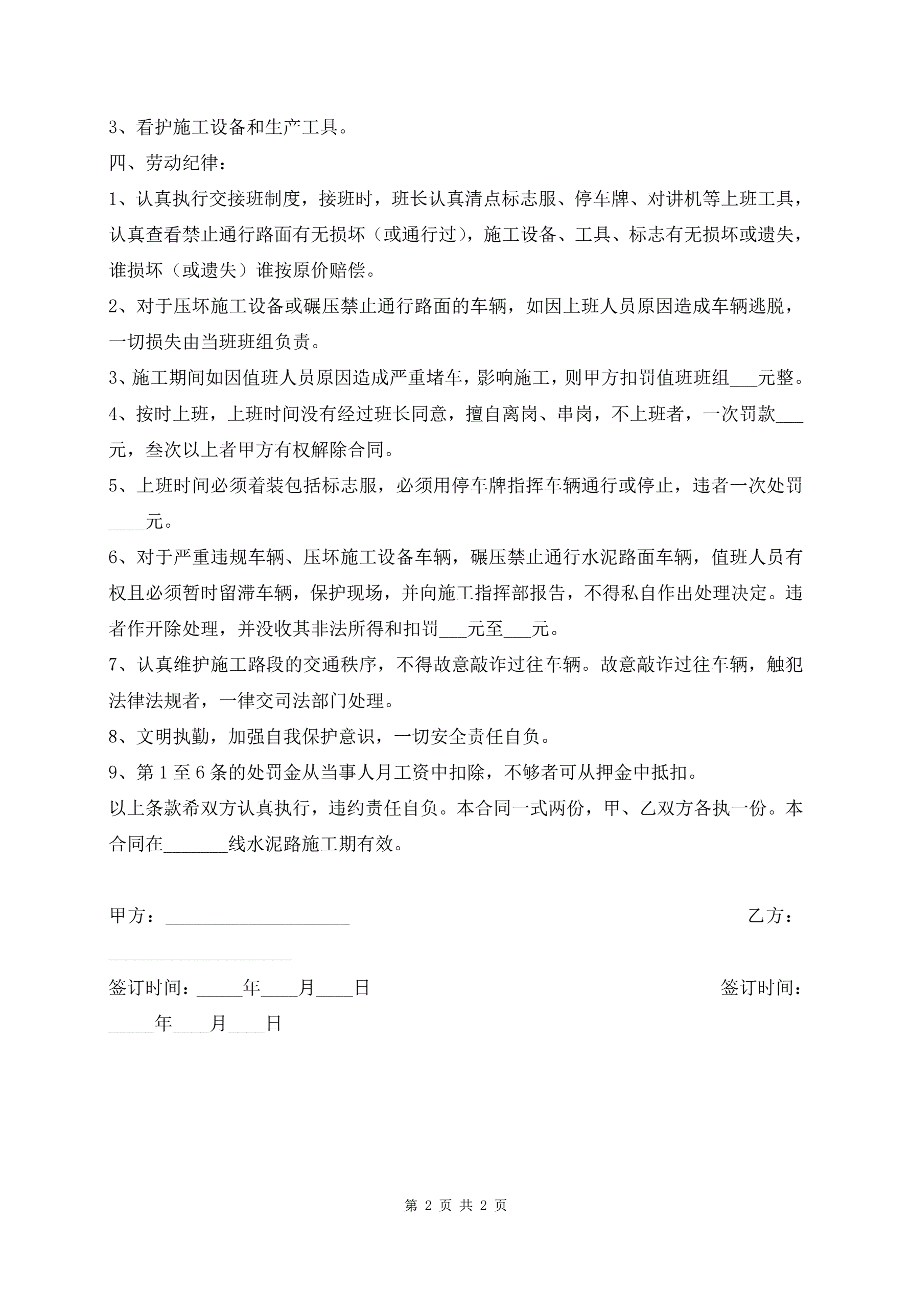 交通秩序维护人员雇请合同范本