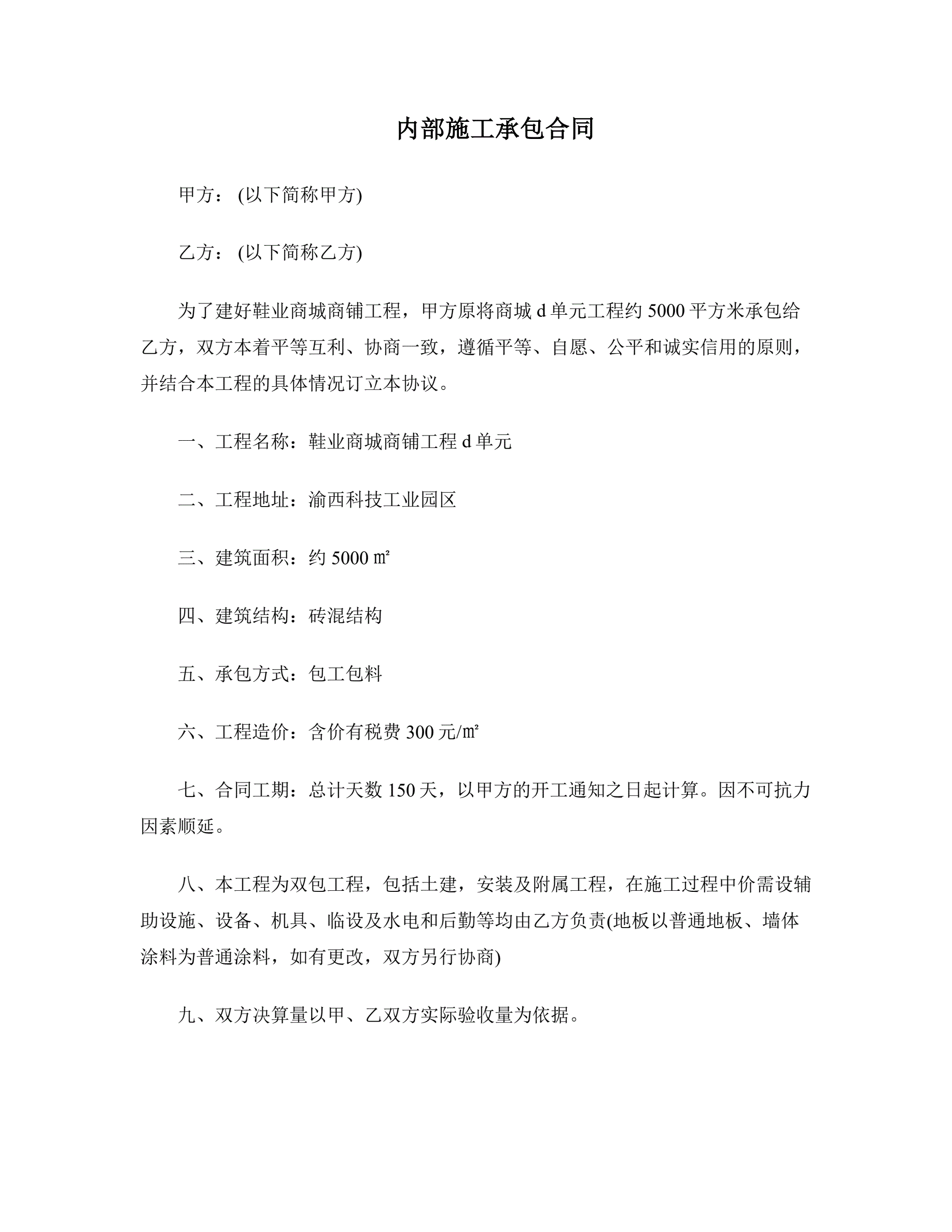 >内部施工承包合同