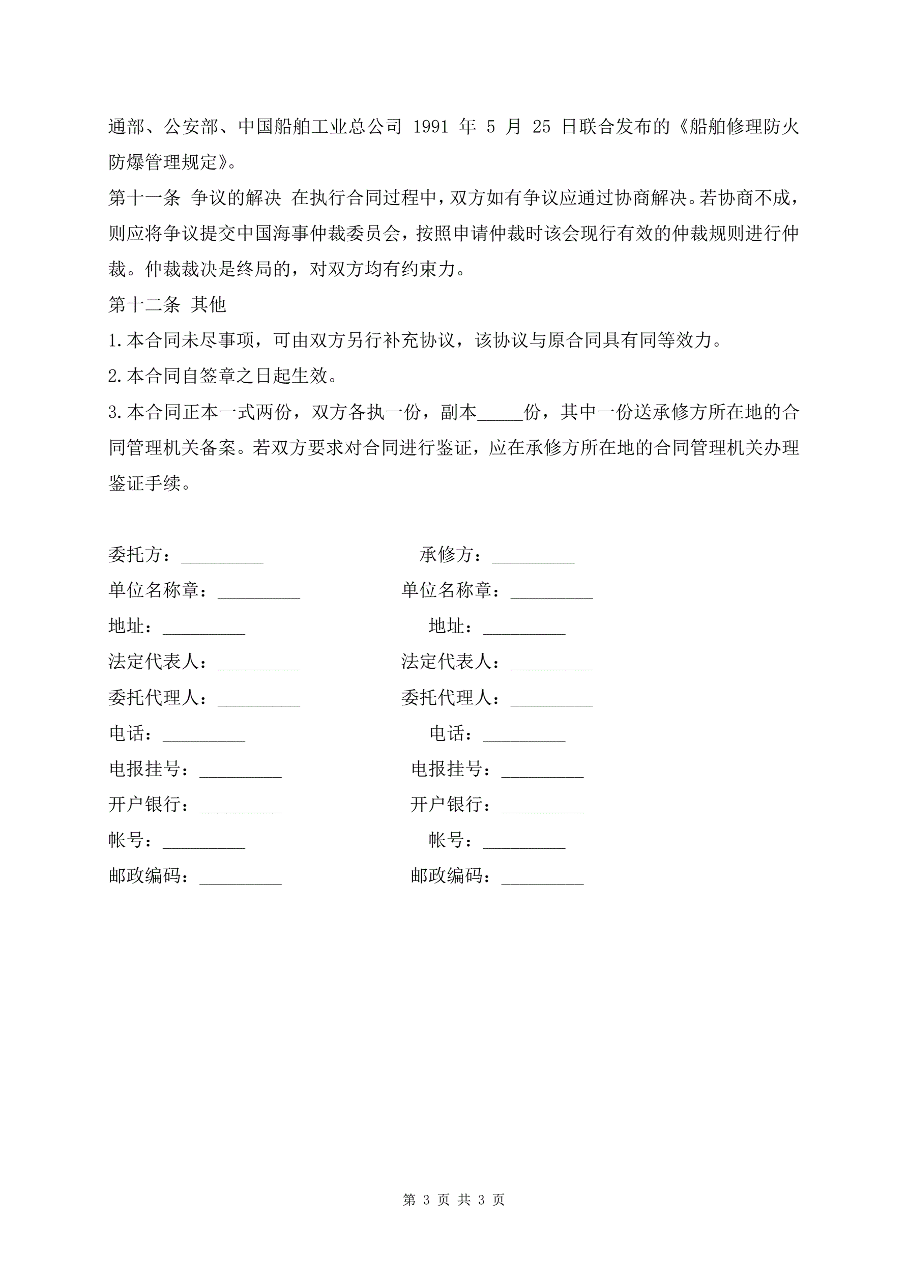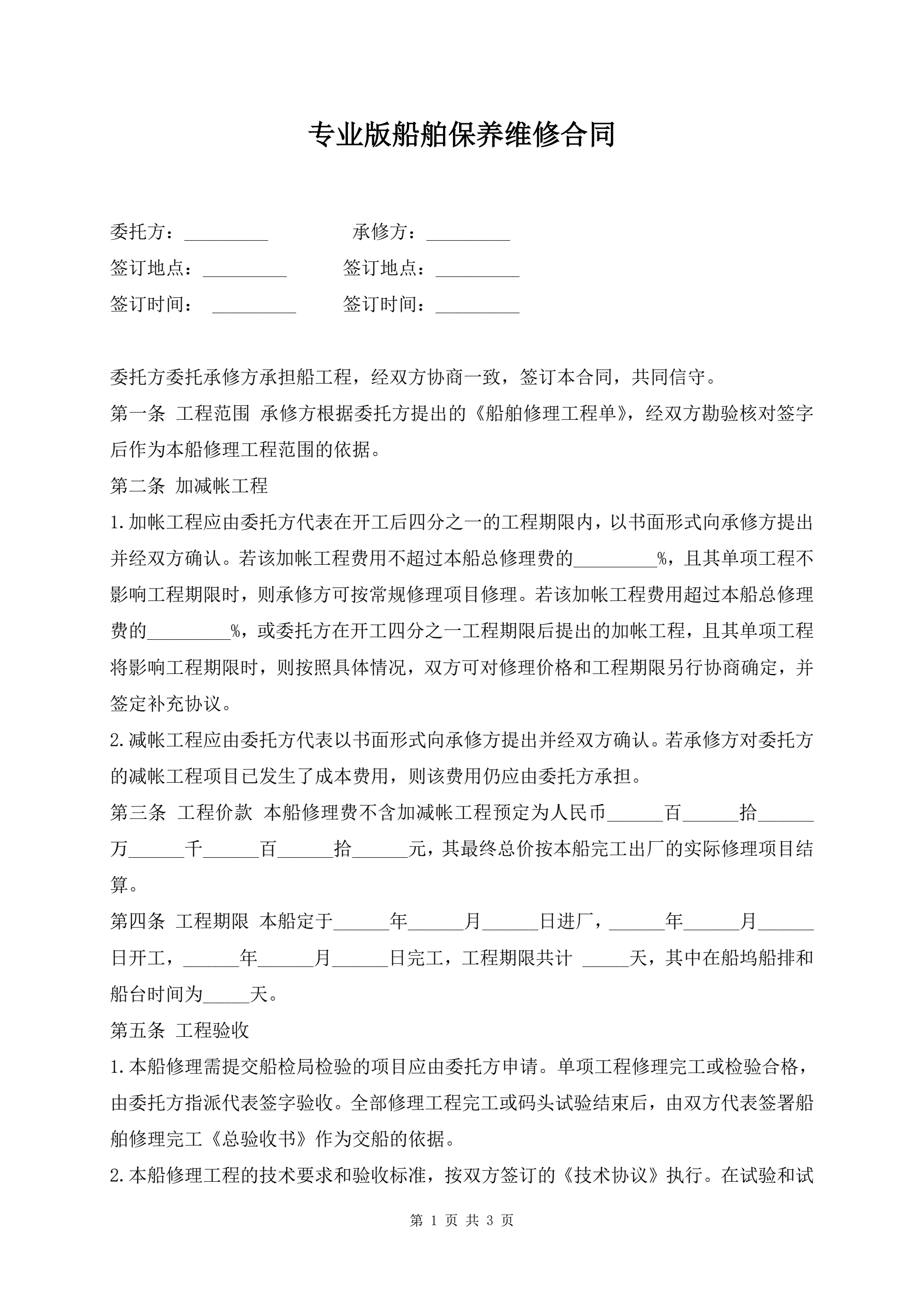 专业版船舶保养维修合同