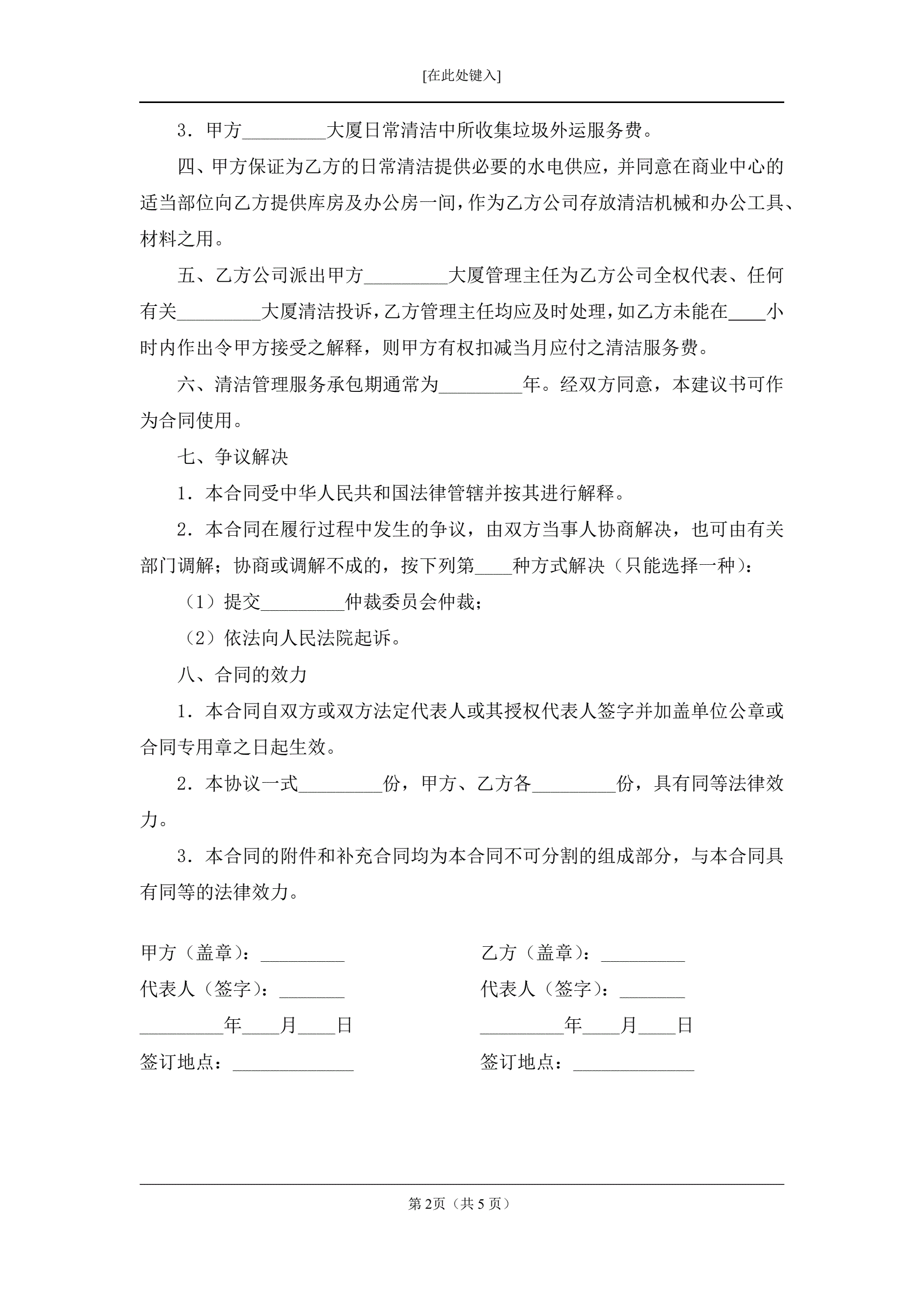>商厦日常保洁服务合同书