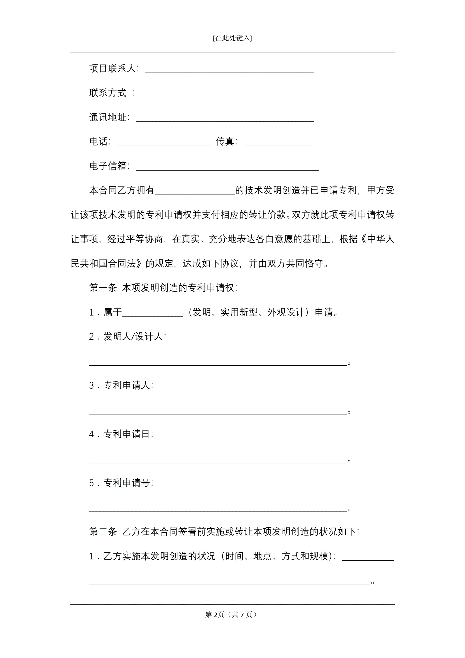 技术转让(专利申请权)合同