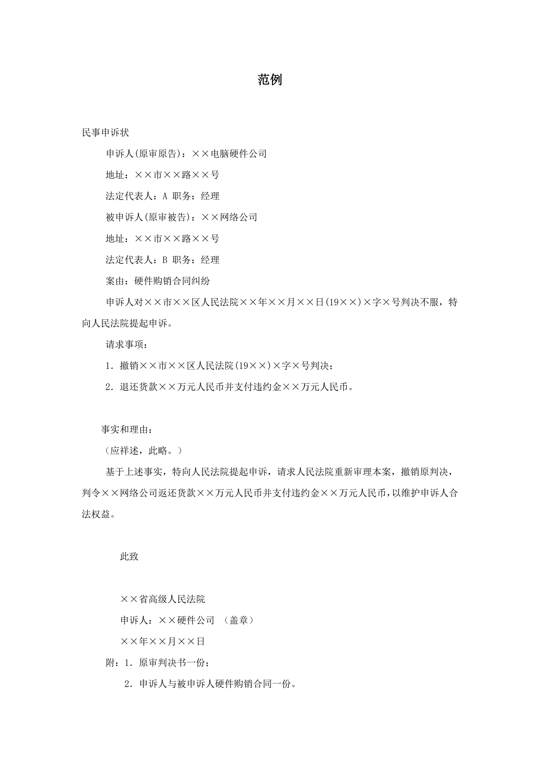 >民事申诉状范例