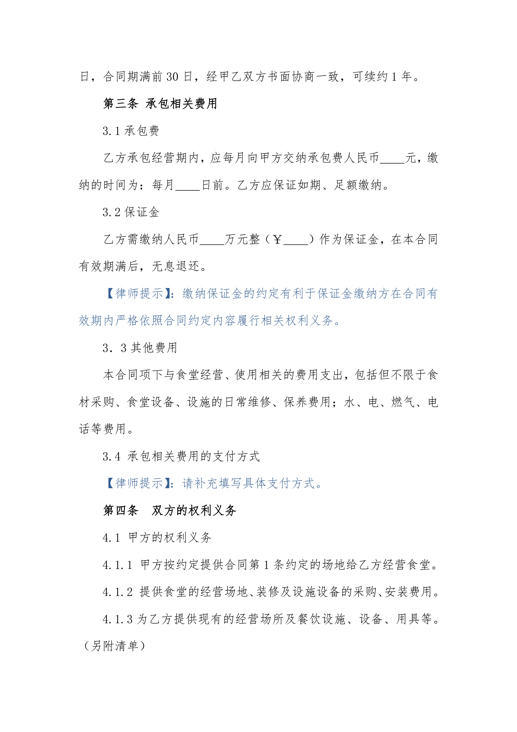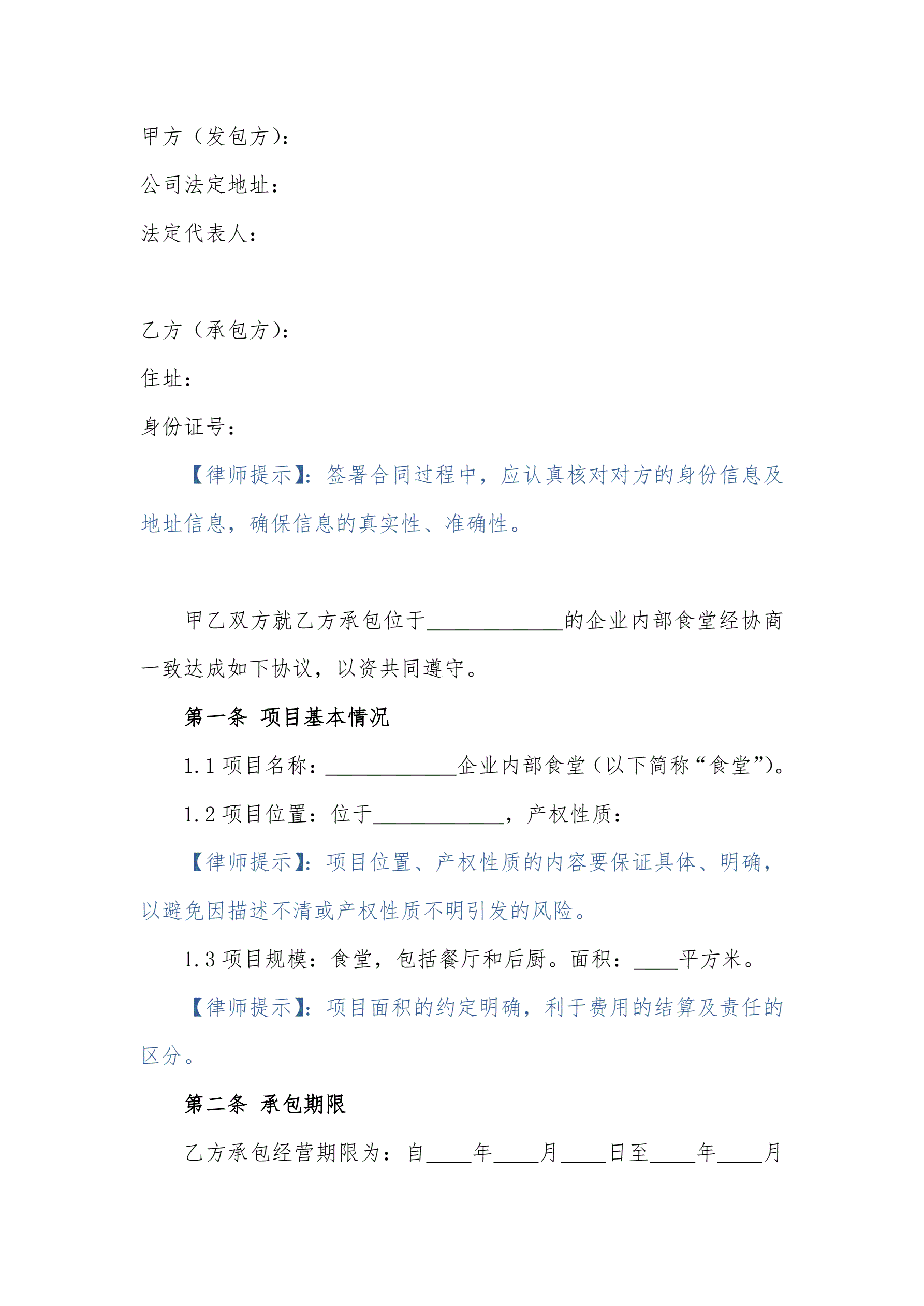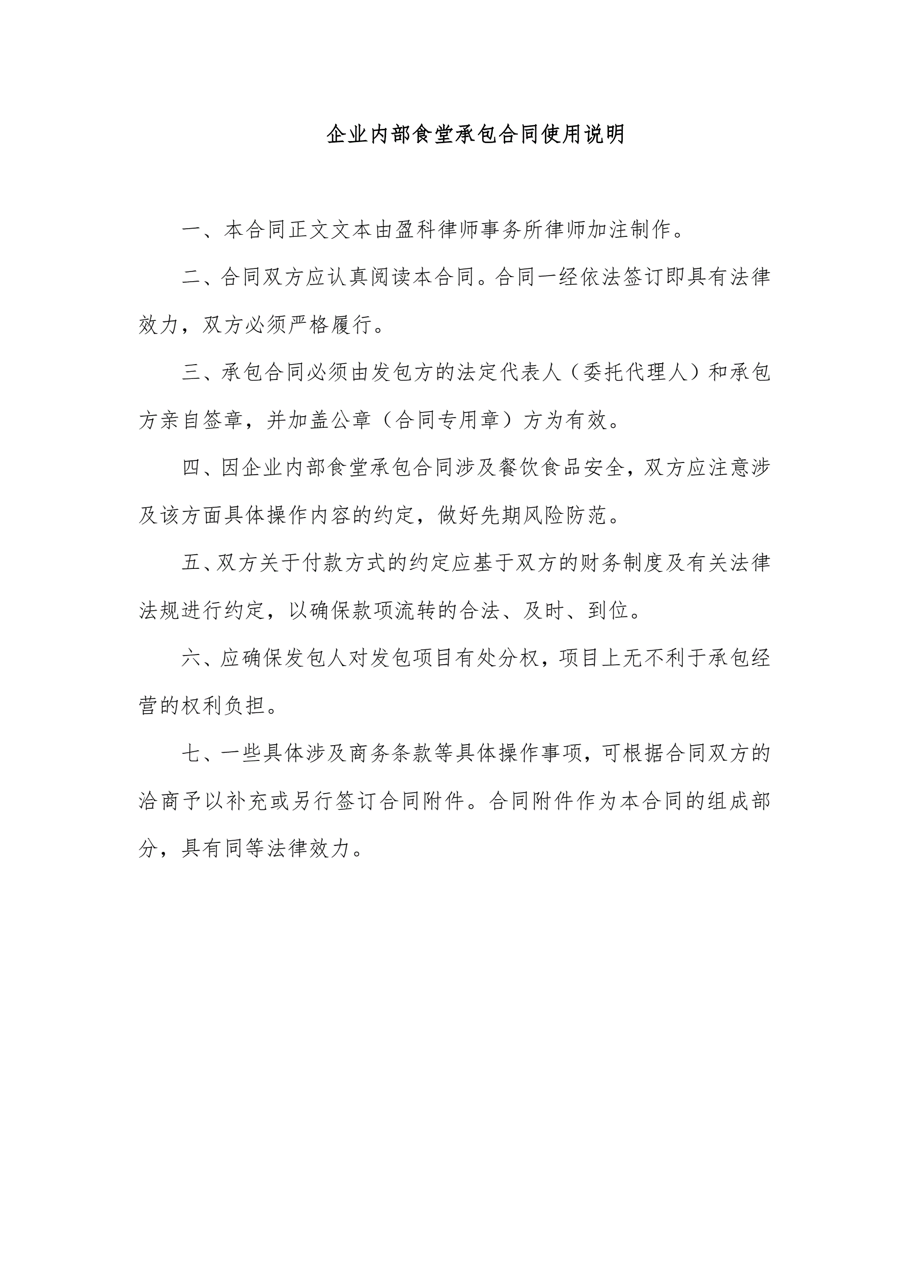 企业内部食堂承包合同