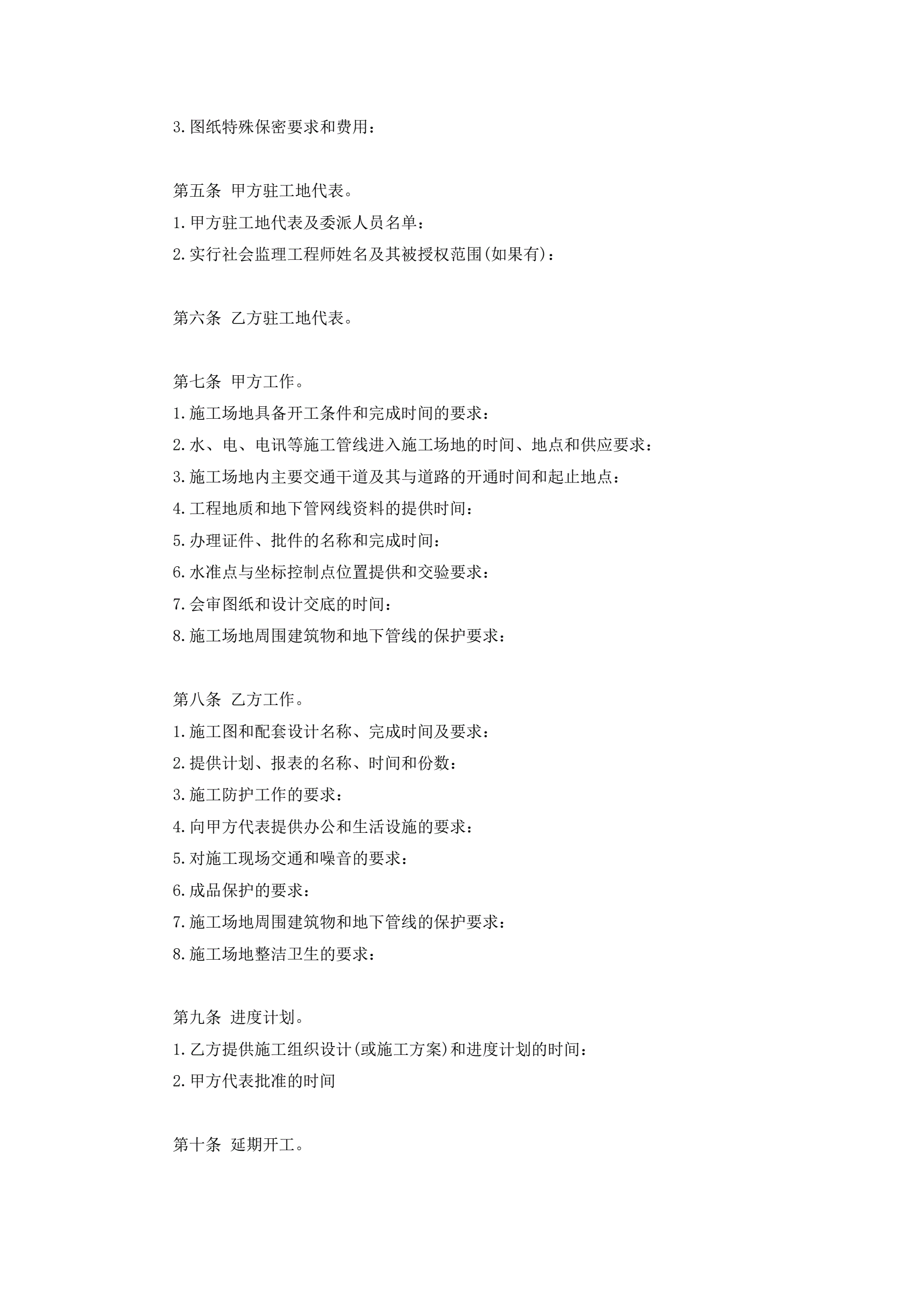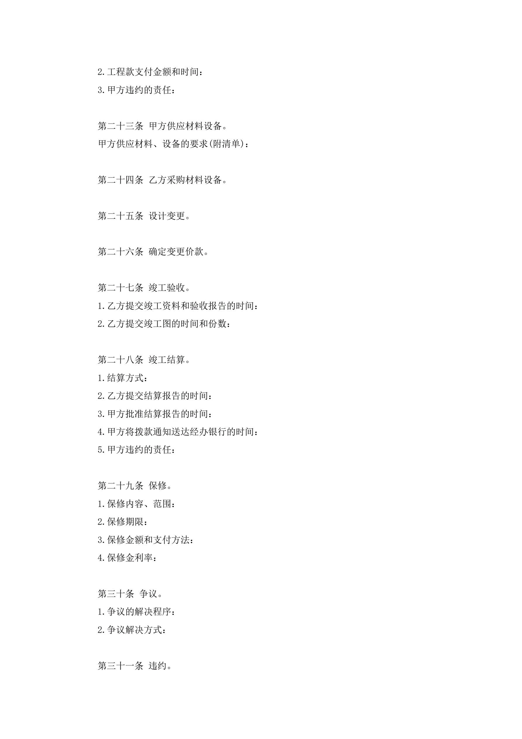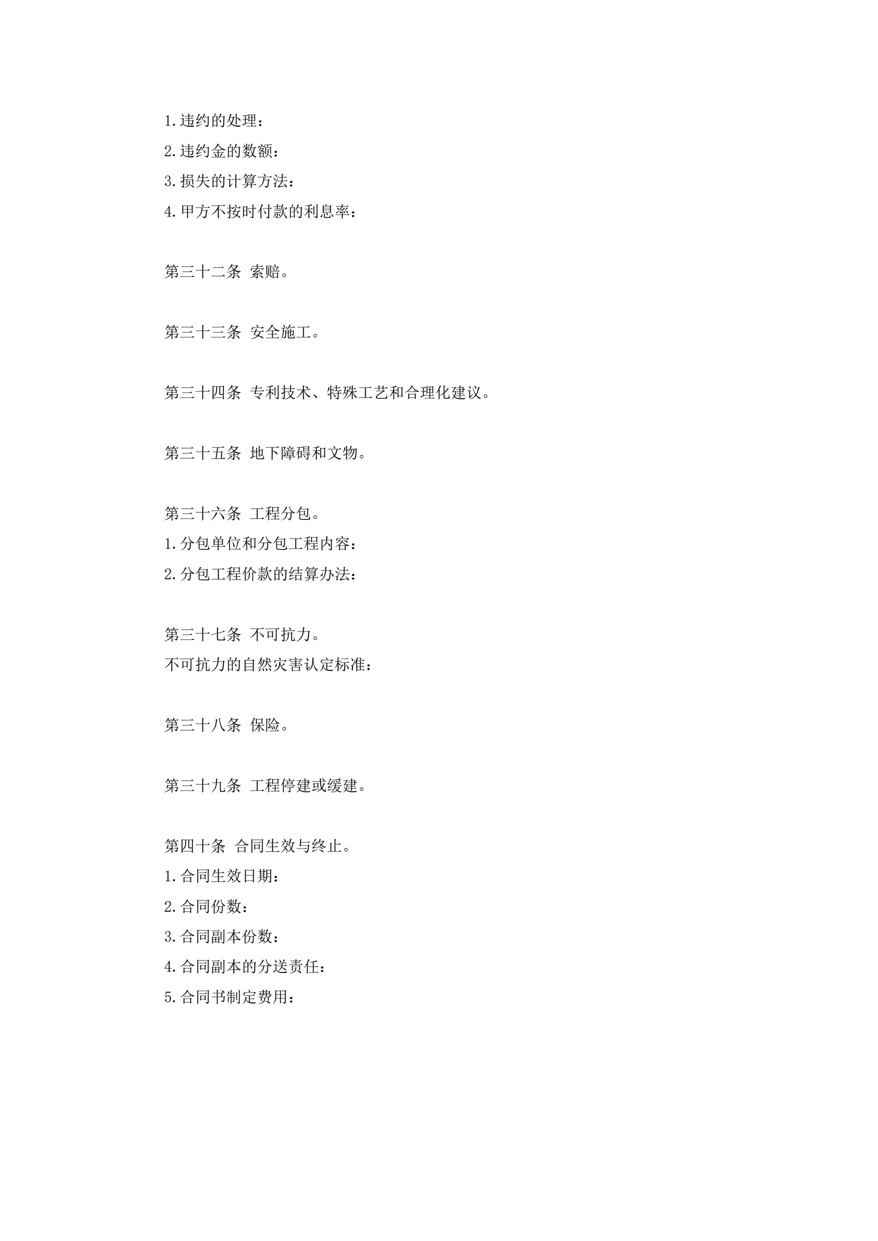 建设工程施工合同协议条款