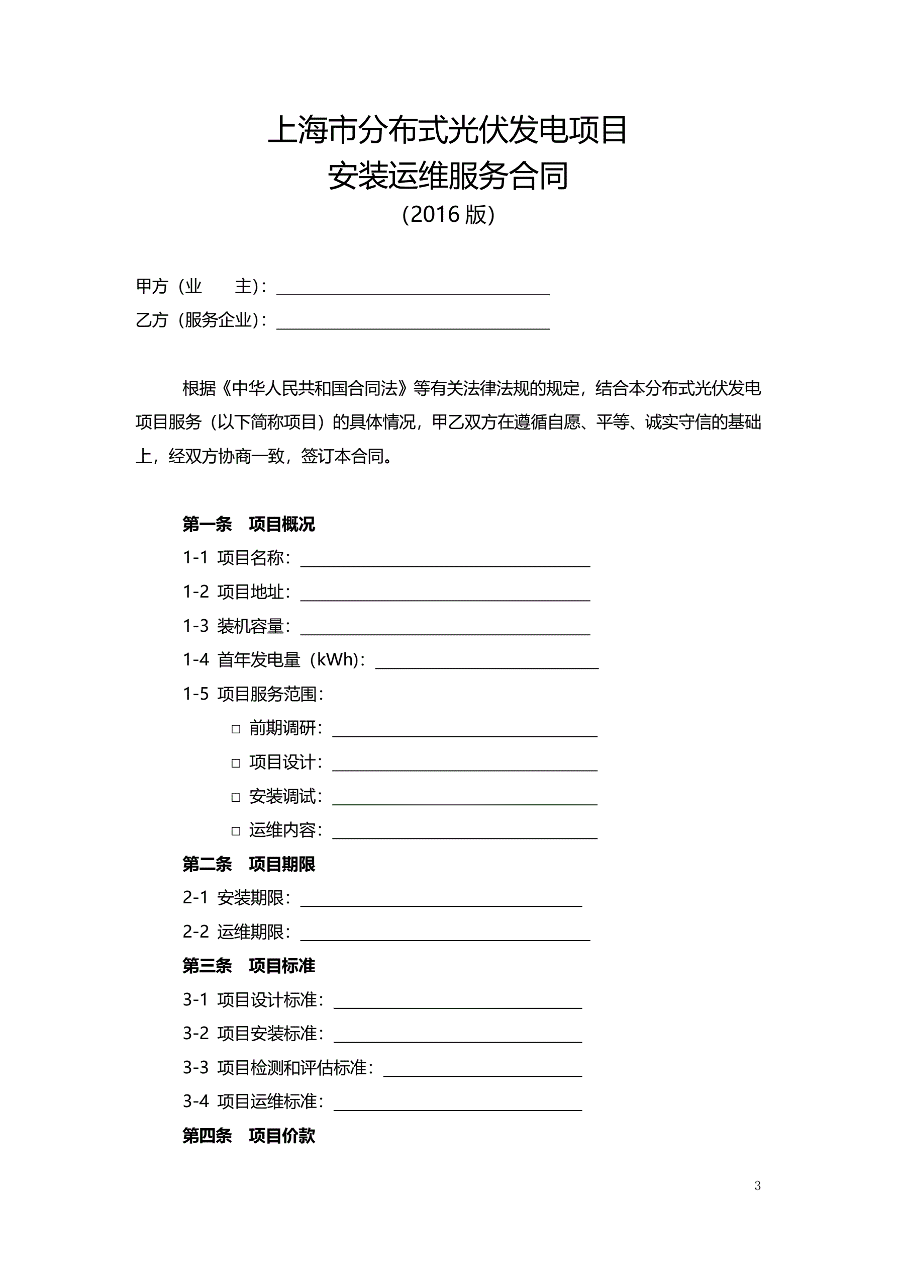 上海市分布式光伏发电项目安装运维服务合同2016版