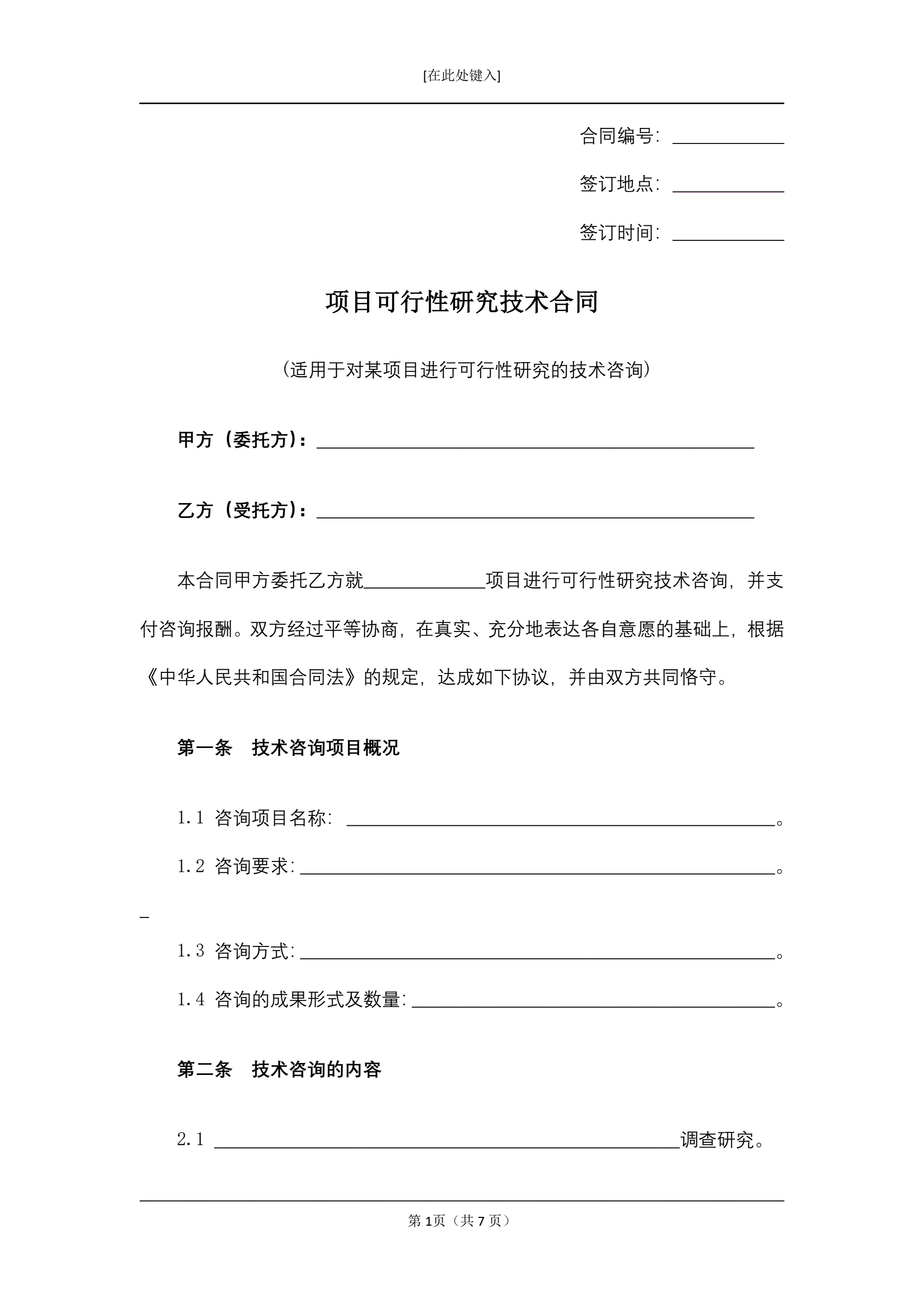 项目可行性研究技术合同