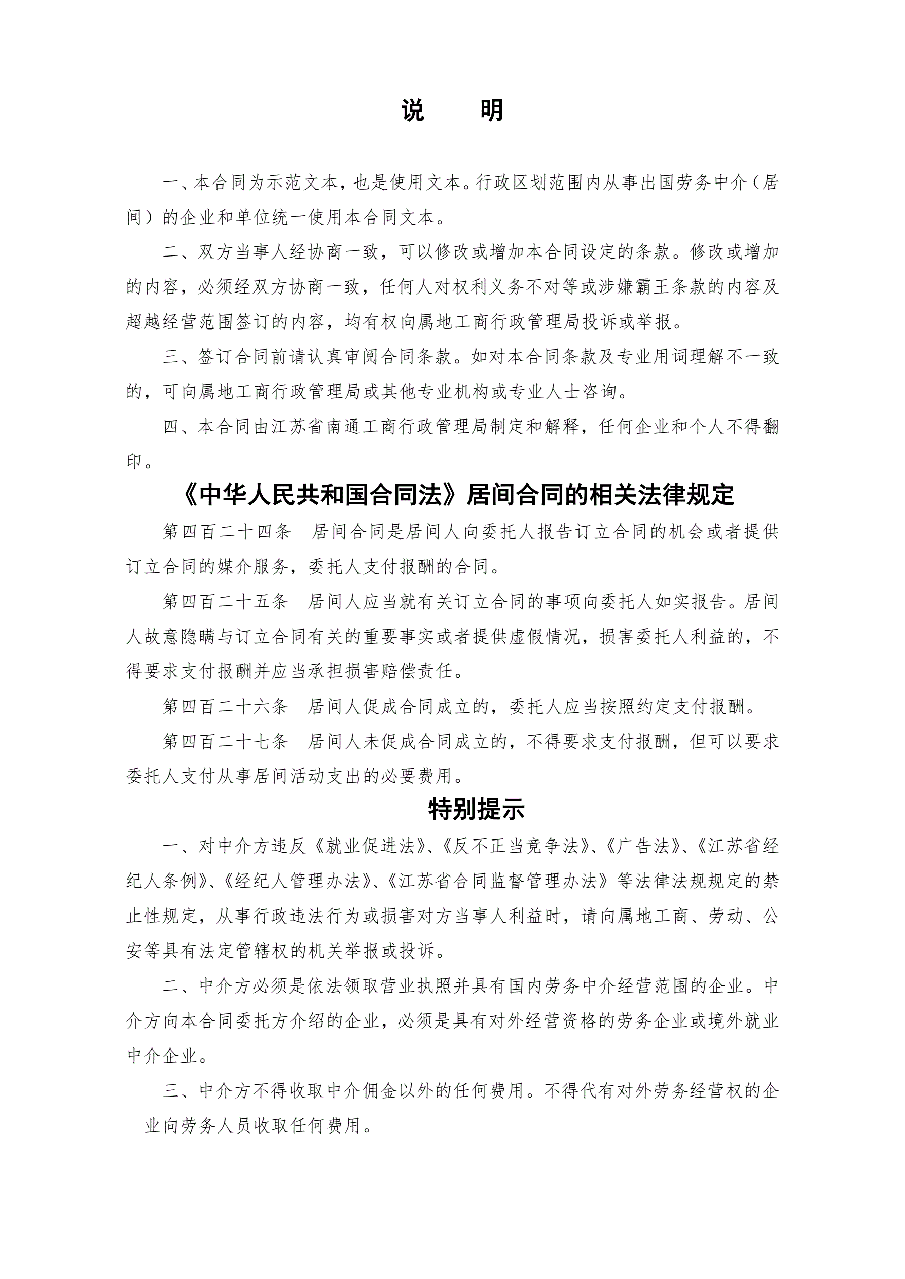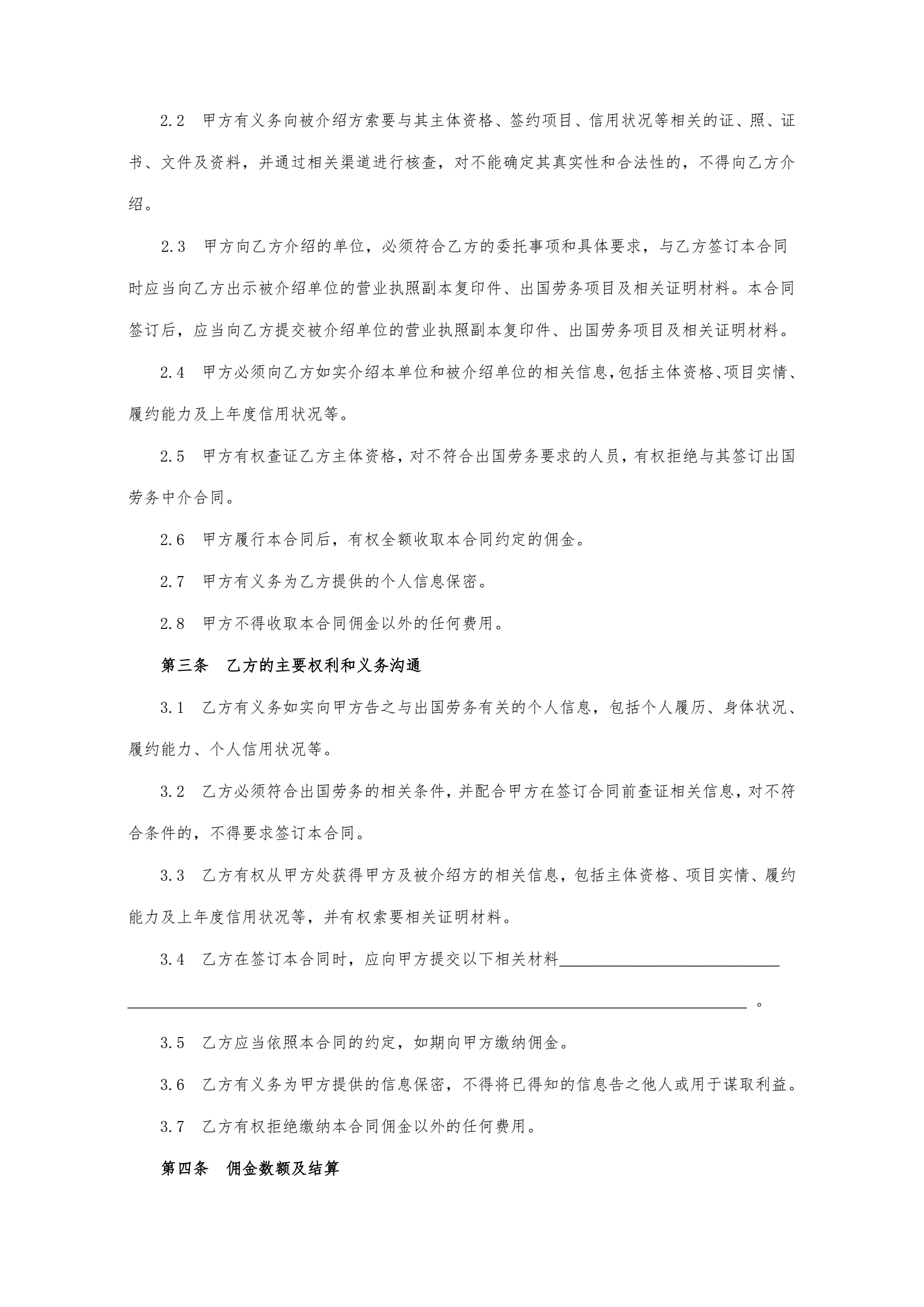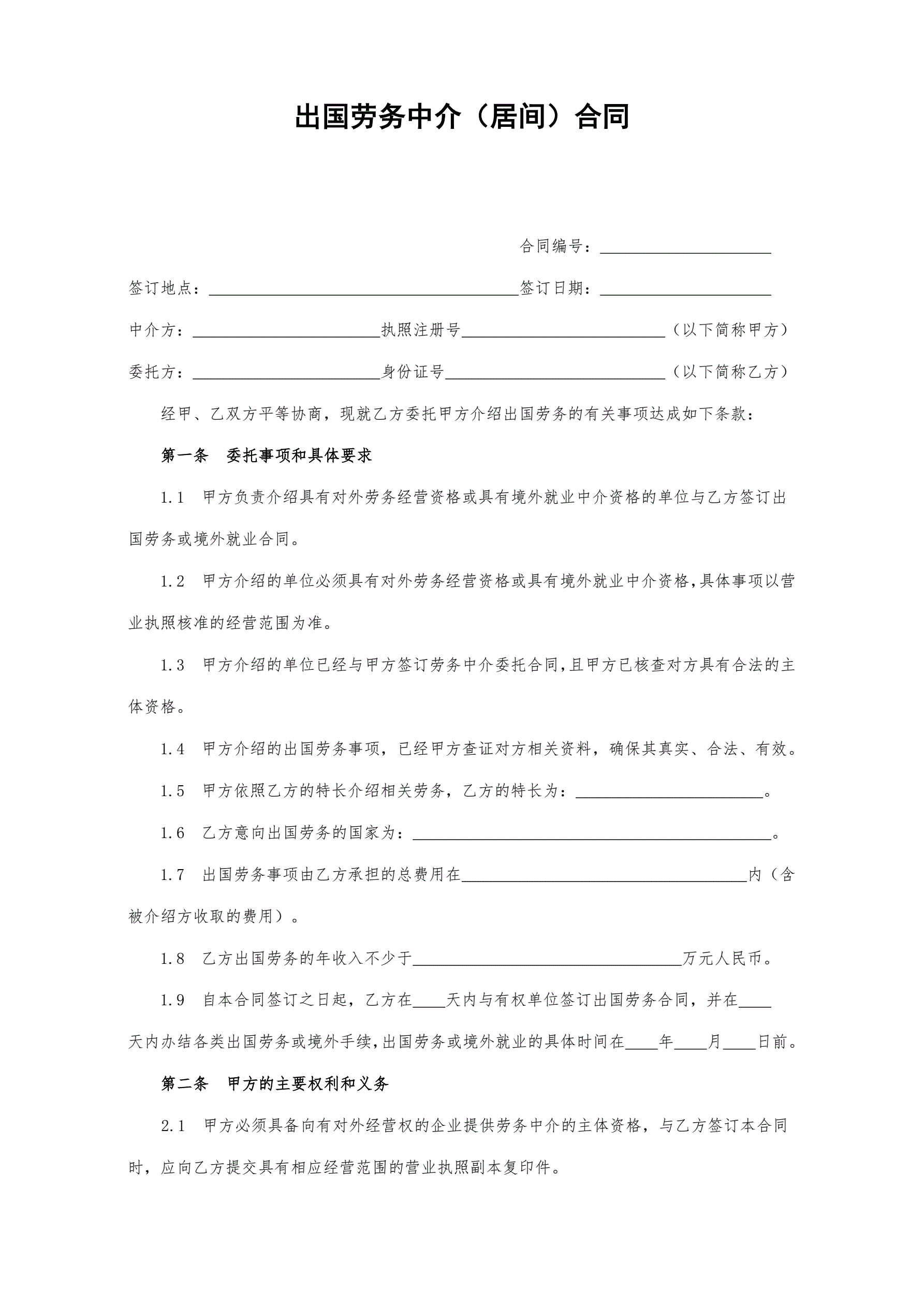 合同名称:出国劳务中介(居间)合同