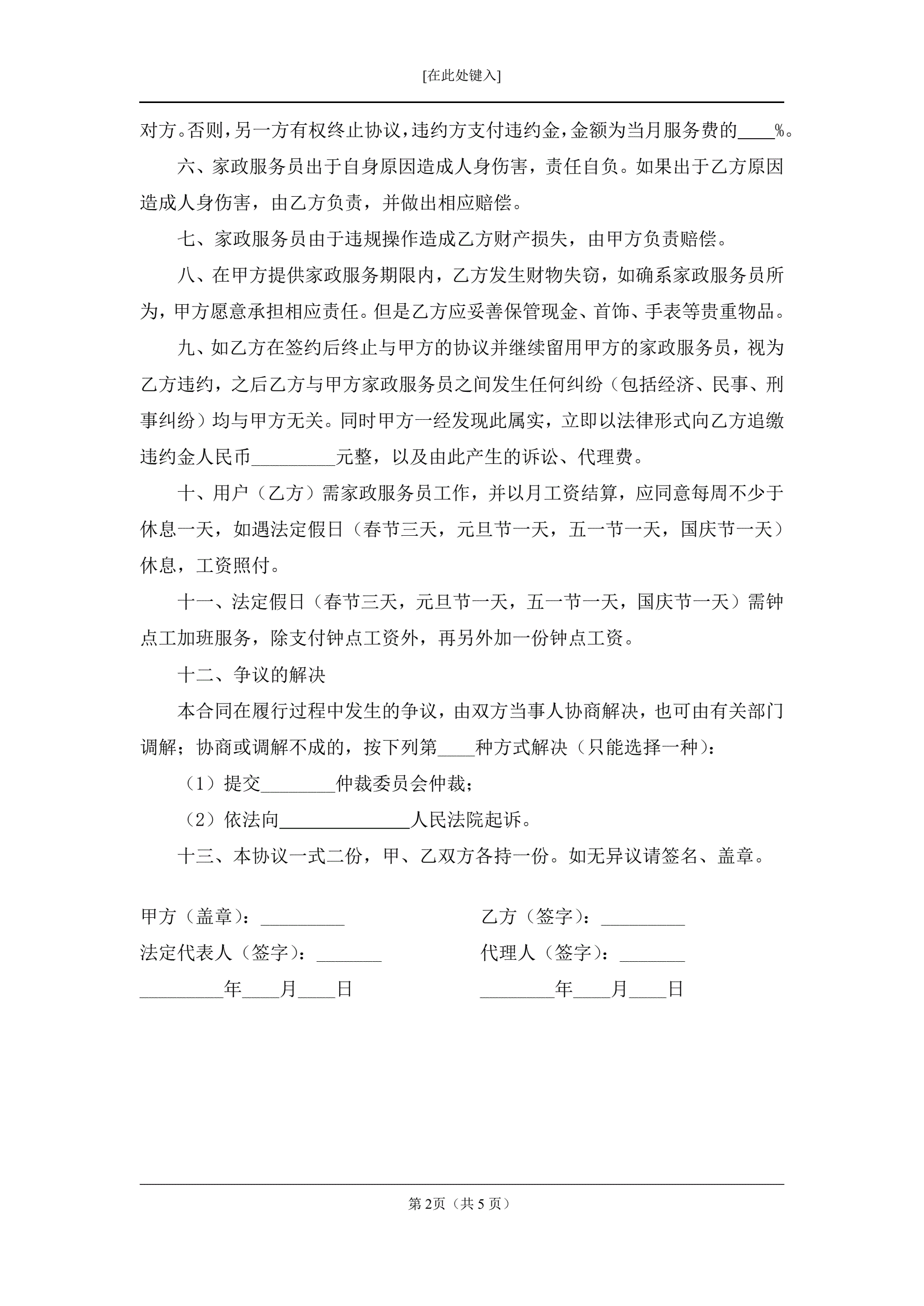 保姆合同