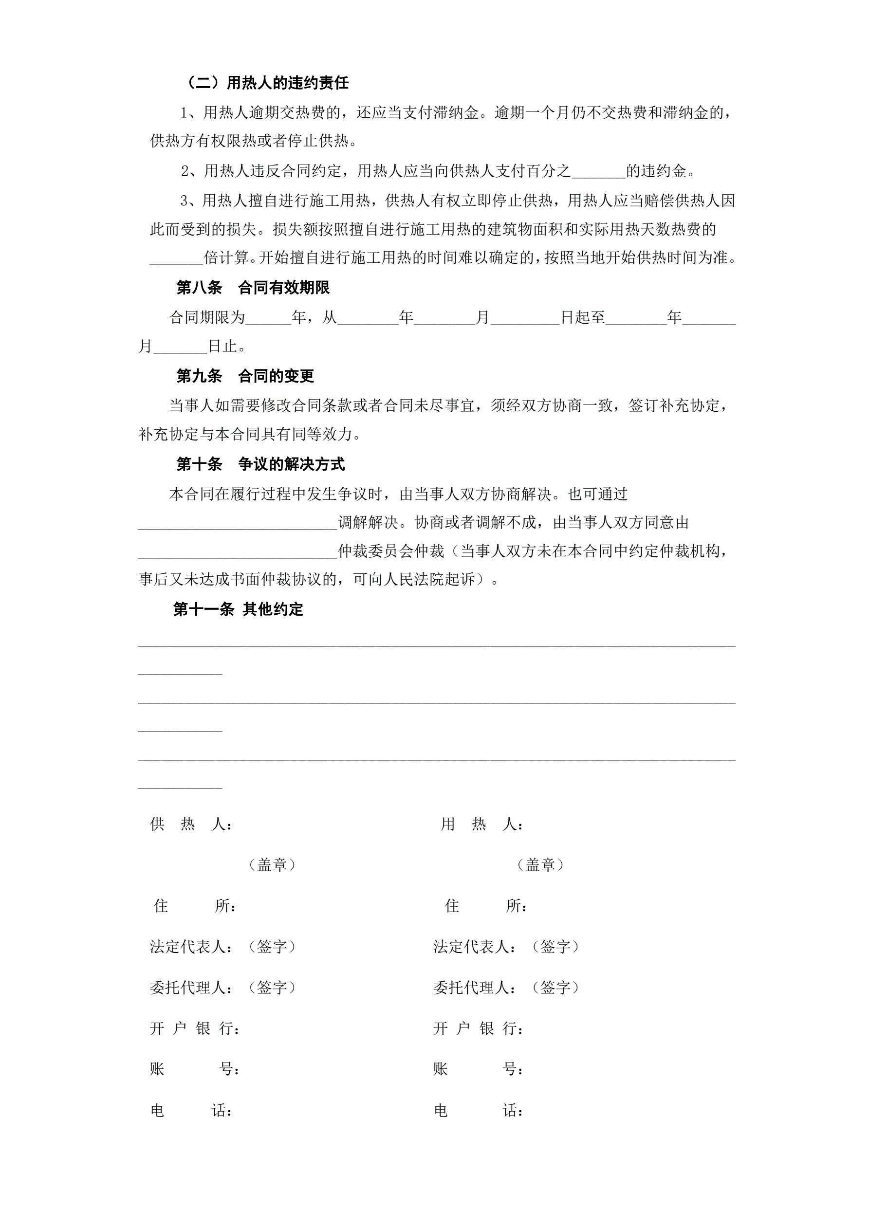 《城市供用热力合同》[示范文本]