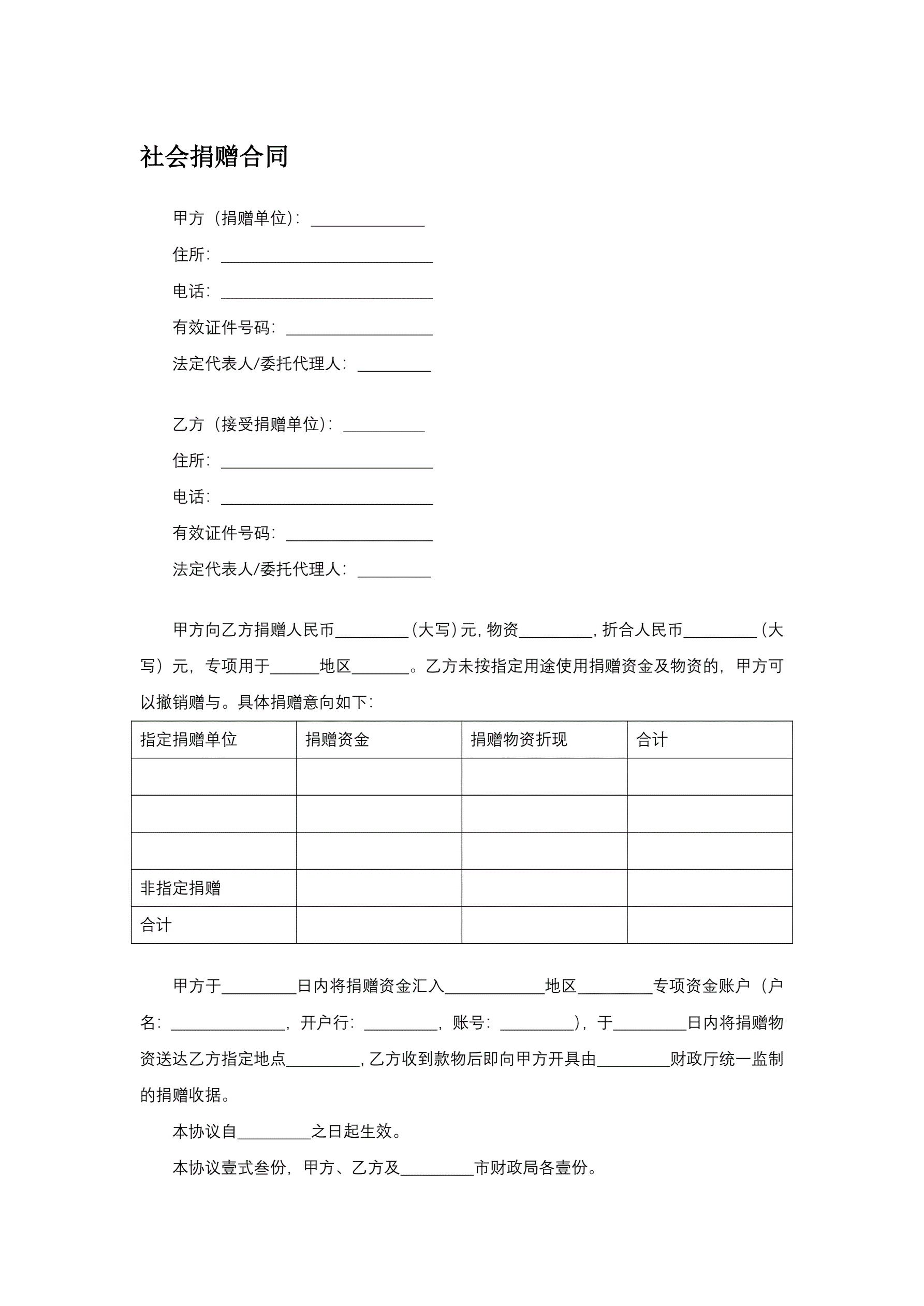 社会捐赠合同