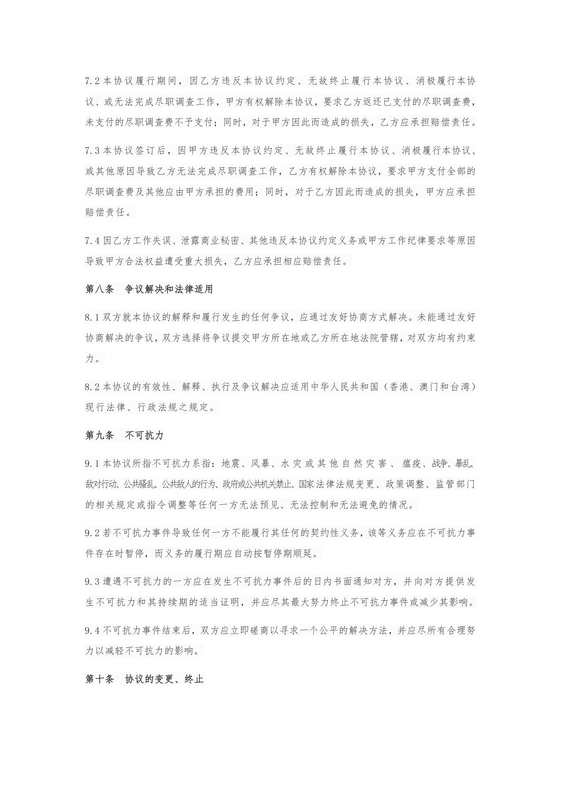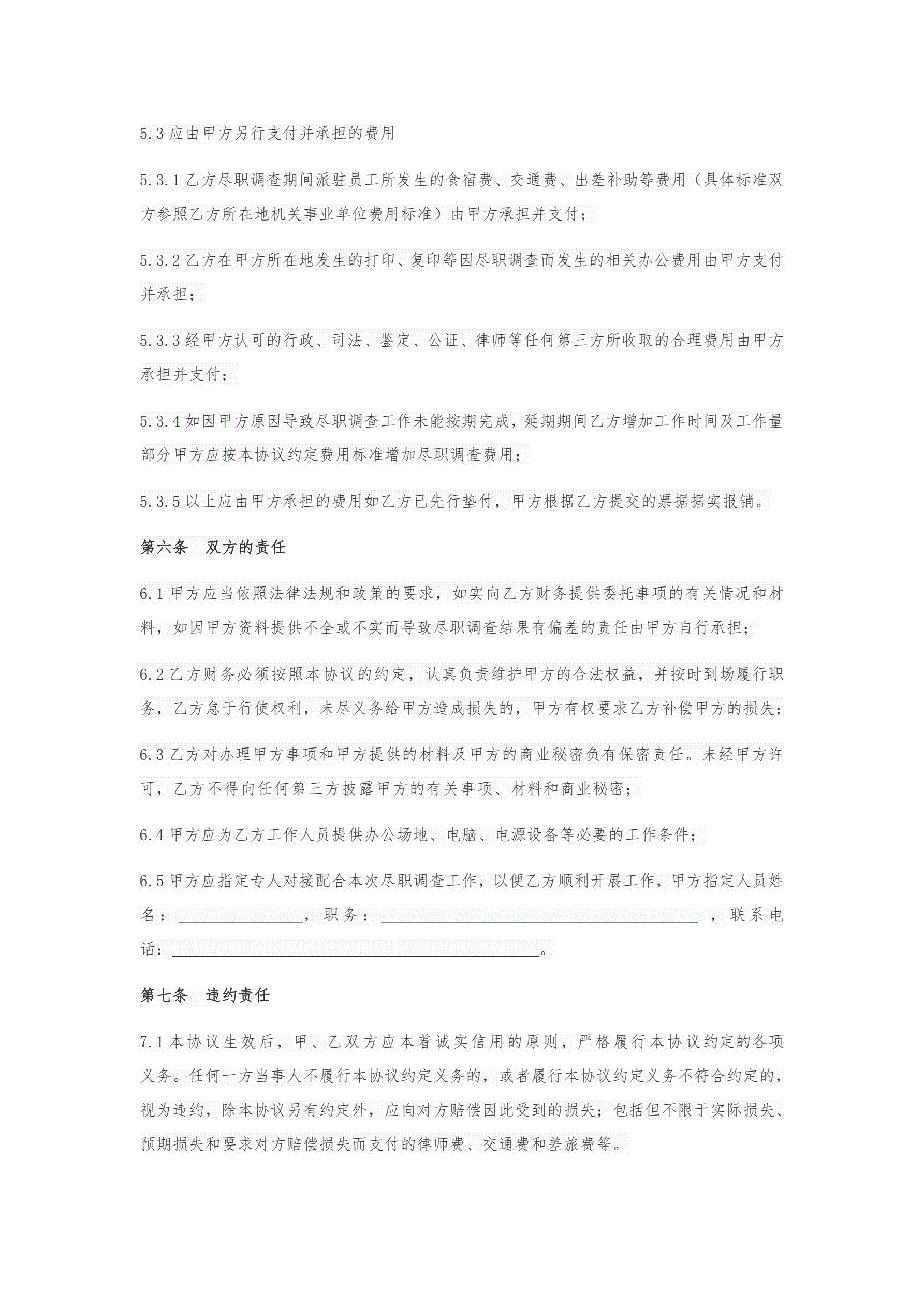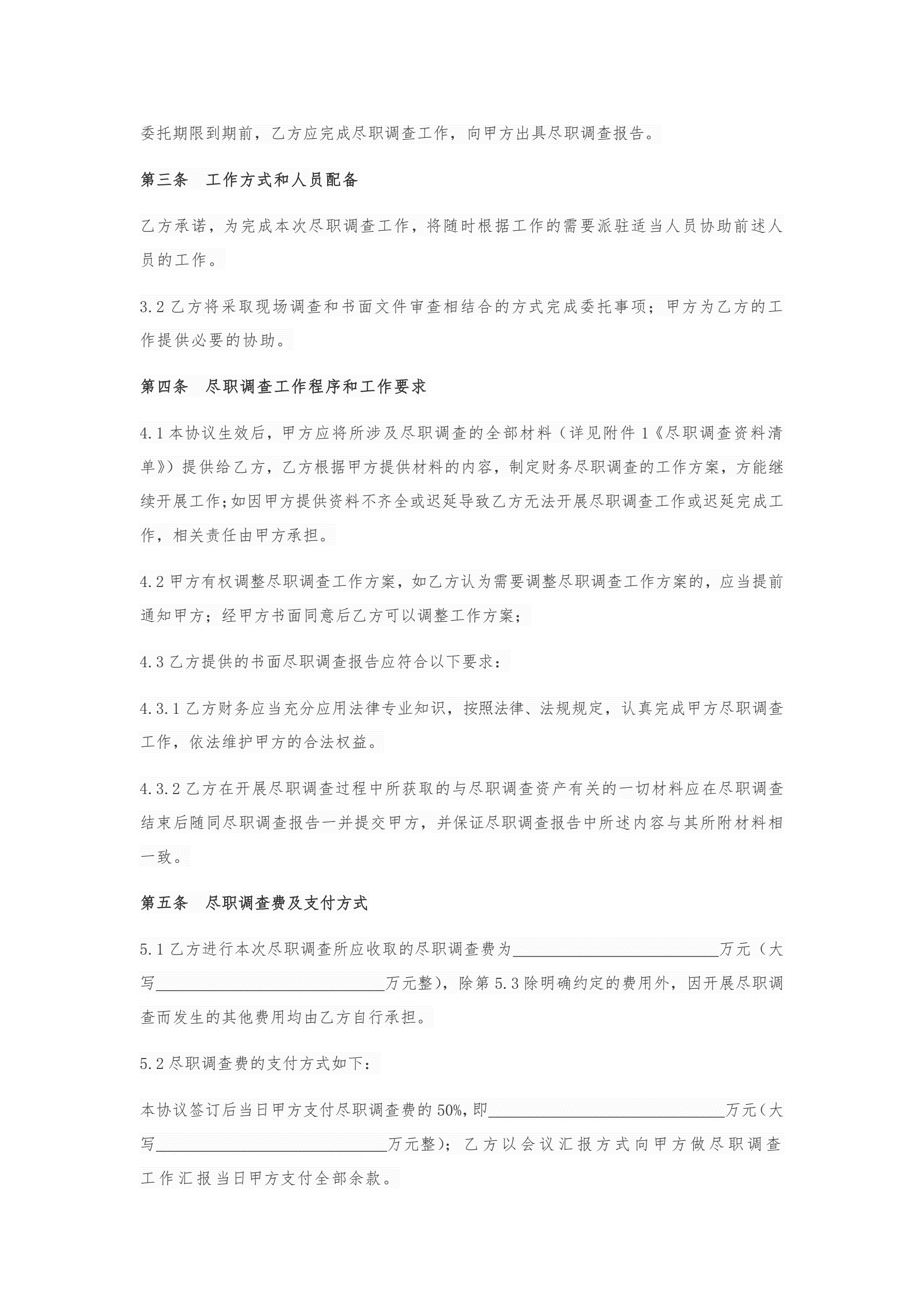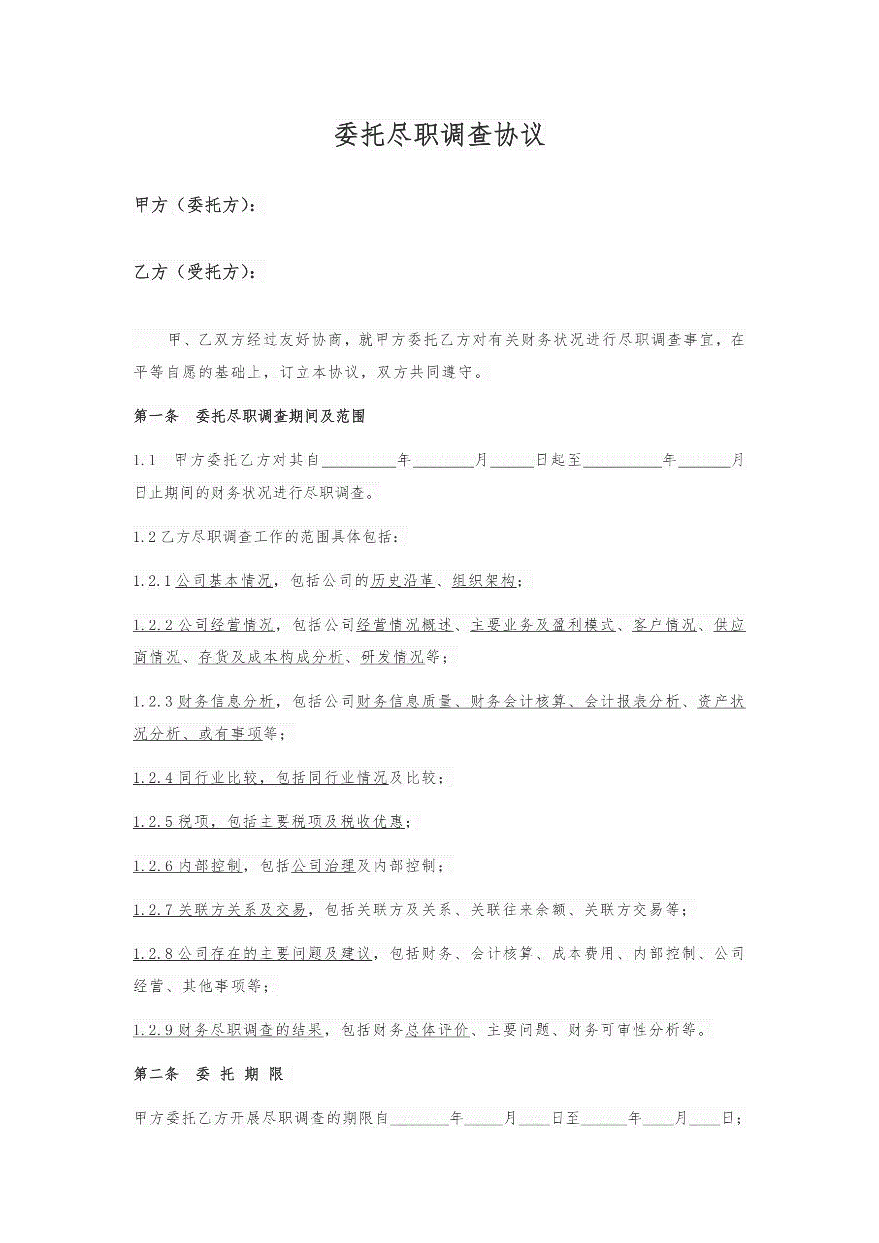 尽职调查协议模板