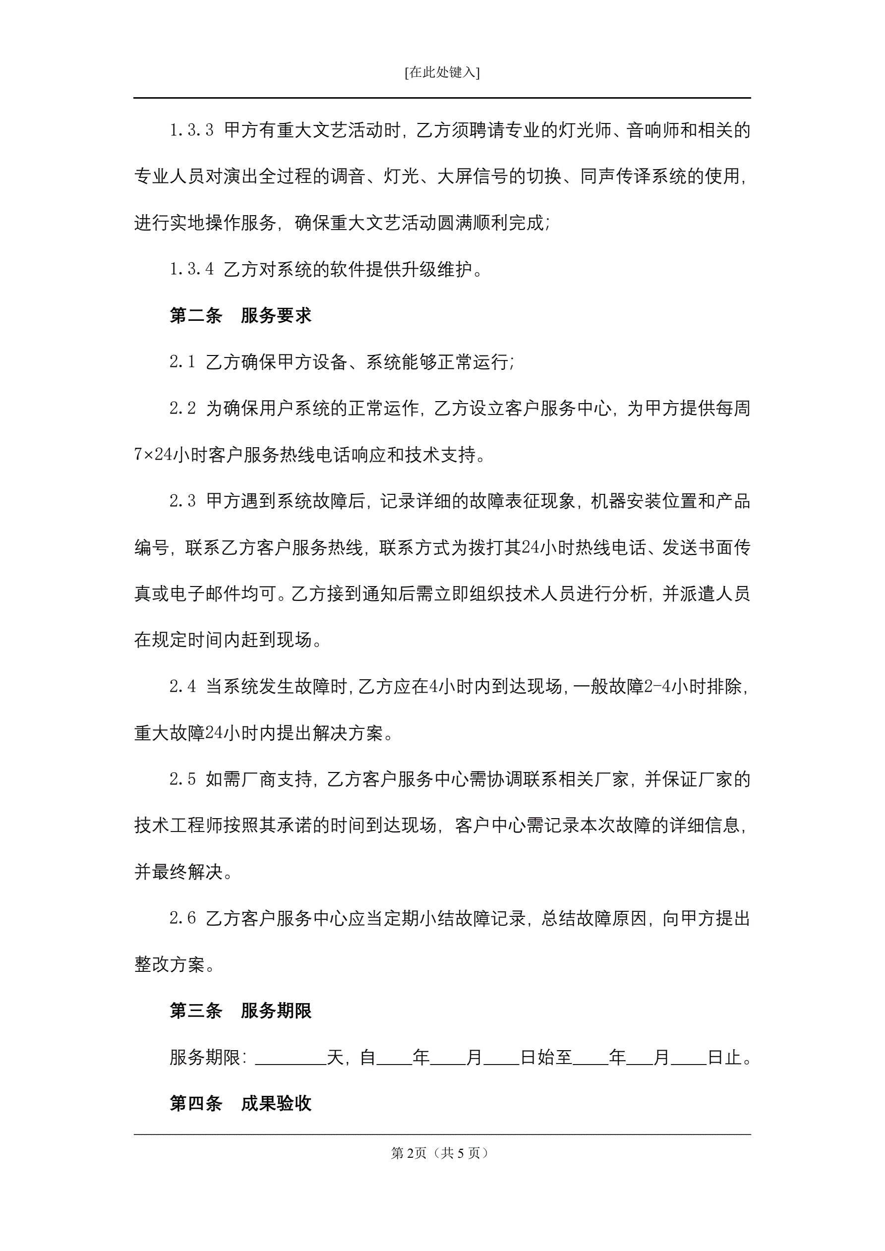 合同名称:舞台灯光、扩声、同声传译服务合同