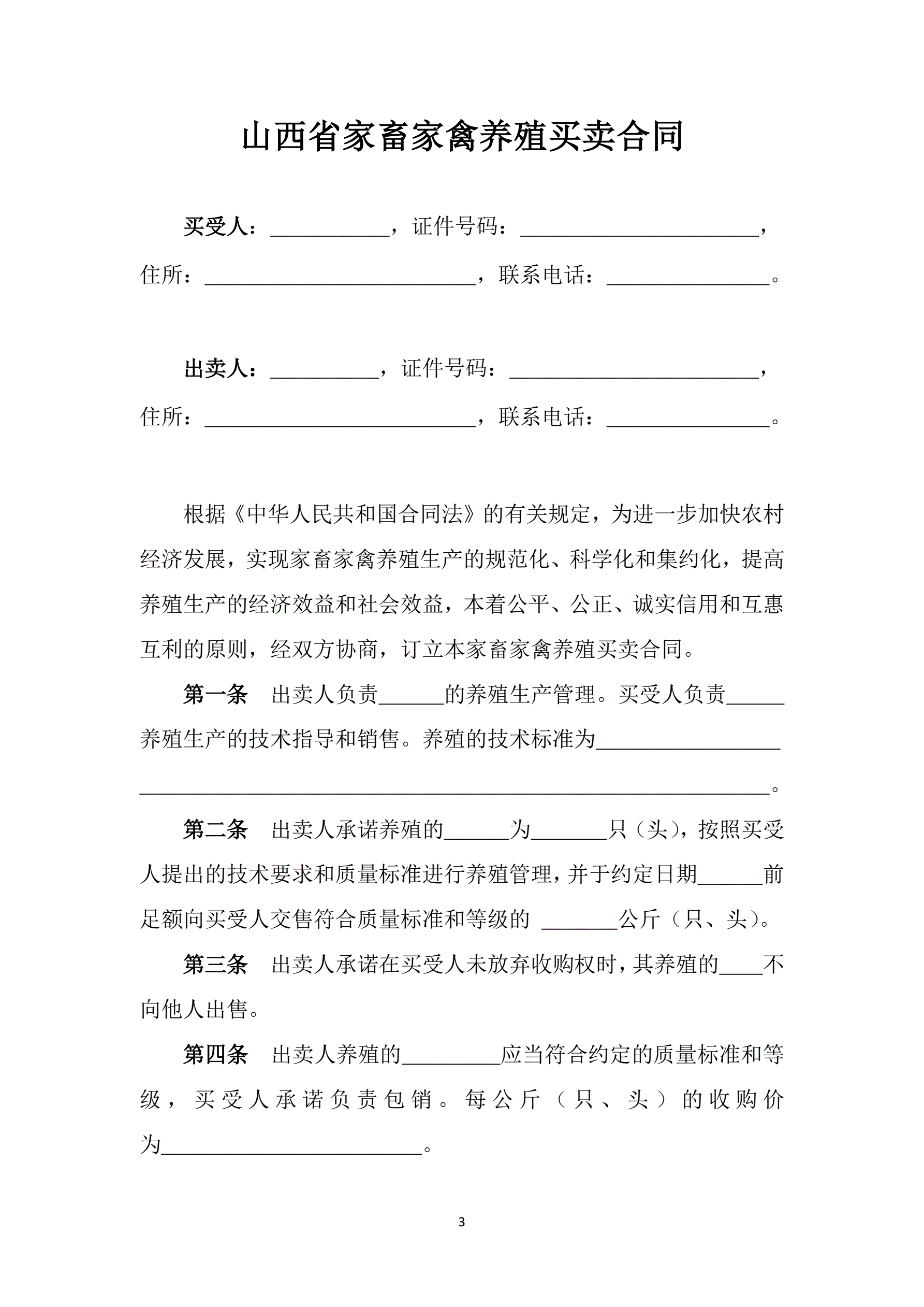 >修订山西省家畜家禽养殖买卖合同JF-07