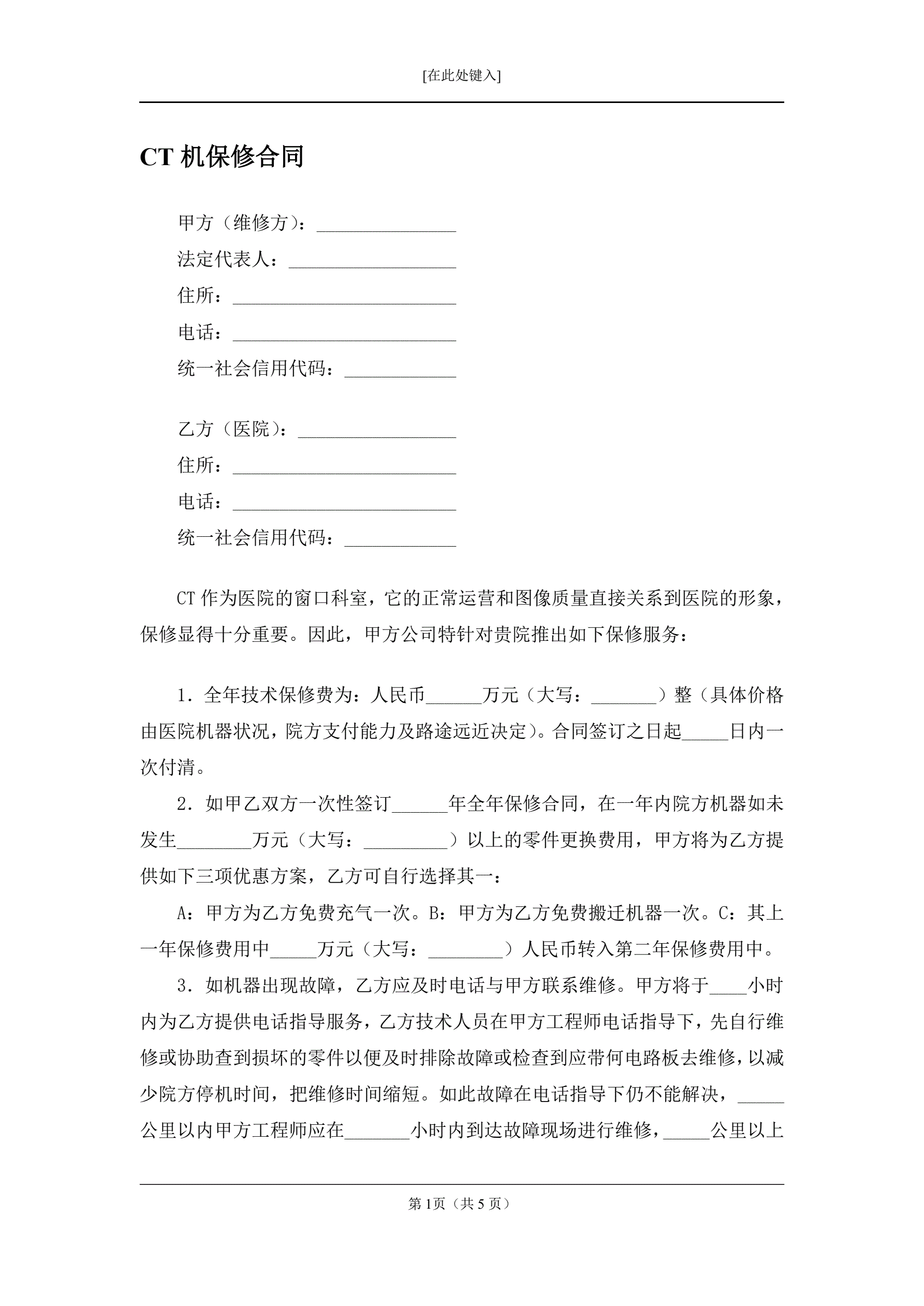 >CT机保修合同