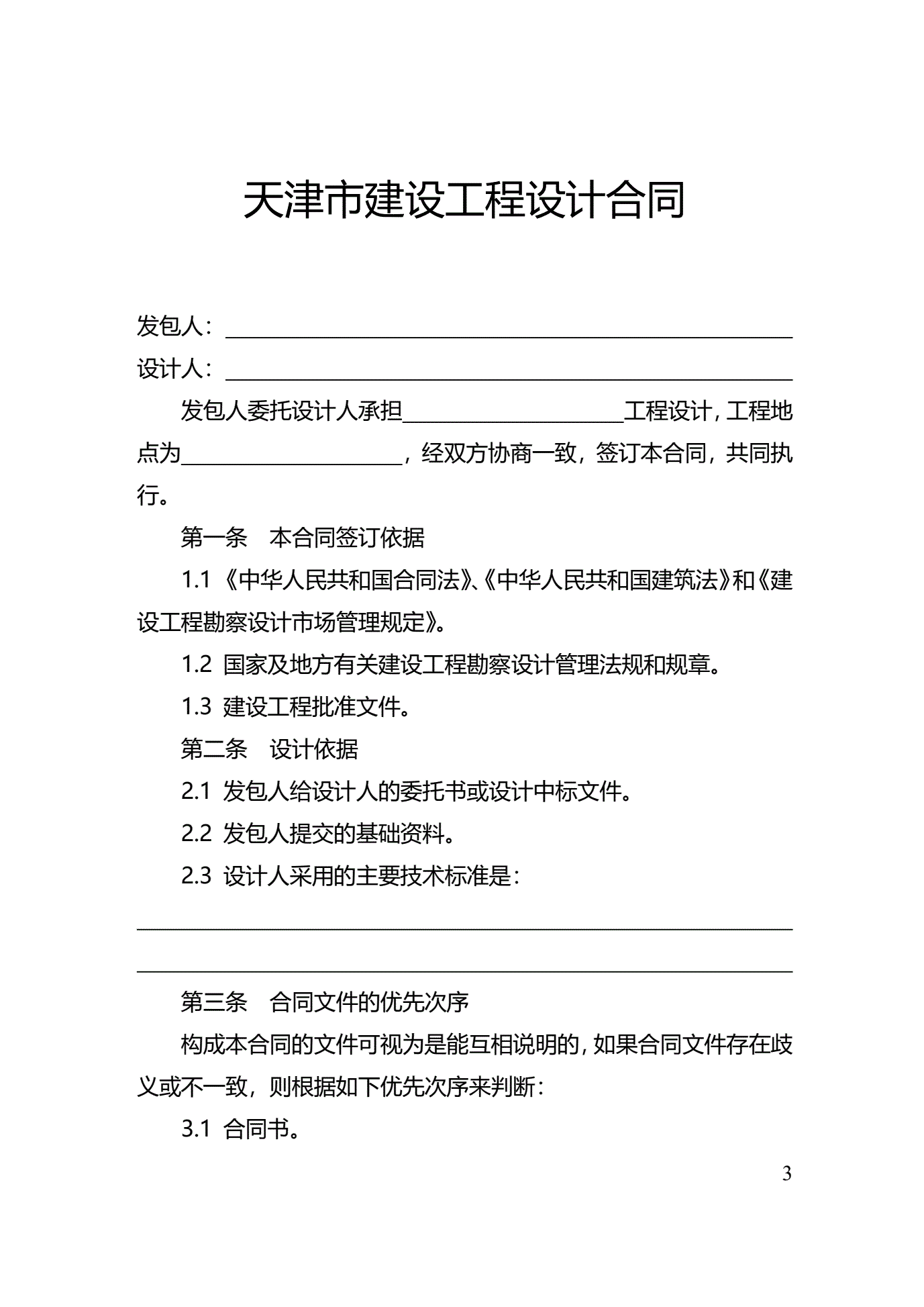 >天津市建设工程设计合同