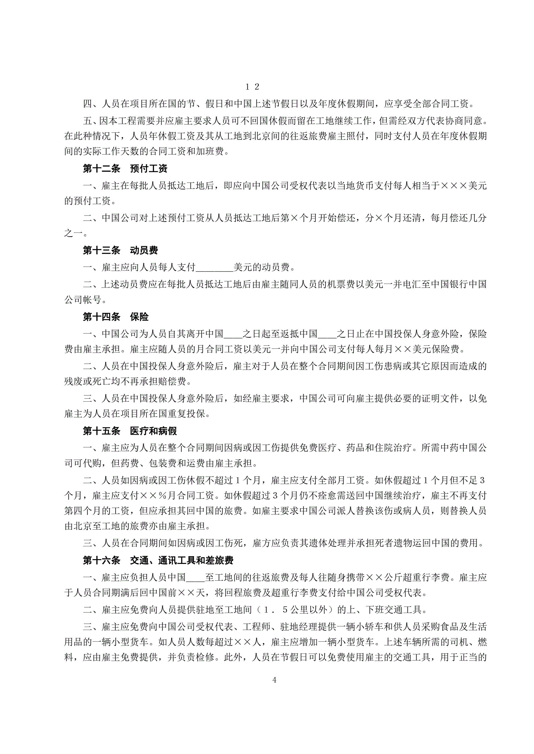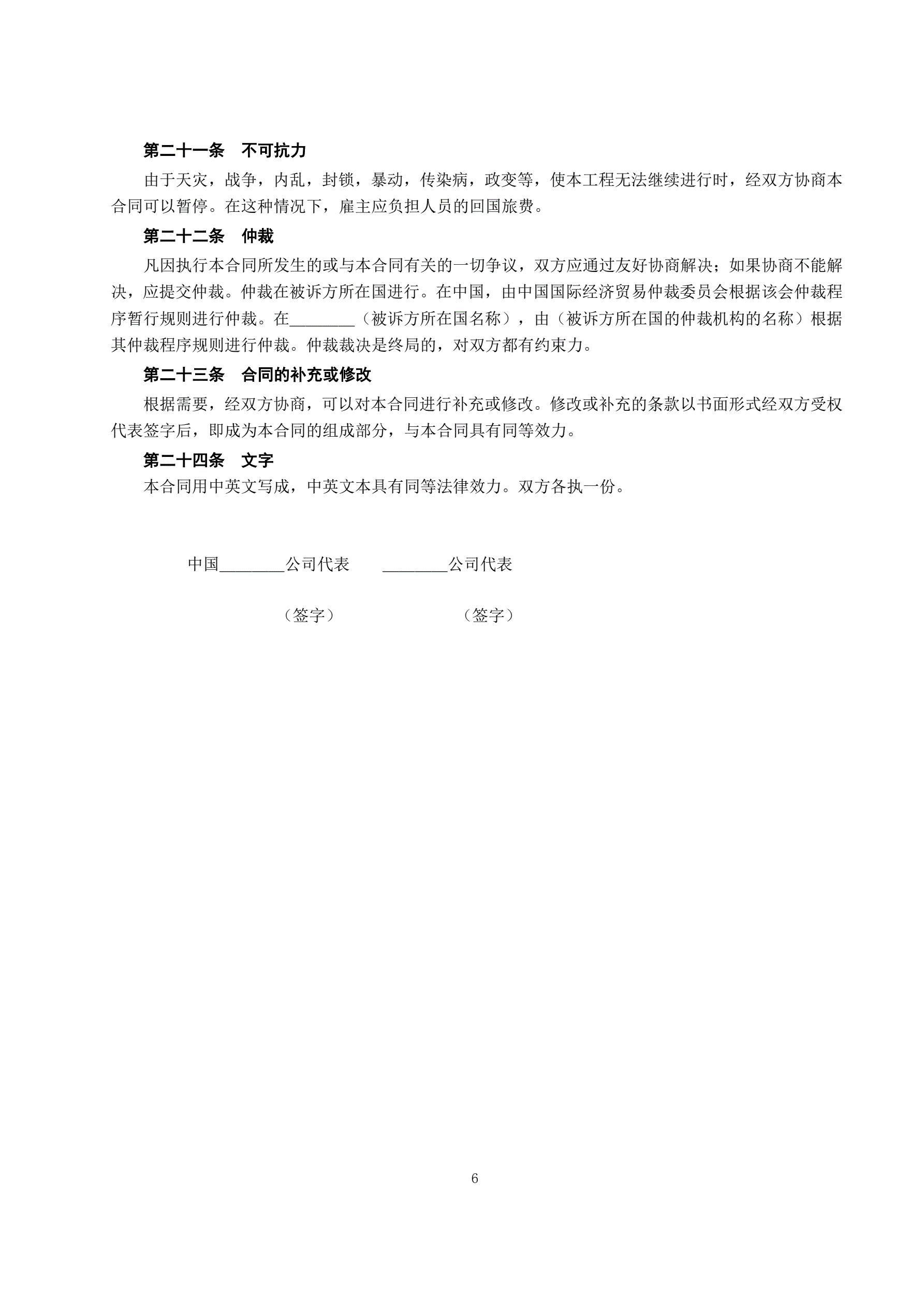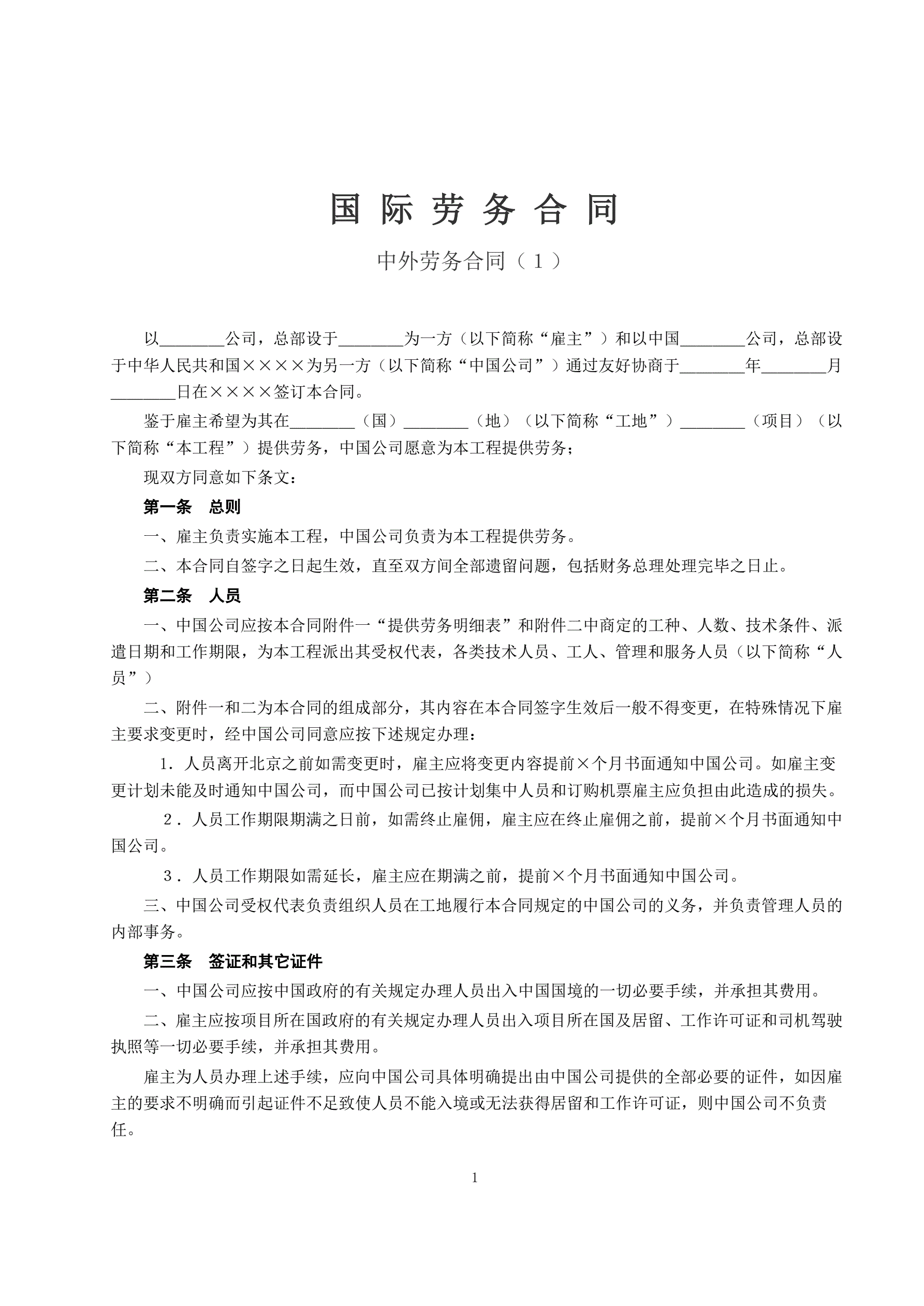 中外劳务合同(1)