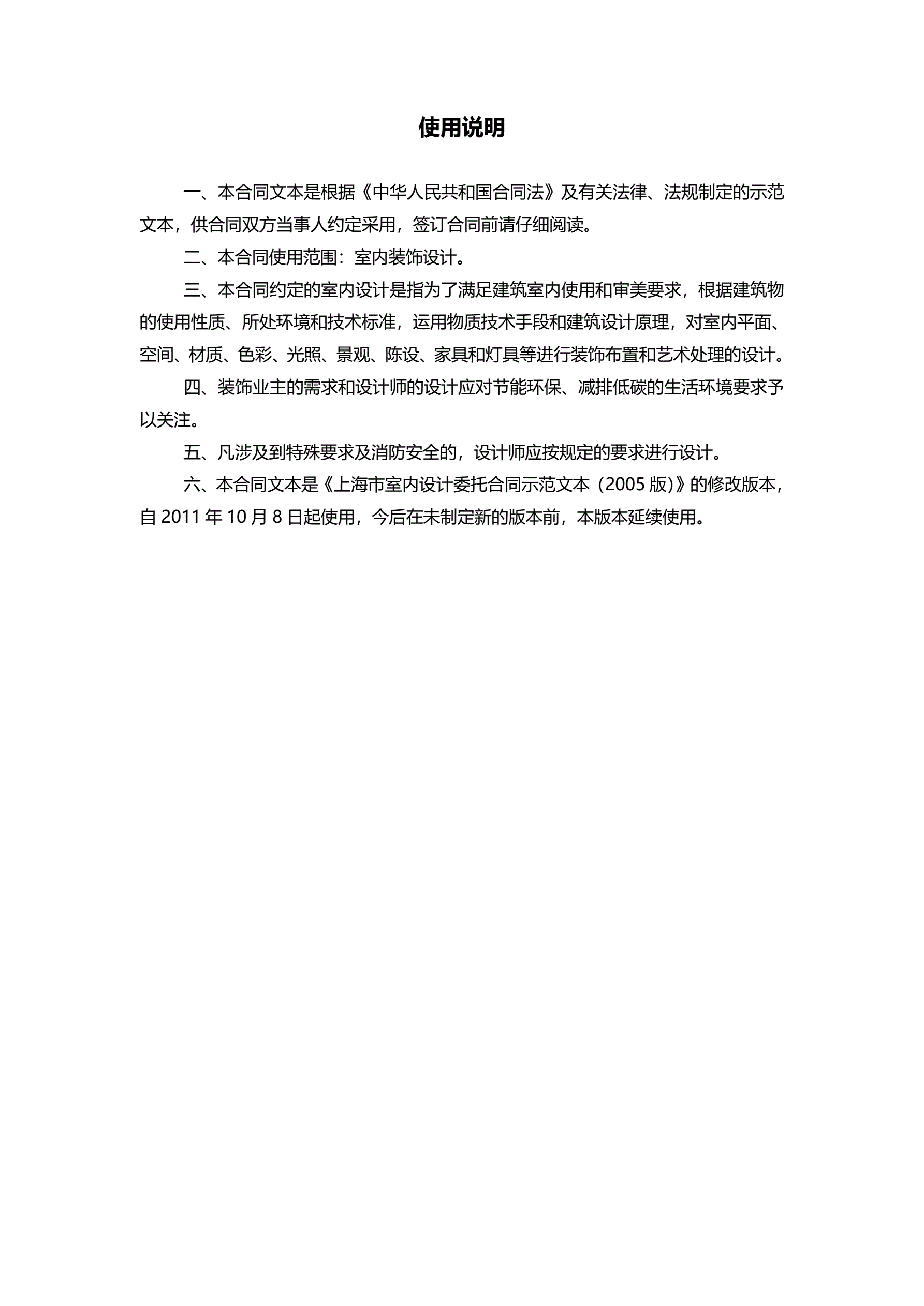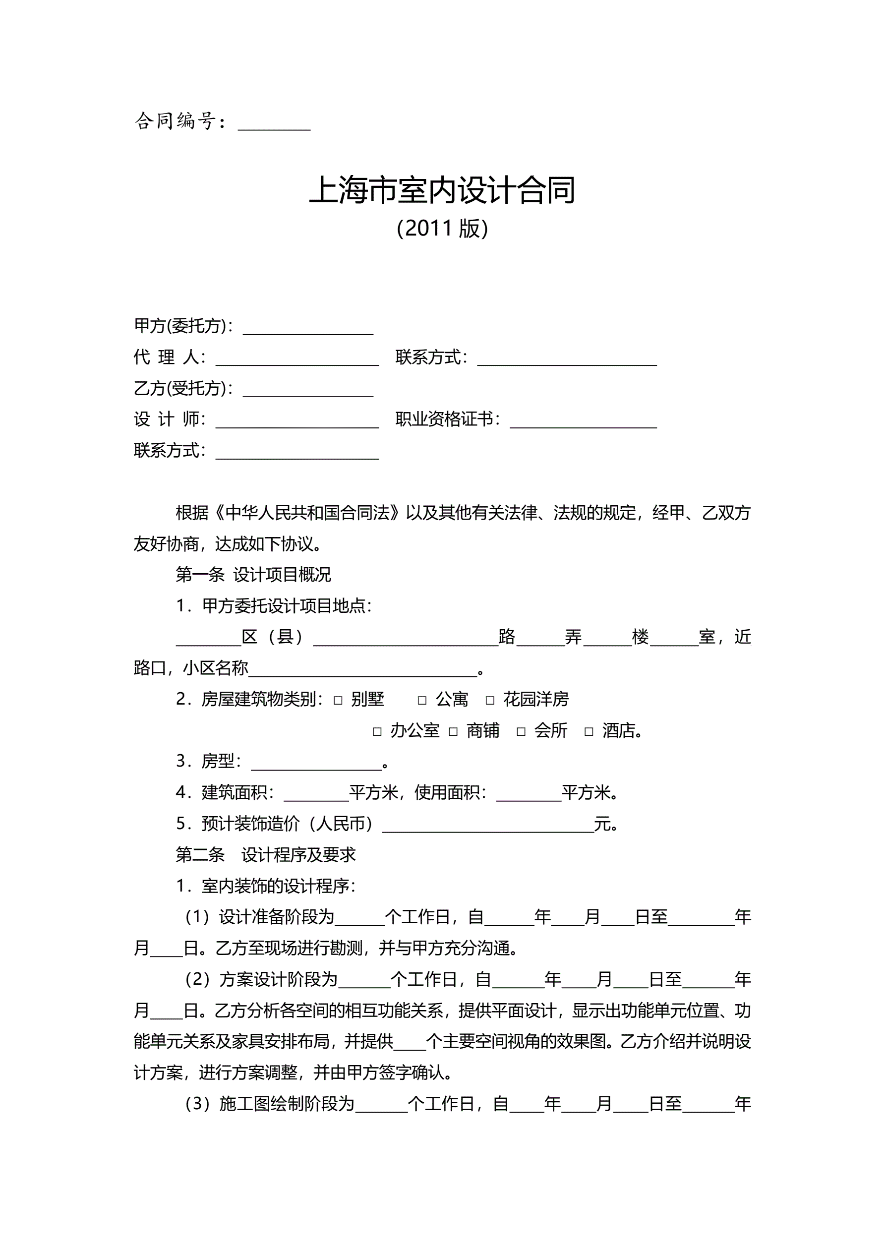 上海市室内设计合同2011版